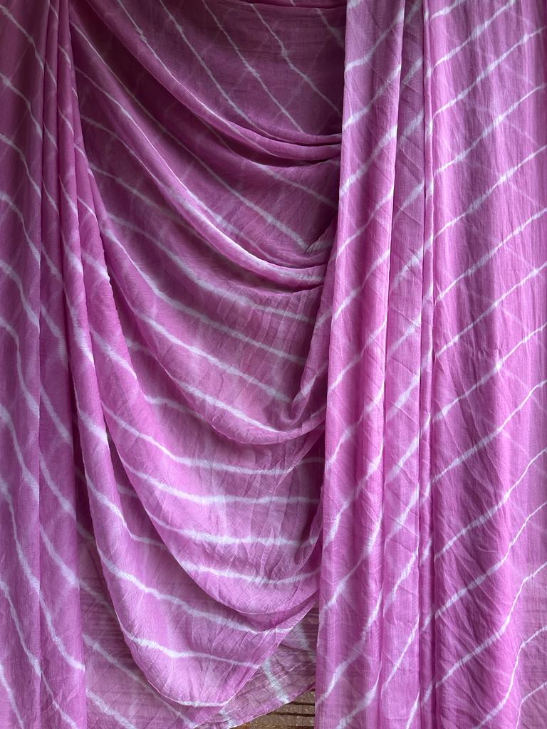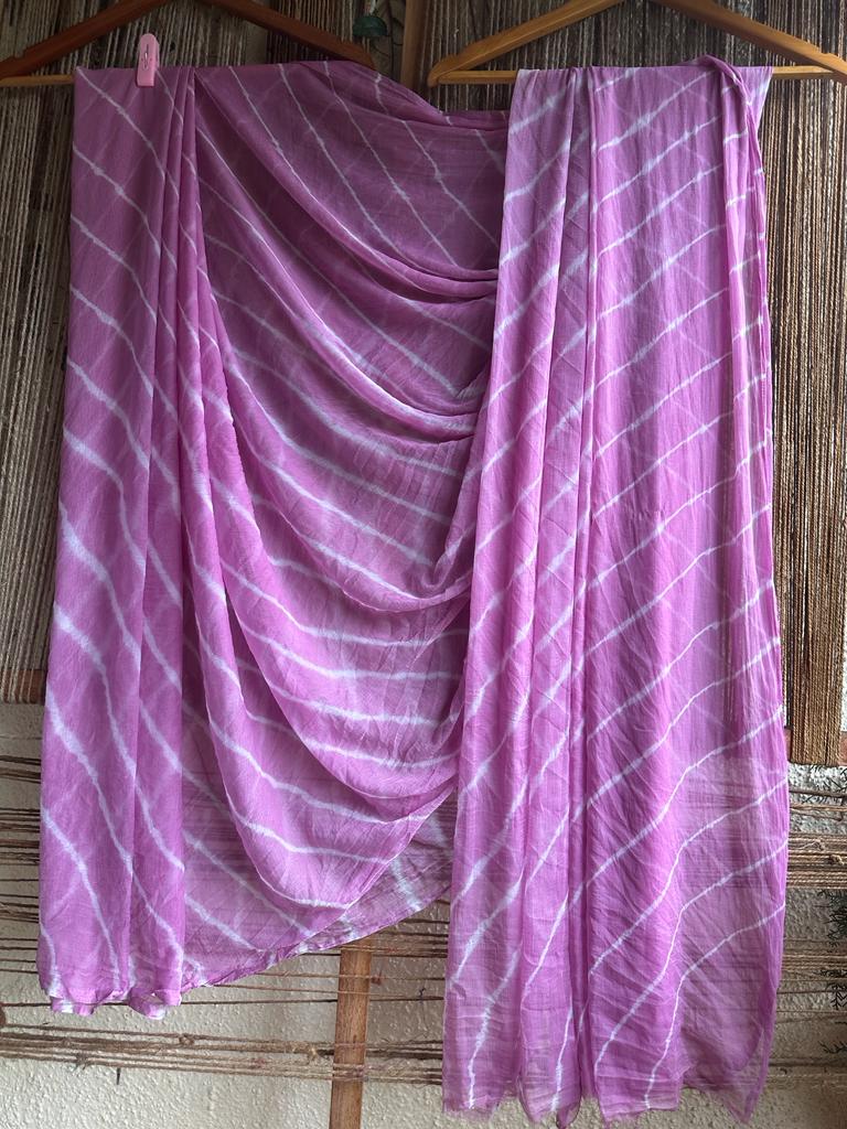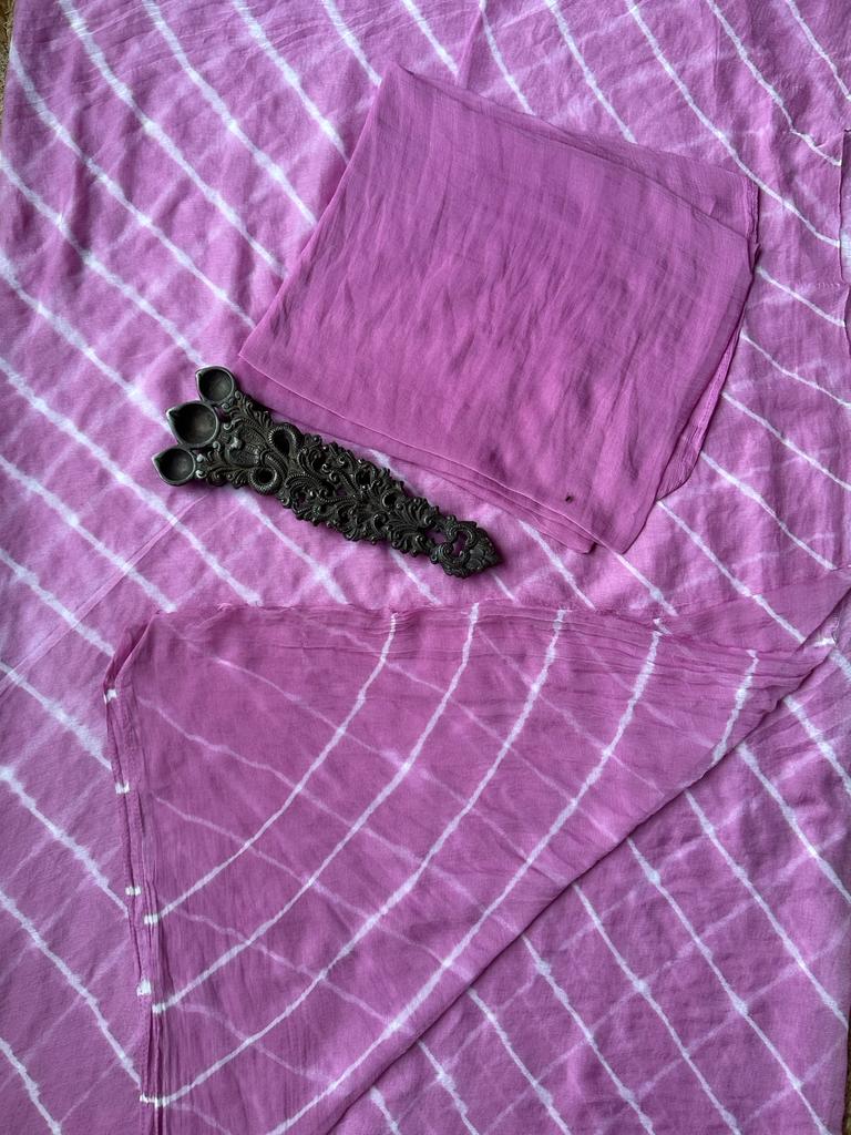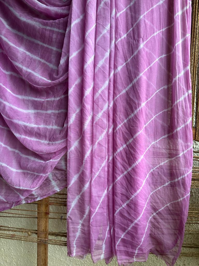 light purple lehariya handcrafted saree with have its own contrast blouse piece (80 cms)