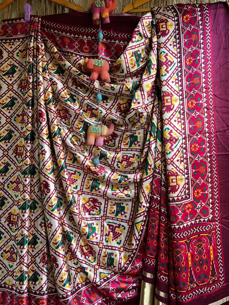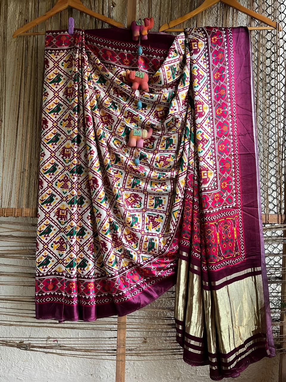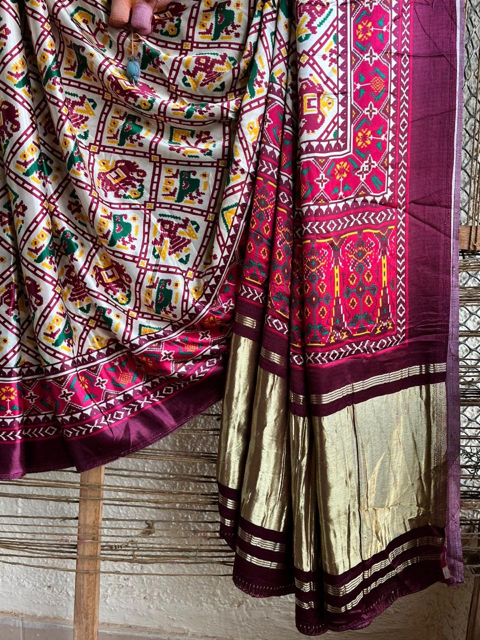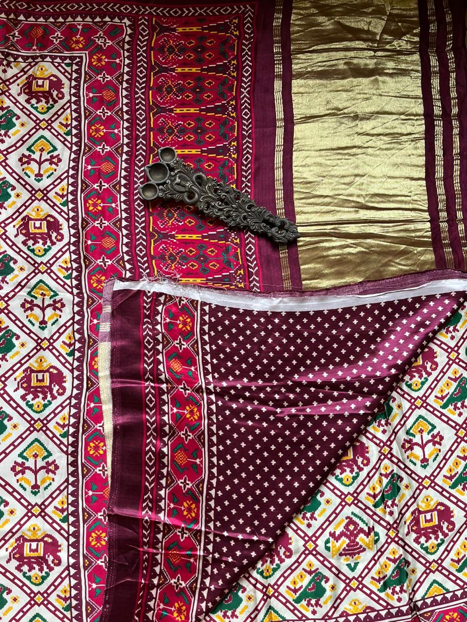 MAROON MODAL SILK PRINTED PATOLA SARI WITH ZARI BORDER WITH