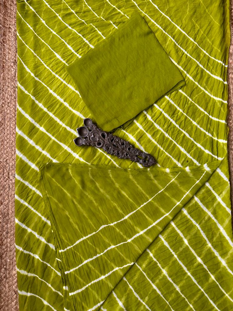 mehndi green lehariya handcrafted saree with have its own contrast blouse piece (80 cms)
