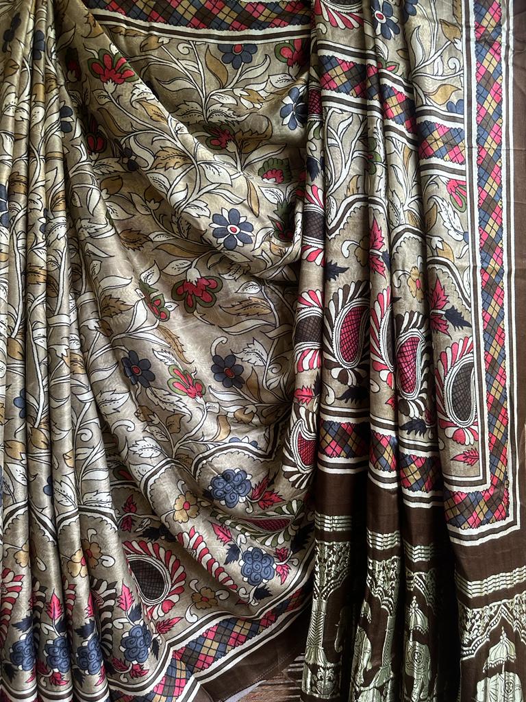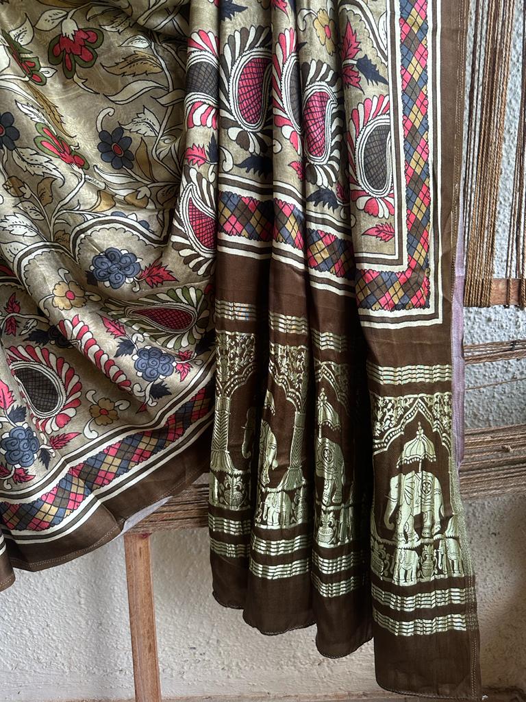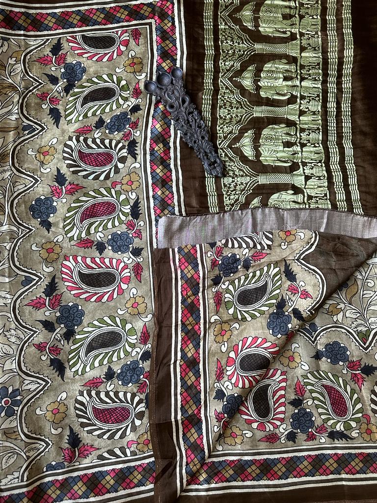 mehndi green modal silk printed patola sari with nakshi zari border with