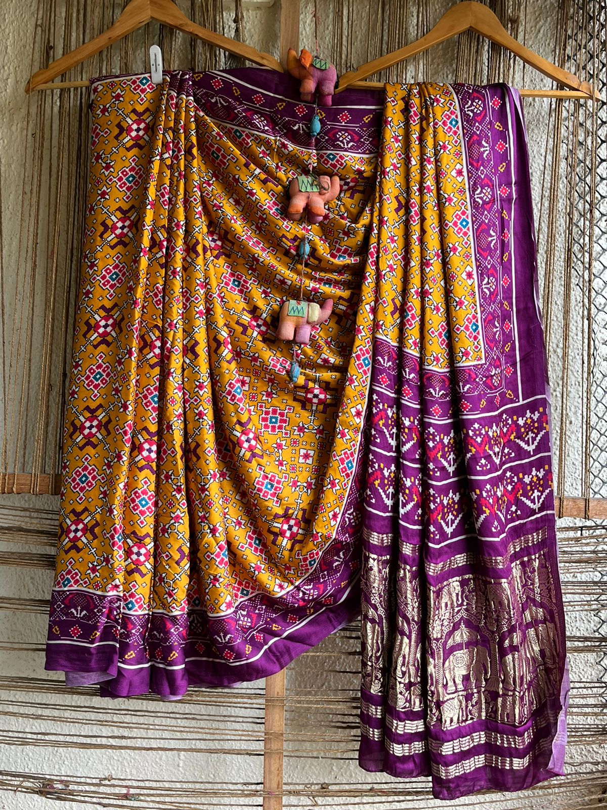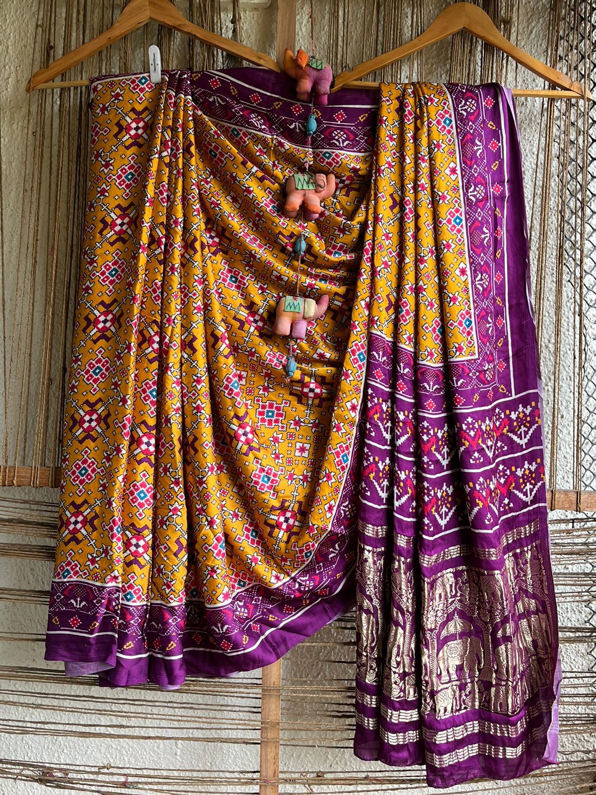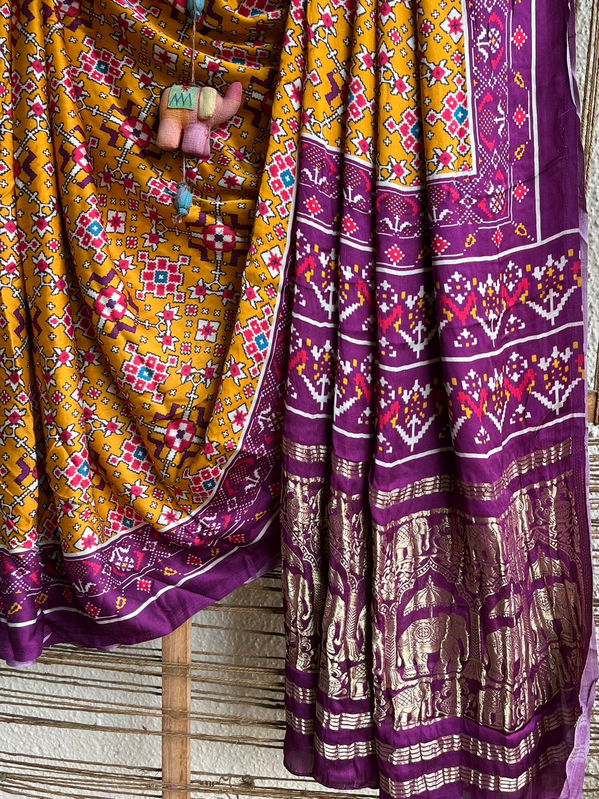 MUSTARD PURPLE MODAL SILK PRINTED PATOLA SARI WITH NAKSHI ZARI BORDER WITH