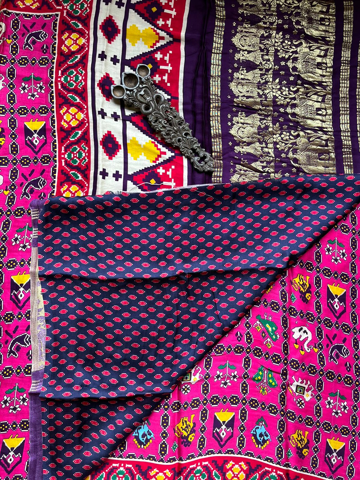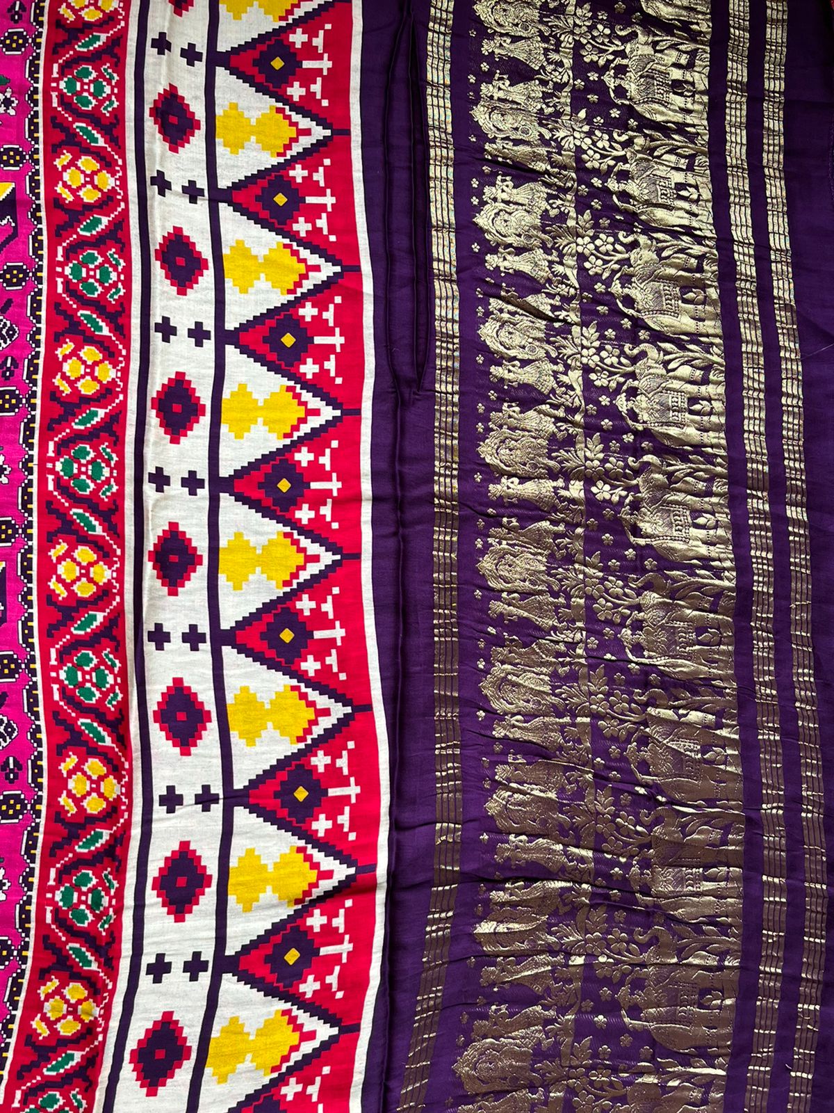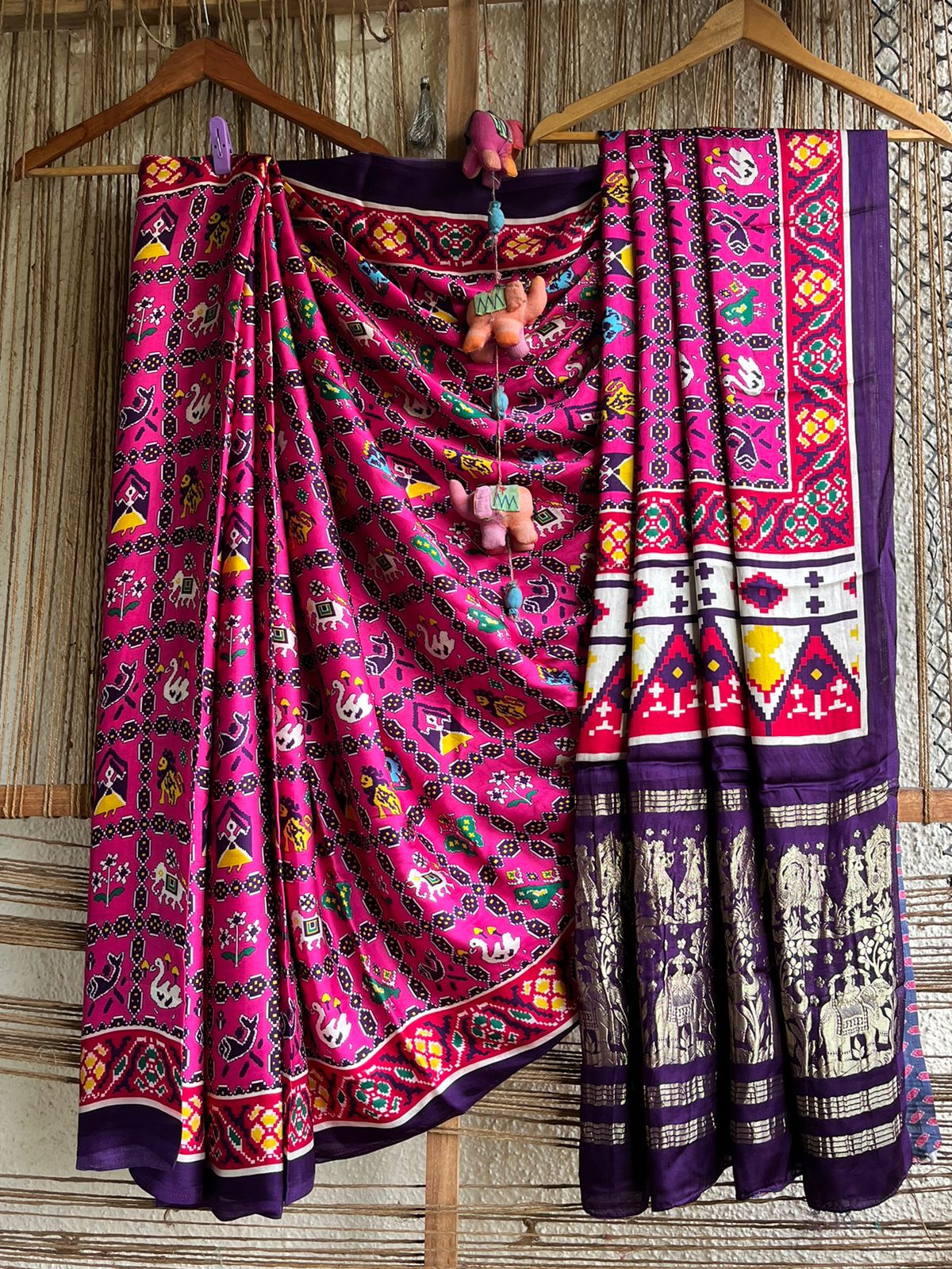 purple modal silk printed patola sari with zari border with blouse piece size: 6.3mtrs