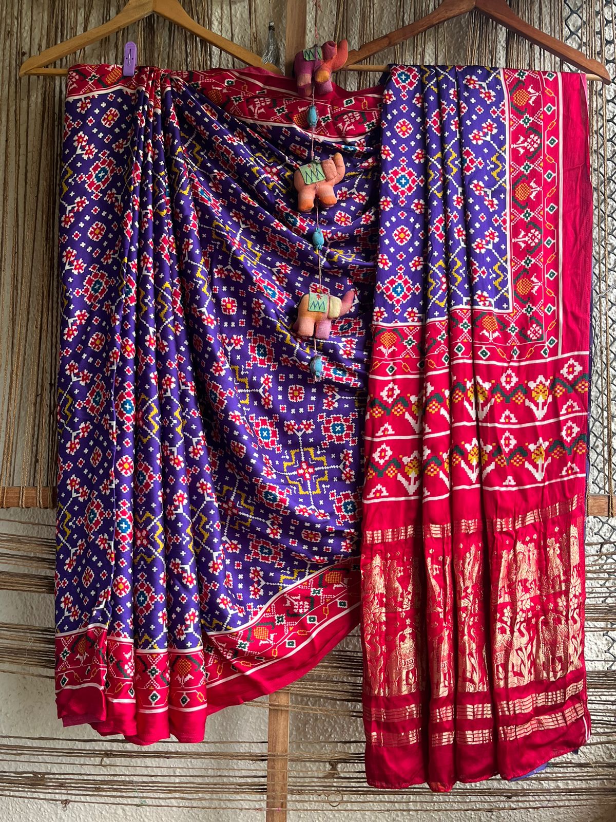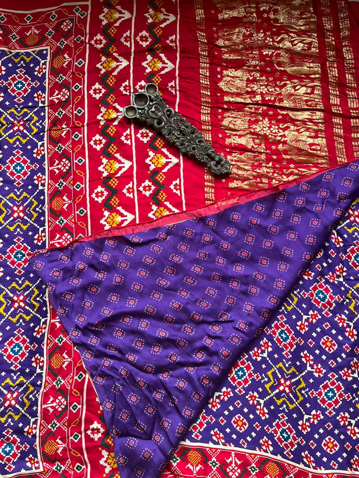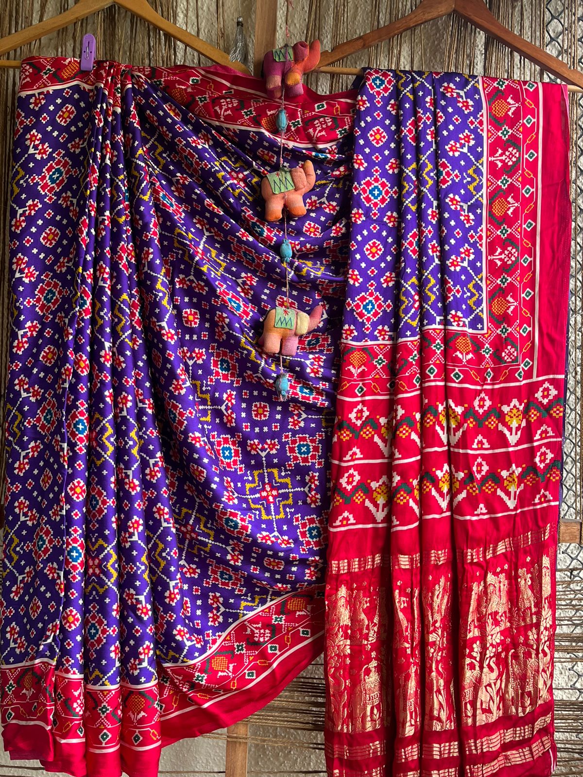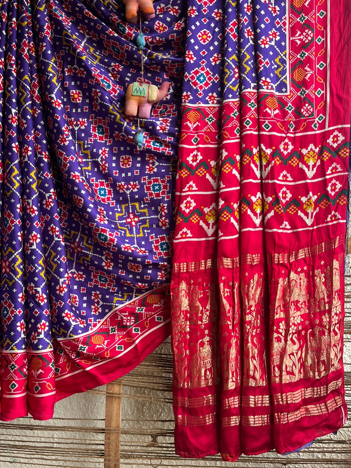 PURPLE MODAL SILK PATOLA PRINT SARI WITH ZARI BORDER PMS- 1015
