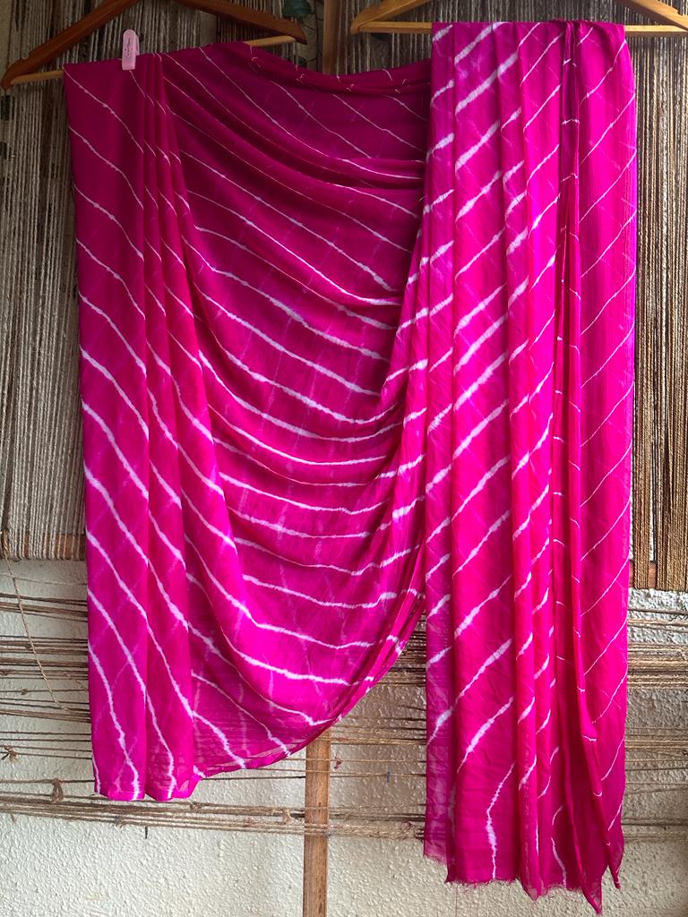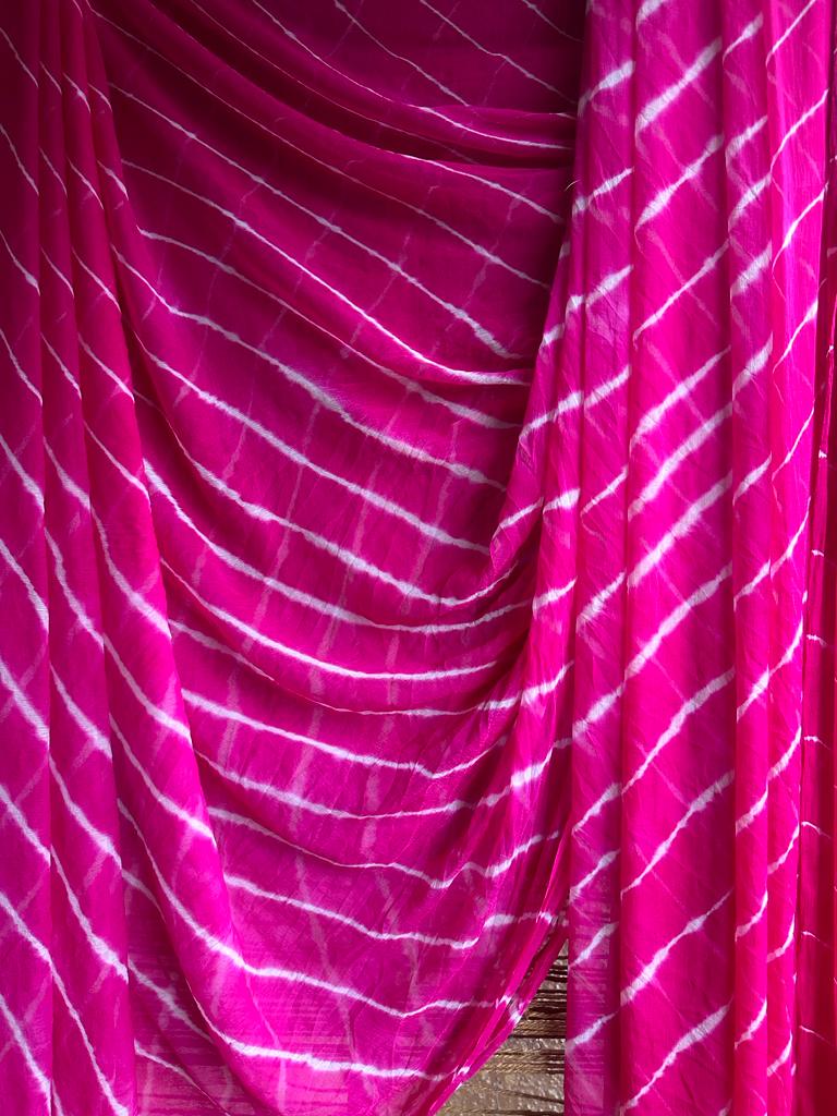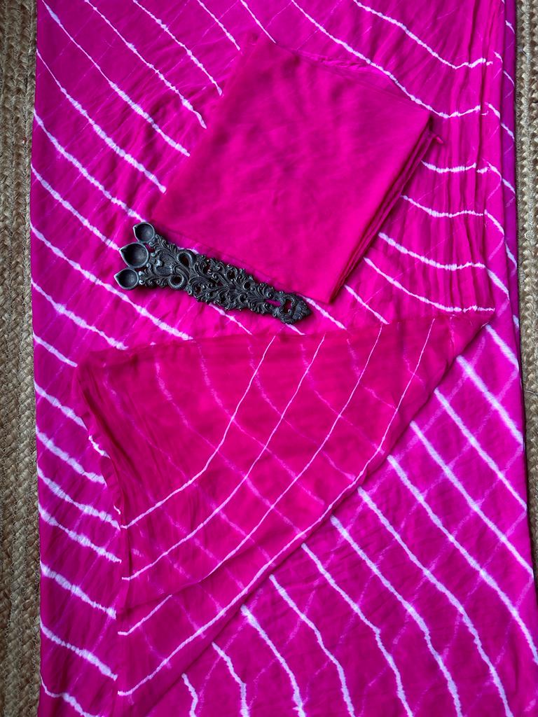 RANI PINK LEHARIYA HANDCRAFTED SAREE WITH HAVE ITS OWN CONTRAST BLOUSE PIECE (80 CMS)