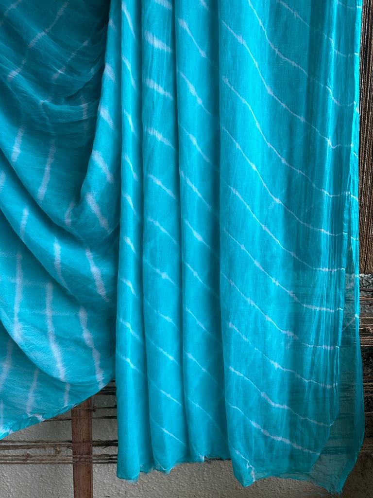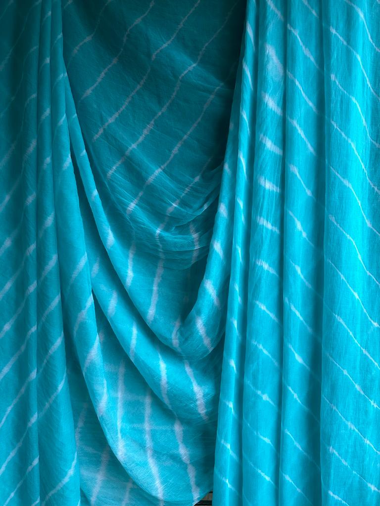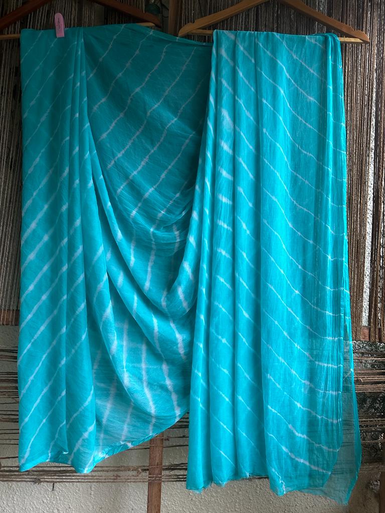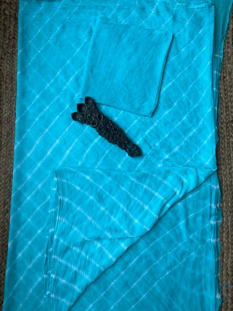 sea blue lehariya handcrafted saree with have its own contrast blouse piece (80 cms)