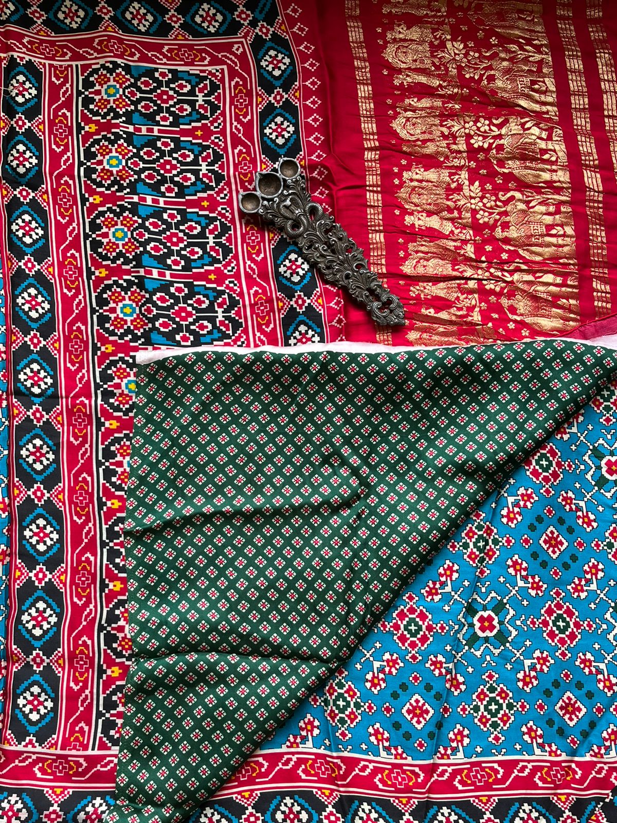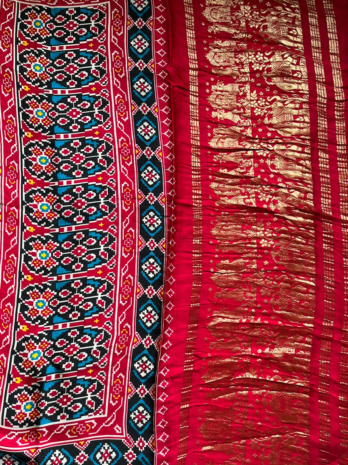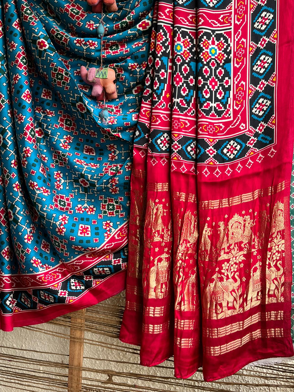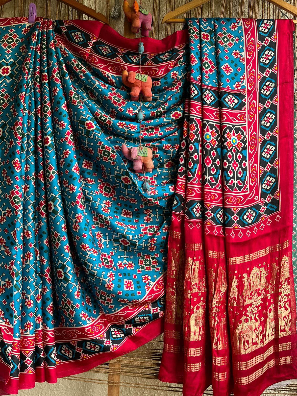 SEA BLUE PINK MODAL SILK PATOLA PRINT SARI WITH ZARI BORDER PMS- 1017