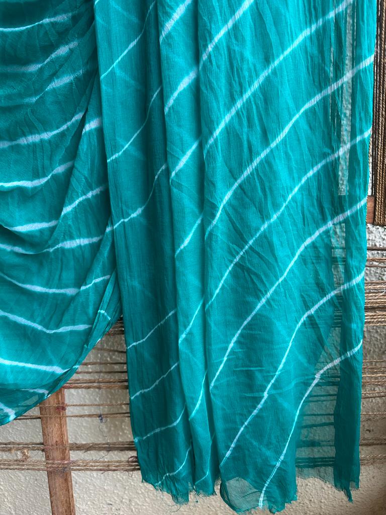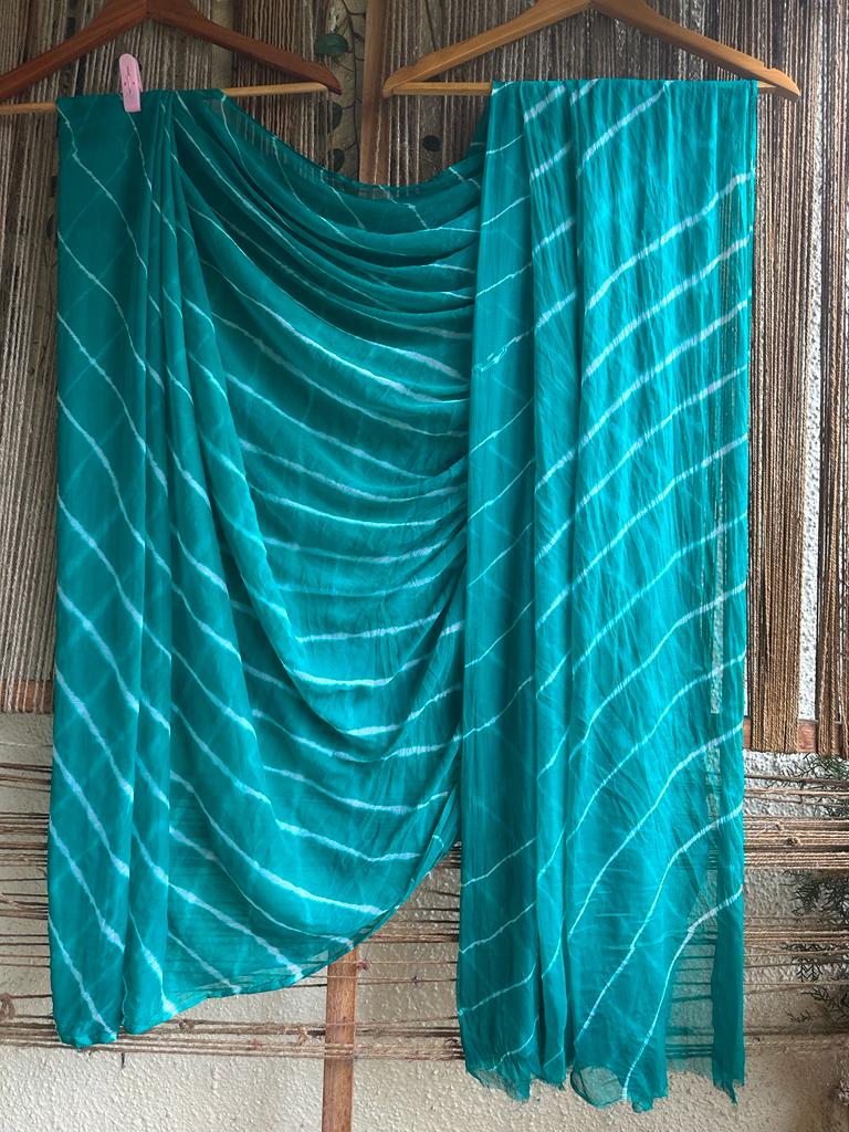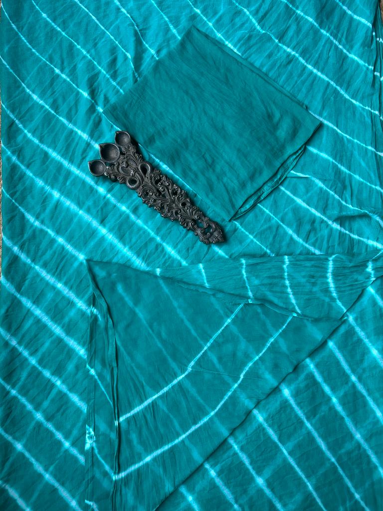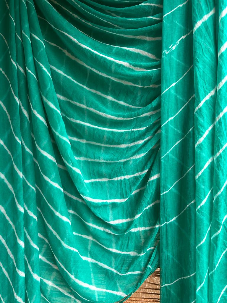 SEA GREEN LEHARIYA HANDCRAFTED SAREE WITH HAVE ITS OWN CONTRAST BLOUSE PIECE (80 CMS)