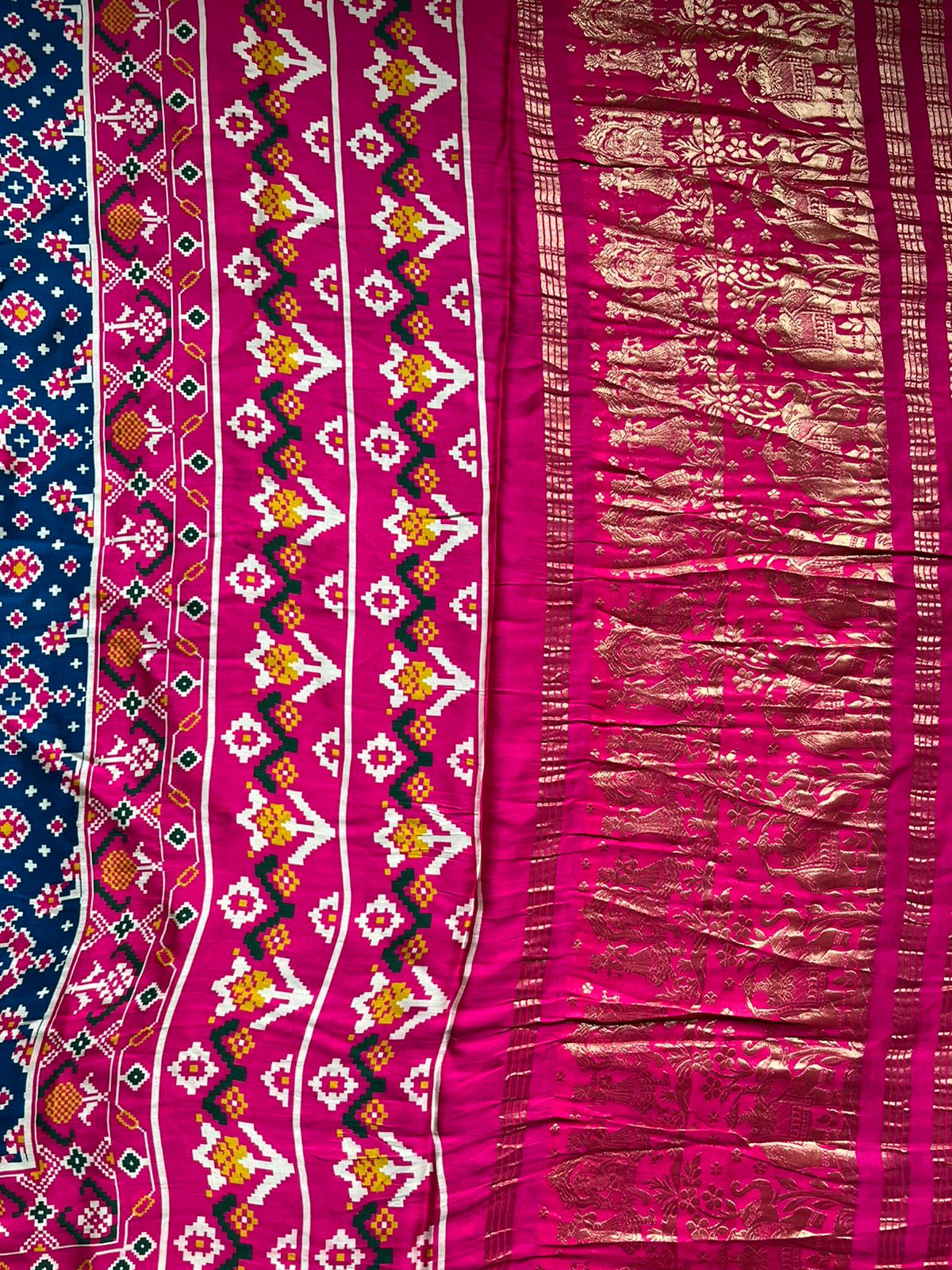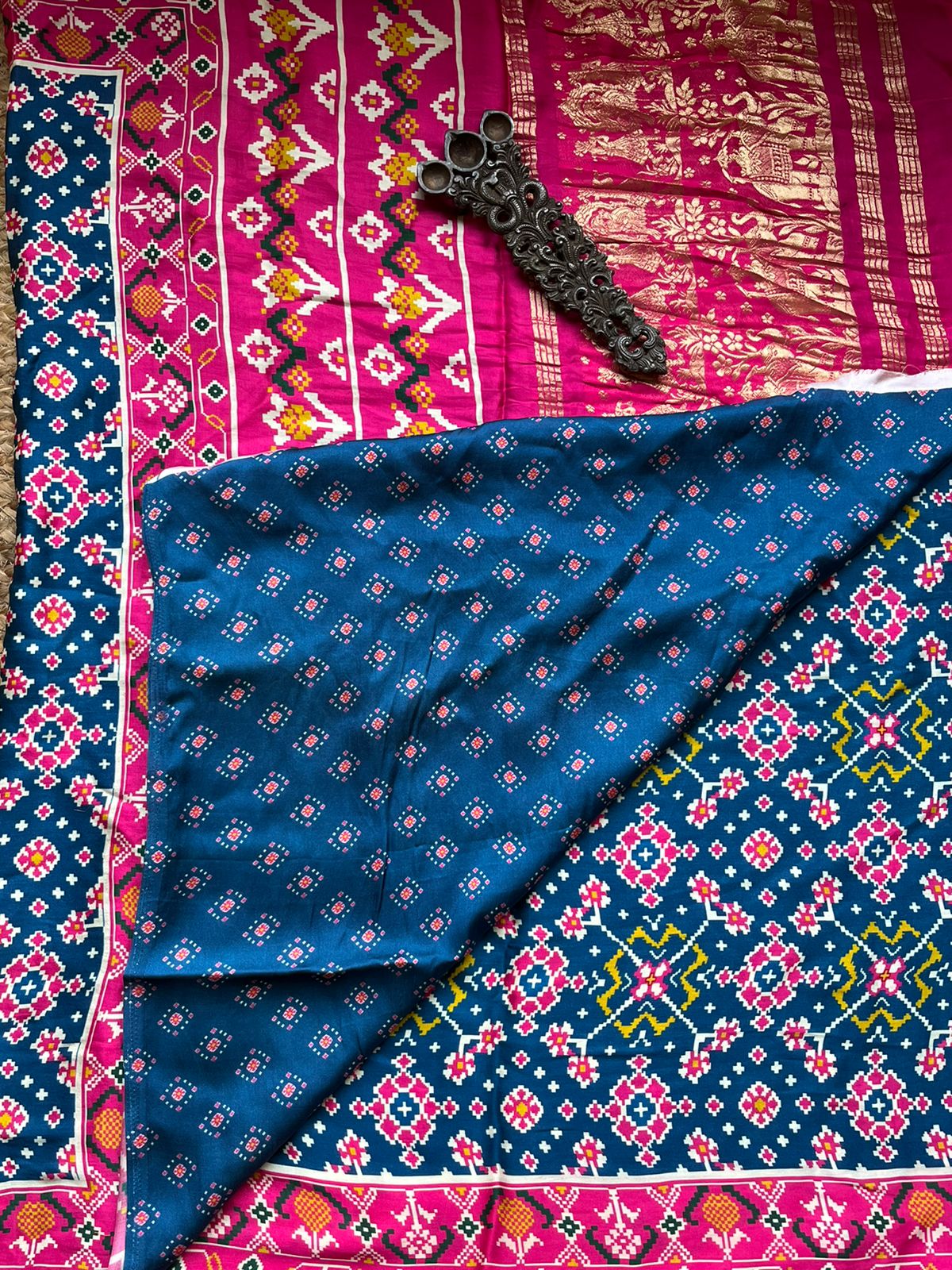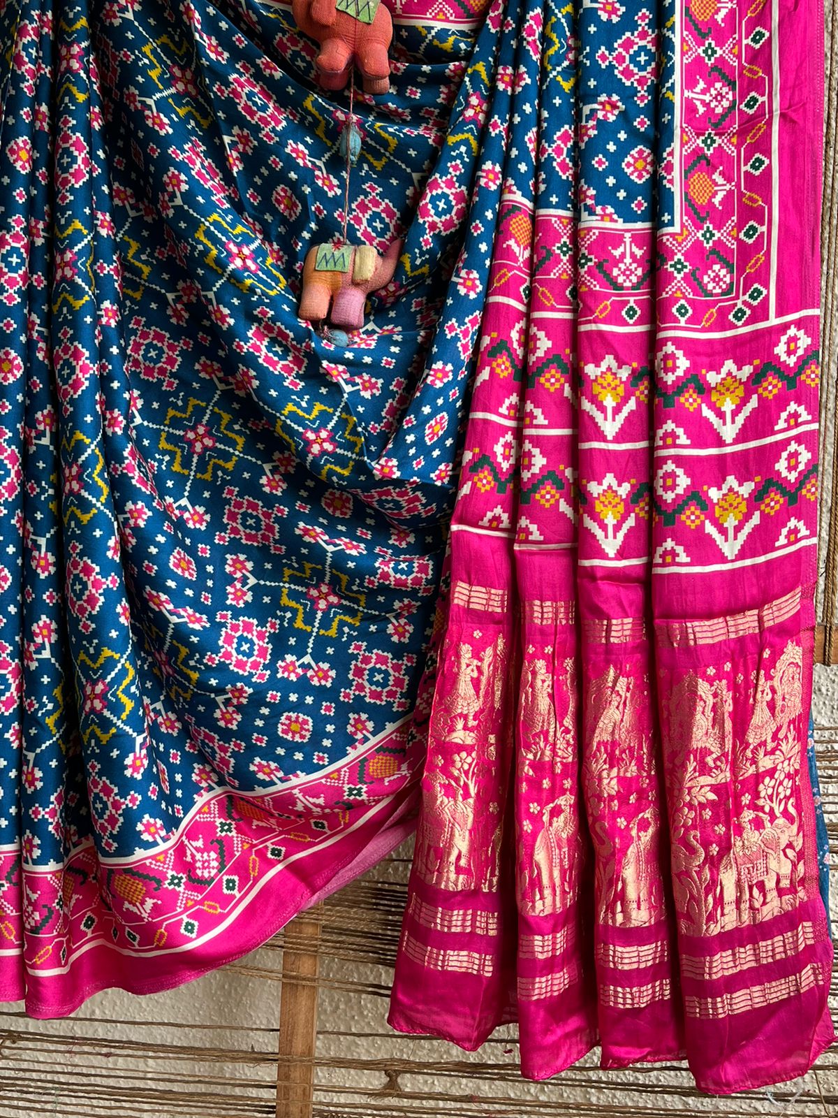 SKY BLUE PINK MODAL SILK PATOLA PRINT SARI WITH ZARI BORDER PMS- 1083