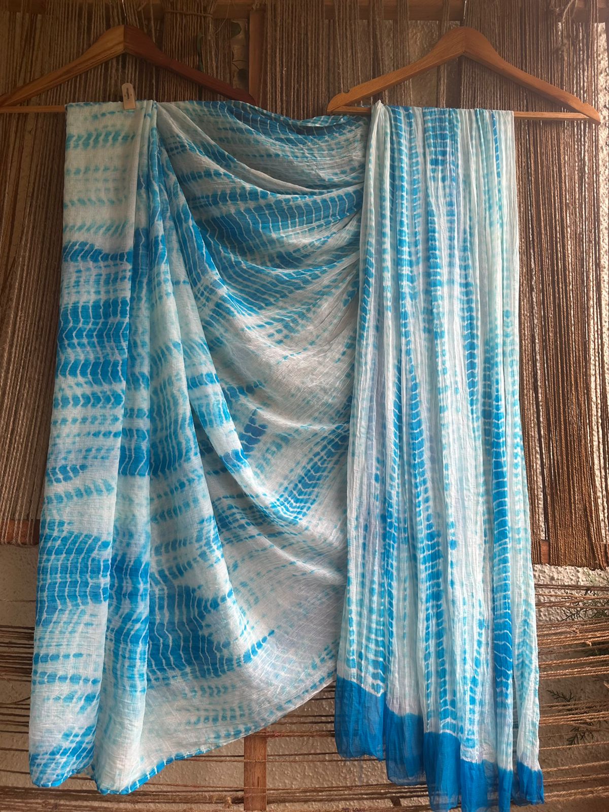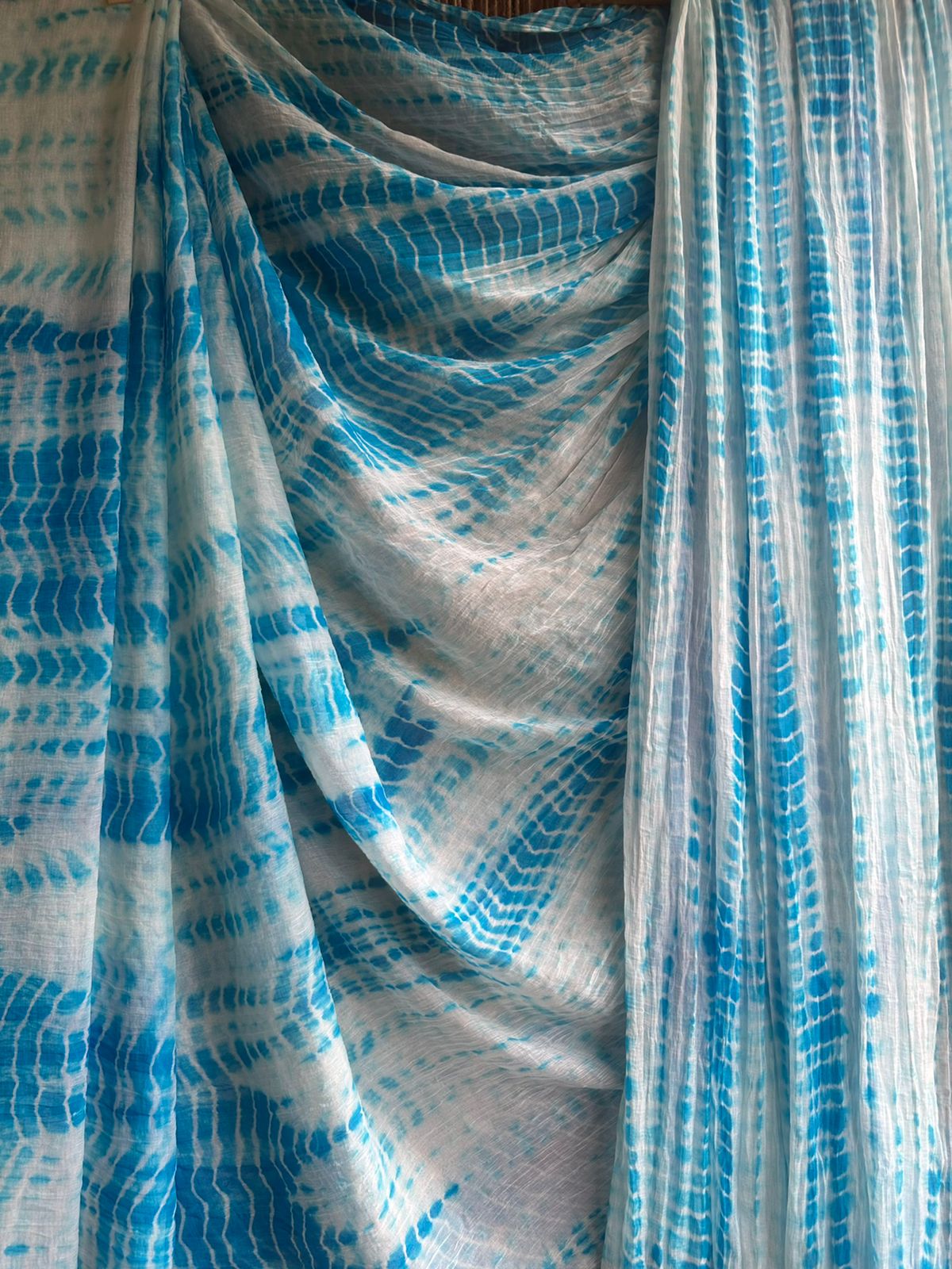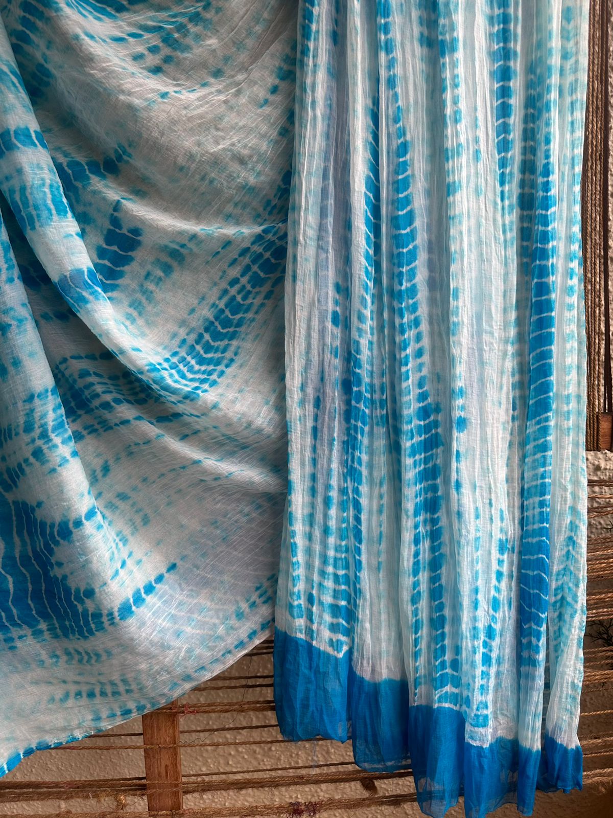 WHITE BLUE SHIBORI HANDCRAFTED SAREE WITH HAVE ITS OWN CONTRAST BLOUSE PIECE (80 CMS)