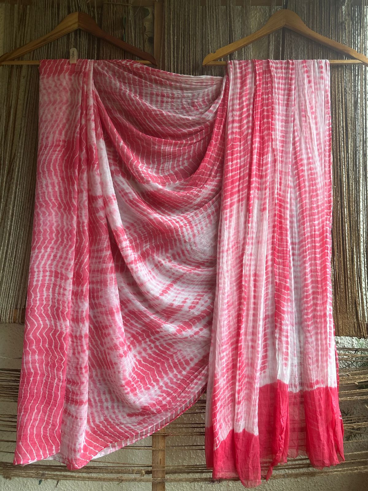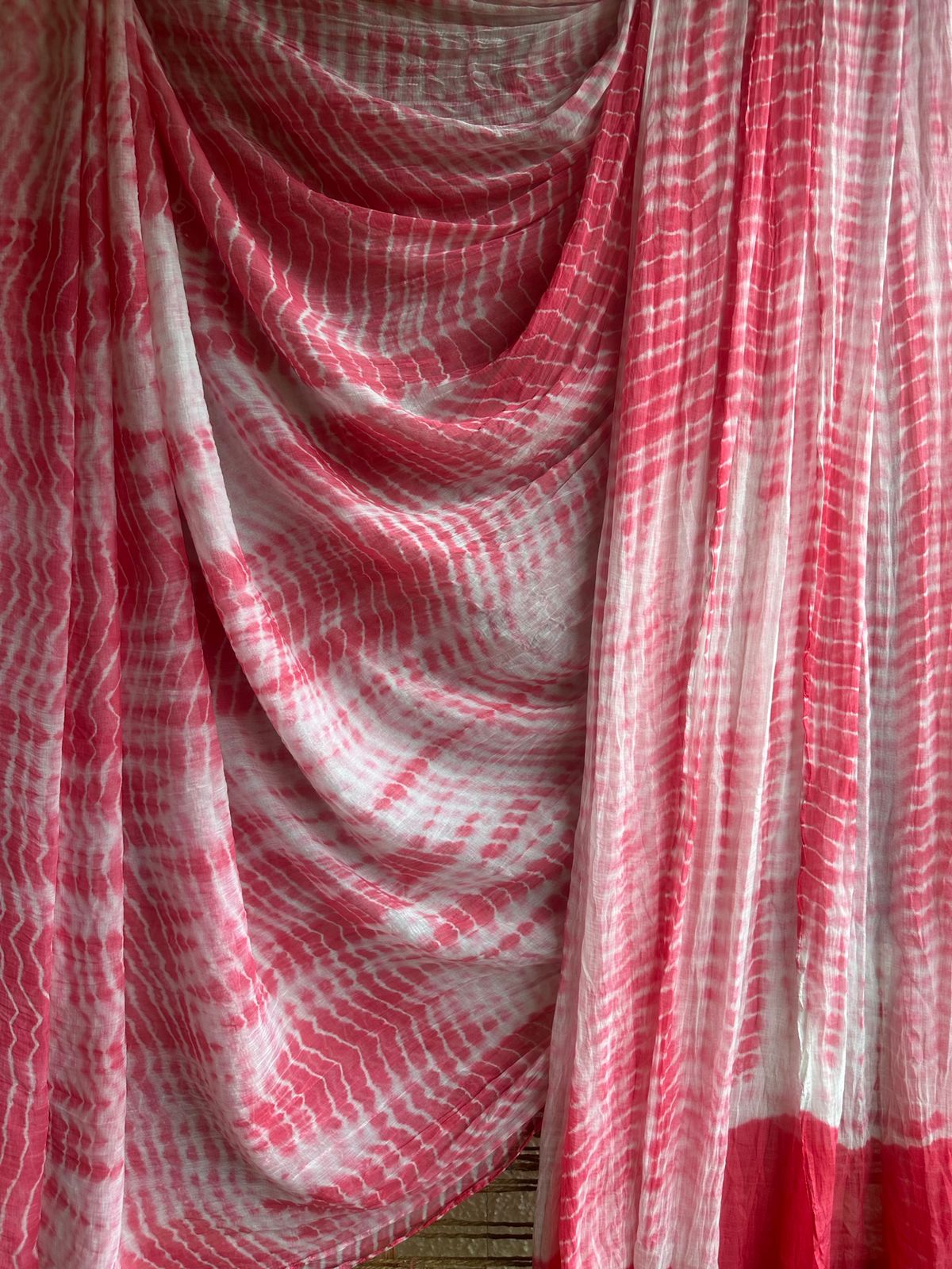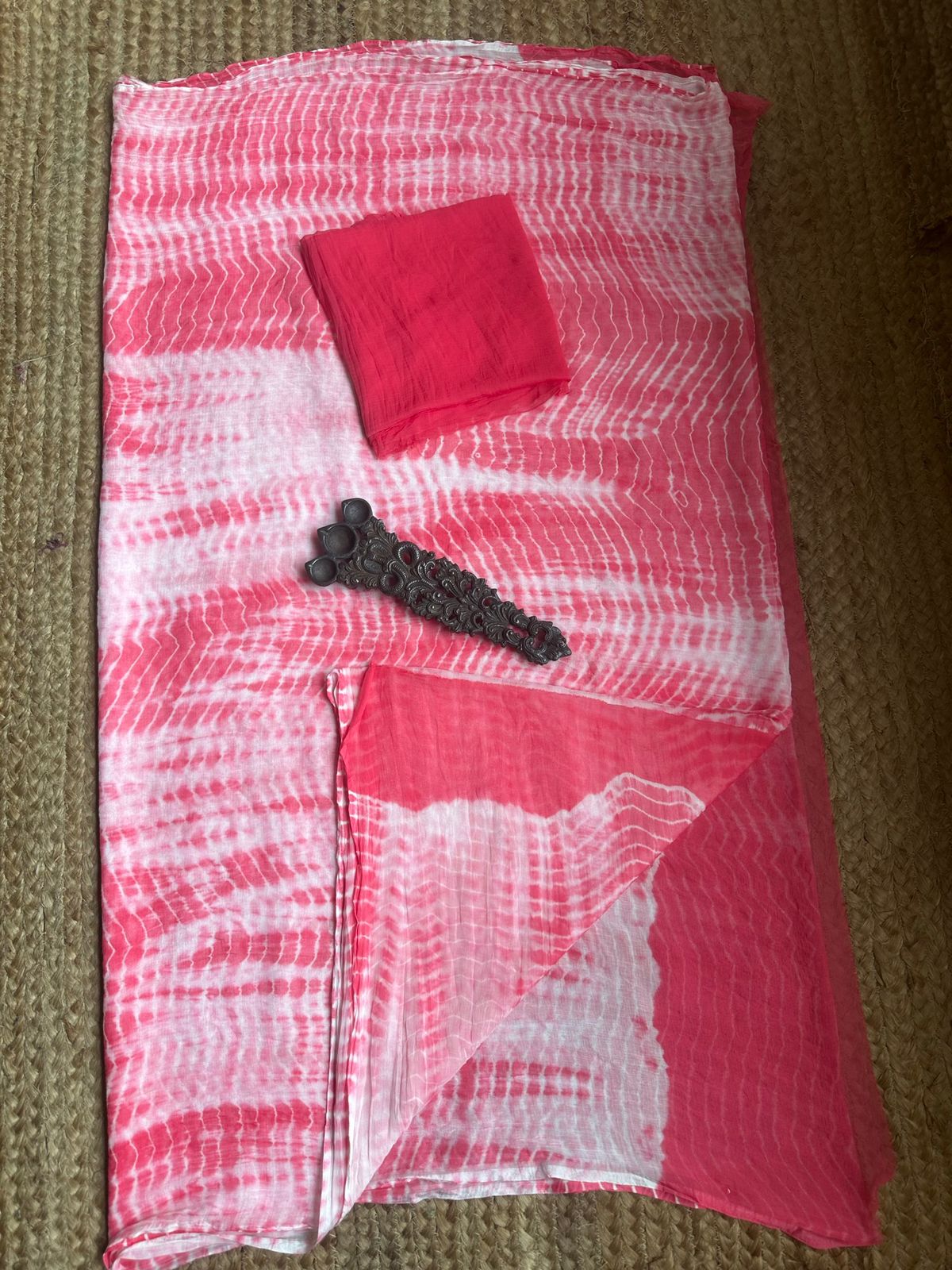 white peach shibori handcrafted saree with have its own contrast blouse piece (80 cms)