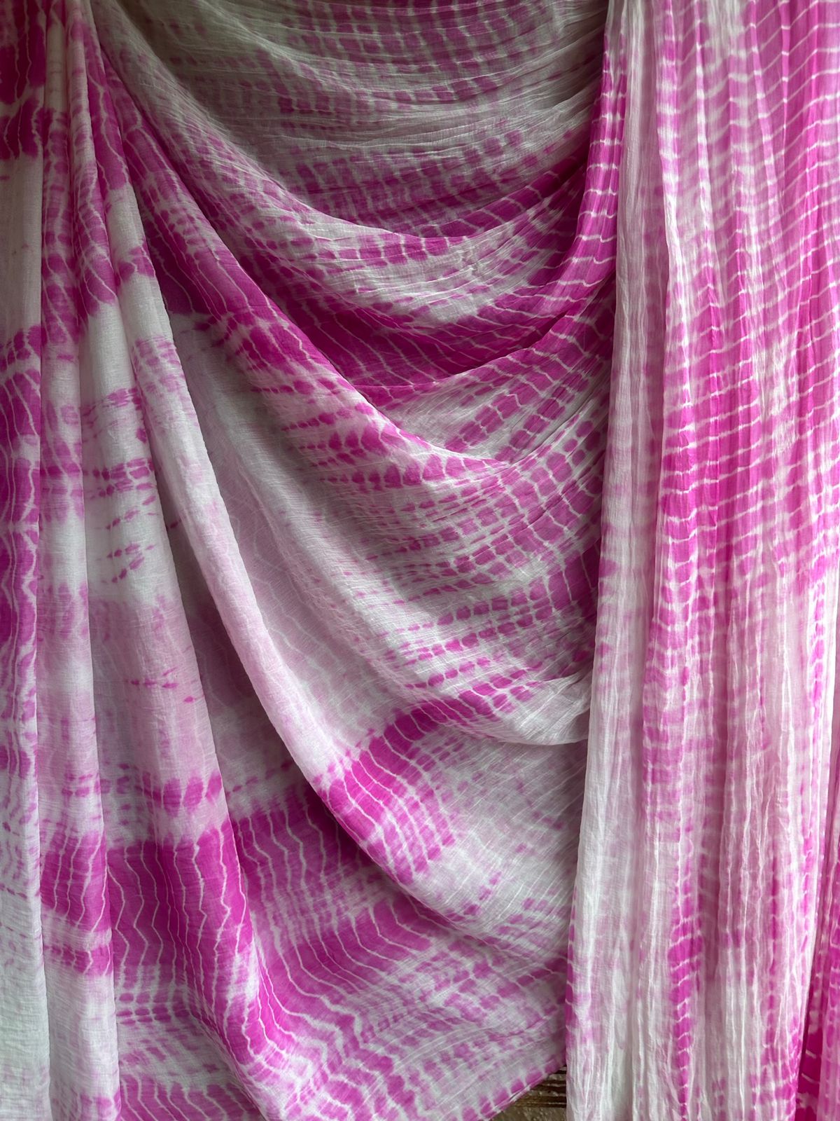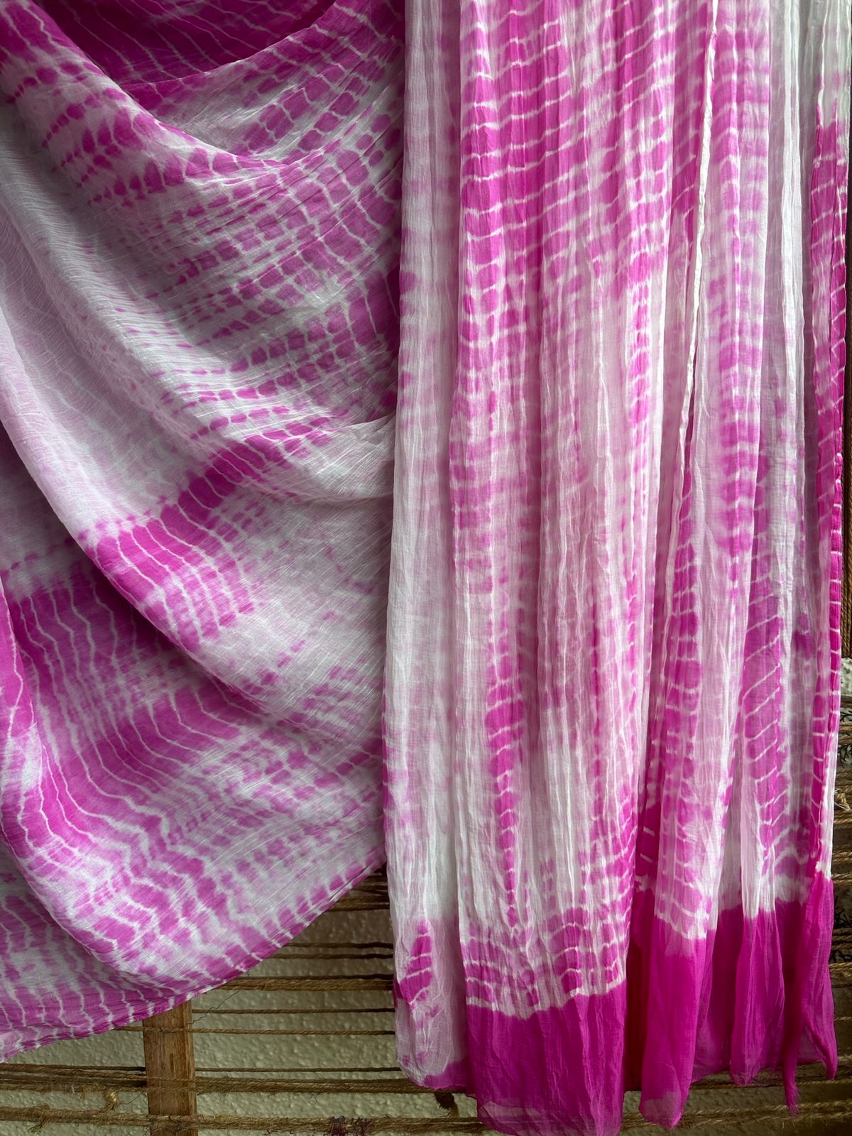 white pink shibori handcrafted saree with have its own contrast blouse piece (80 cms)