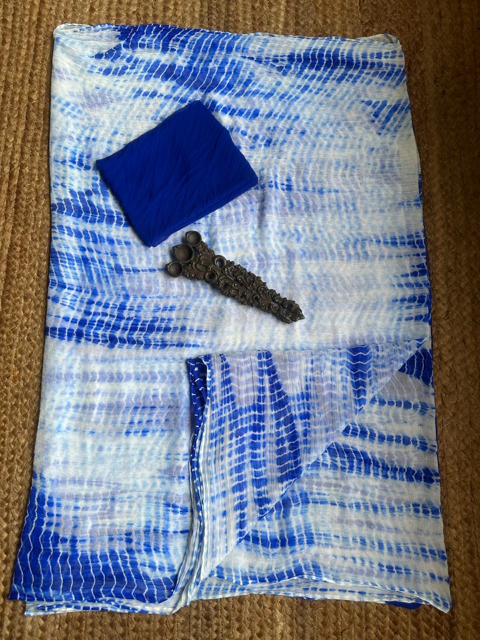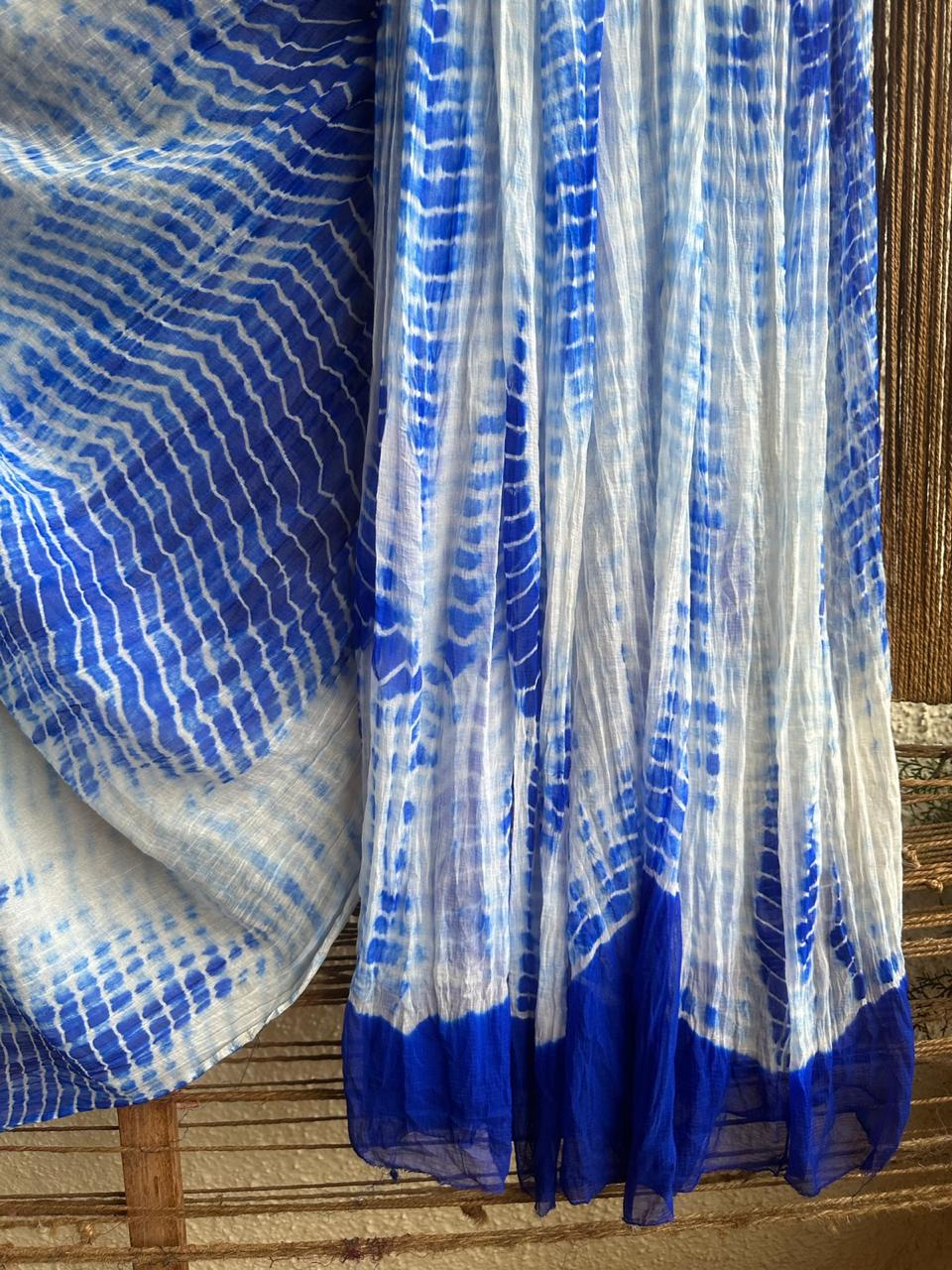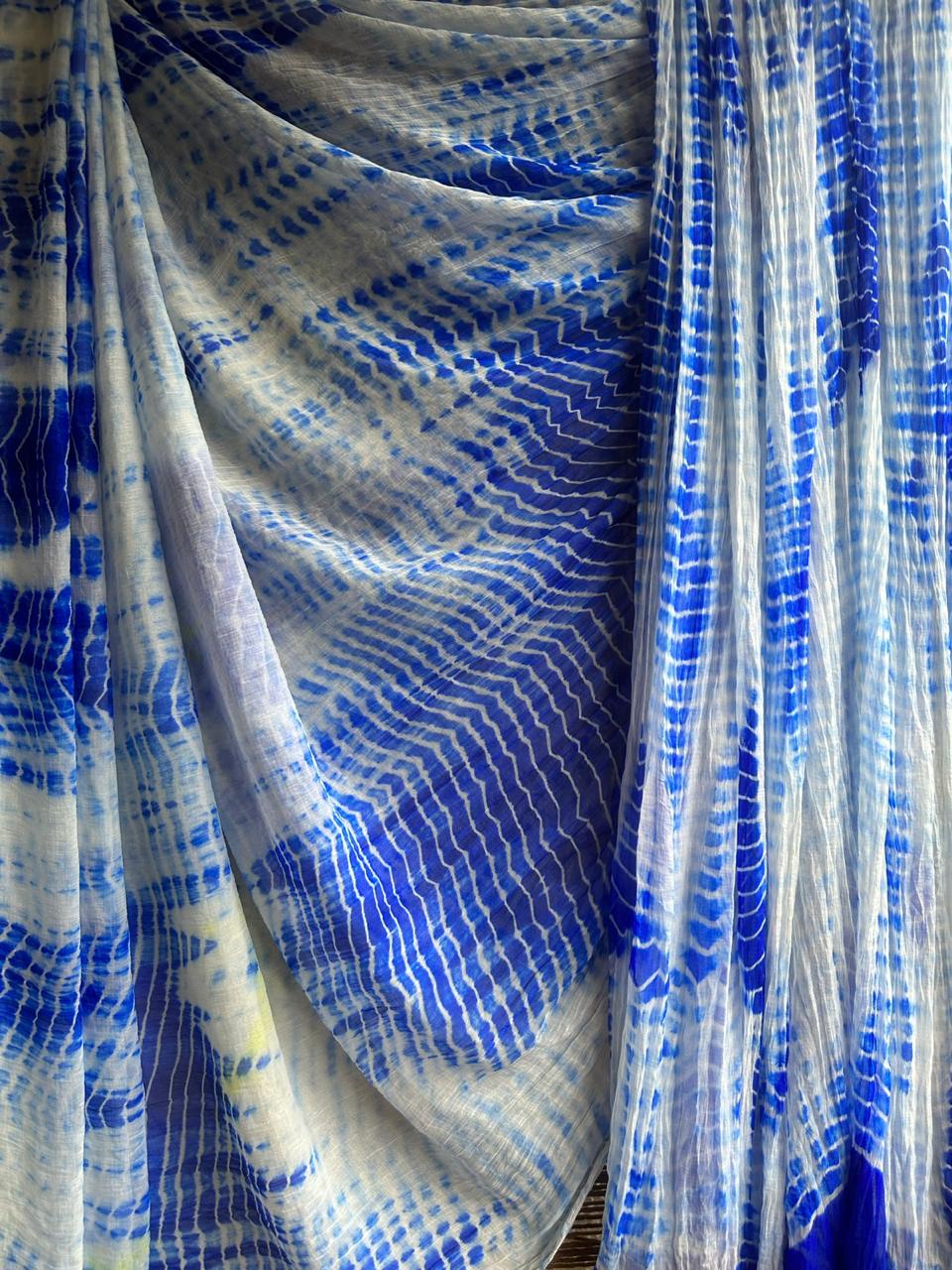 WHITE ROYAL BLUE SHIBORI HANDCRAFTED SAREE WITH HAVE ITS OWN CONTRAST BLOUSE PIECE (80 CMS)