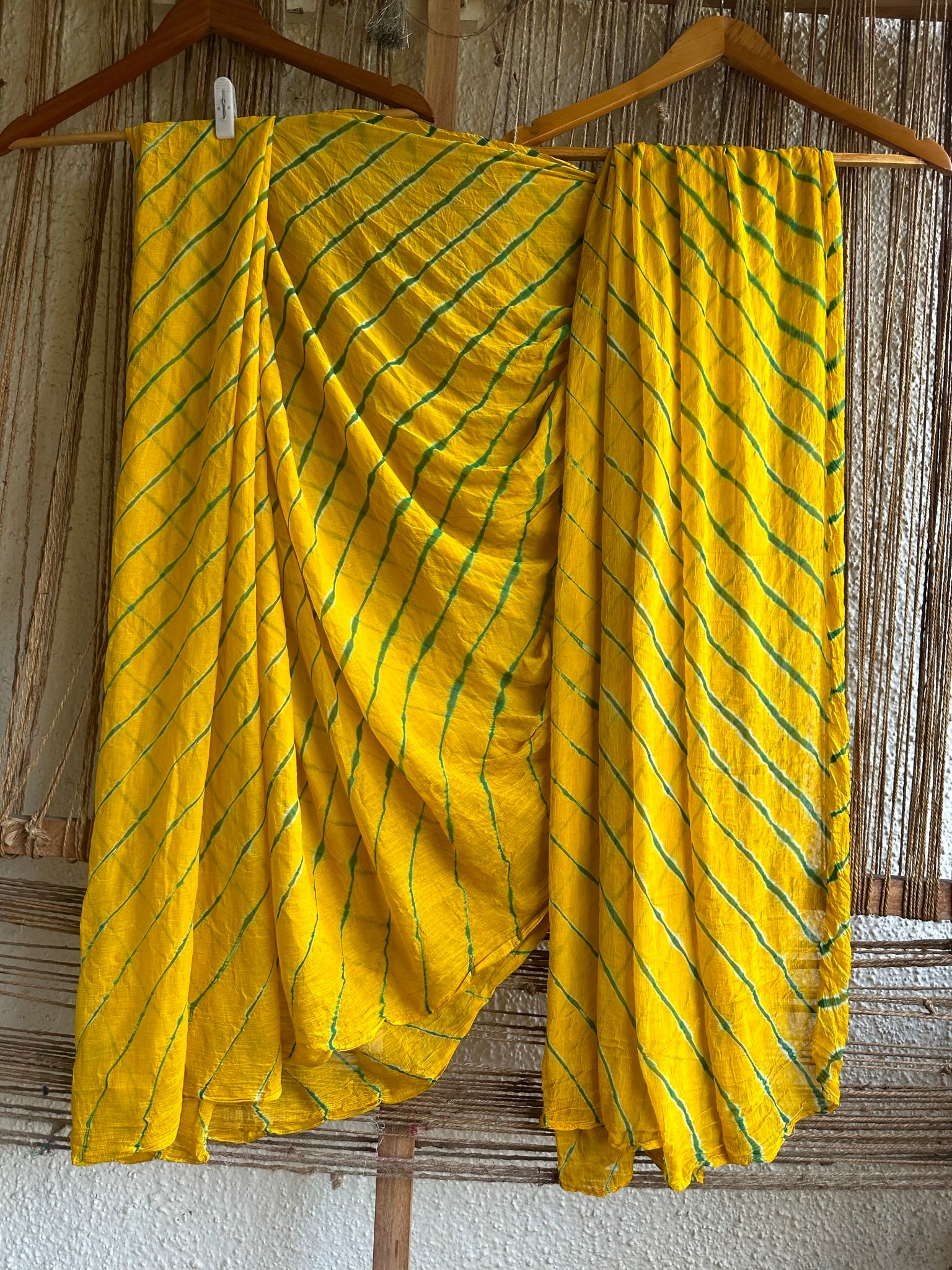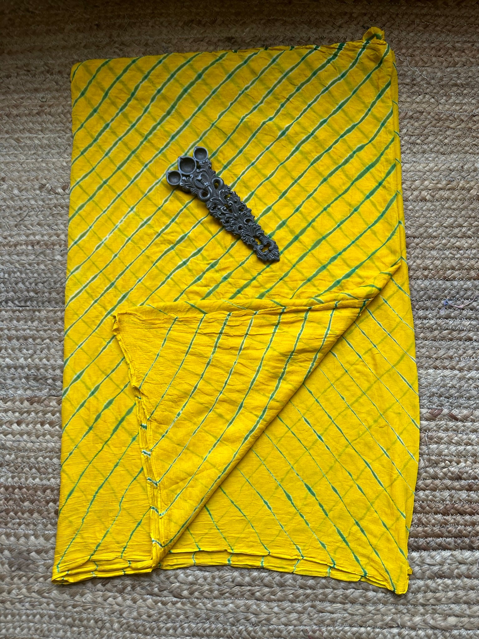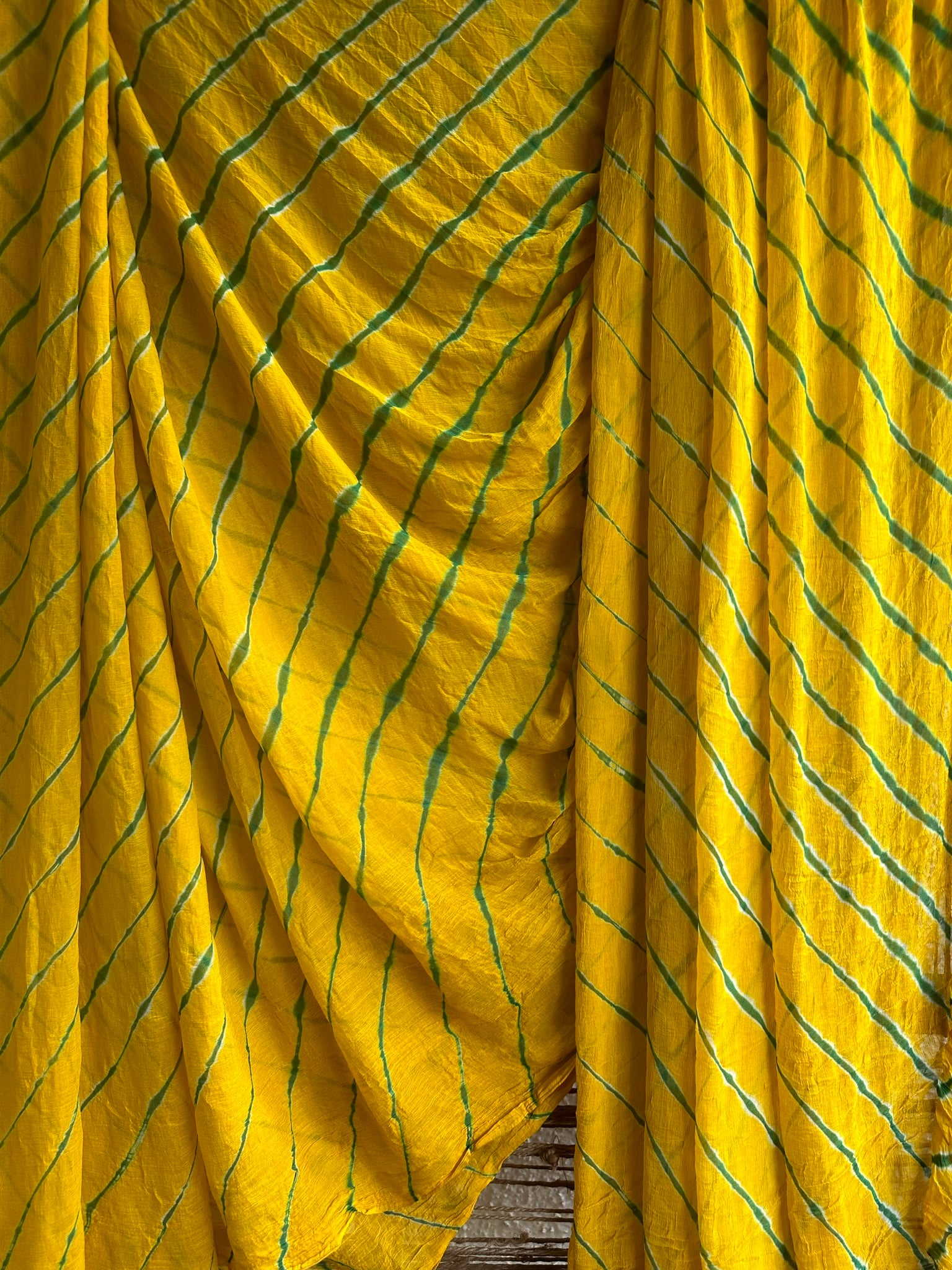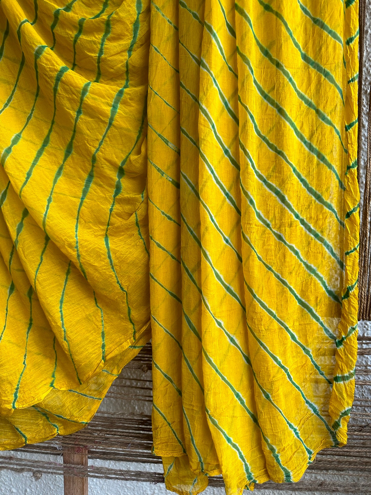 YELLOW MULTI LEHARIYA HANDCRAFTED SAREE WITH HAVE ITS OWN CONTRAST BLOUSE PIECE (80 CMS)