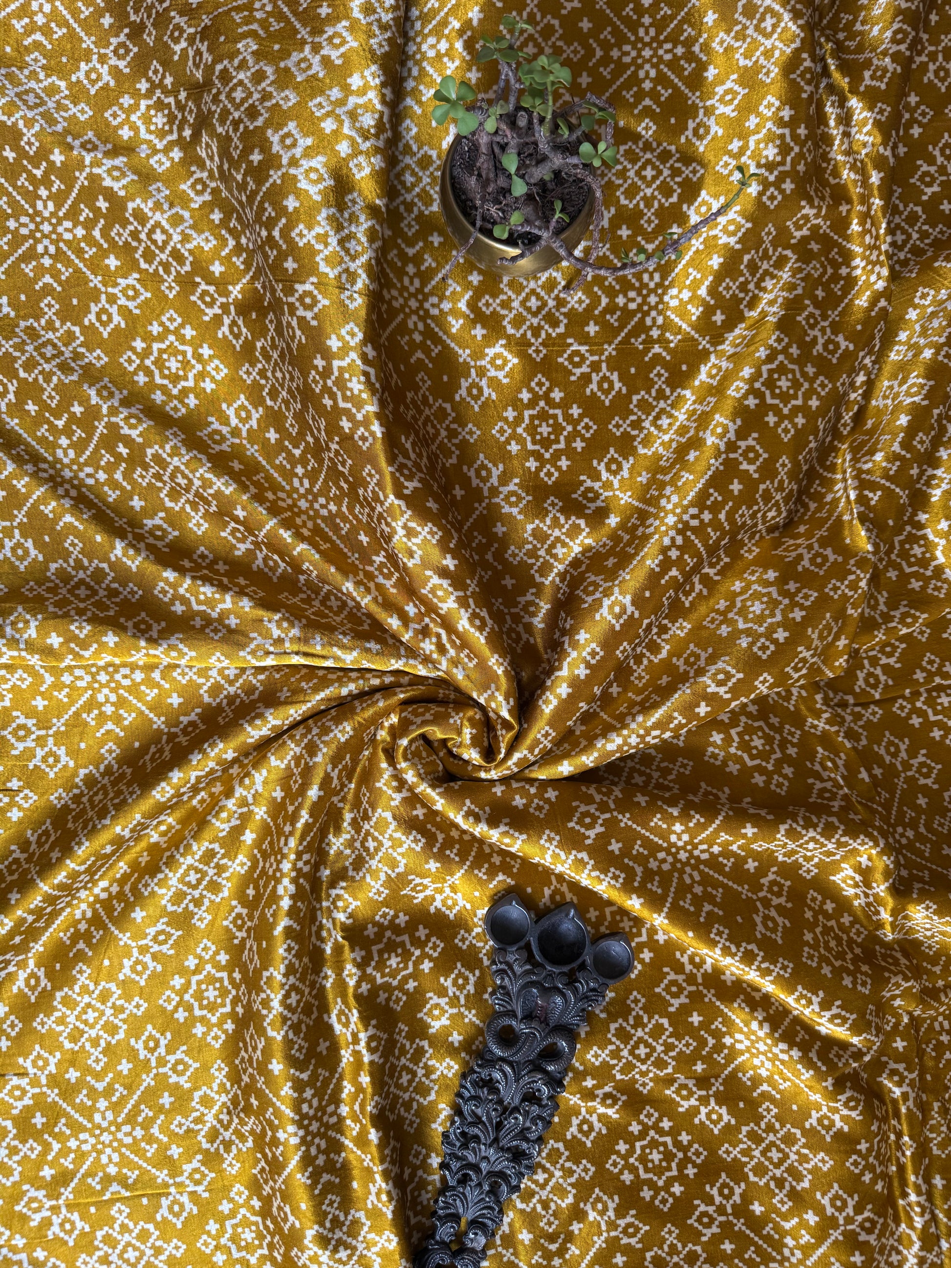 MUSTARD PATOLA PRINT  MASHRU SILK FABRIC