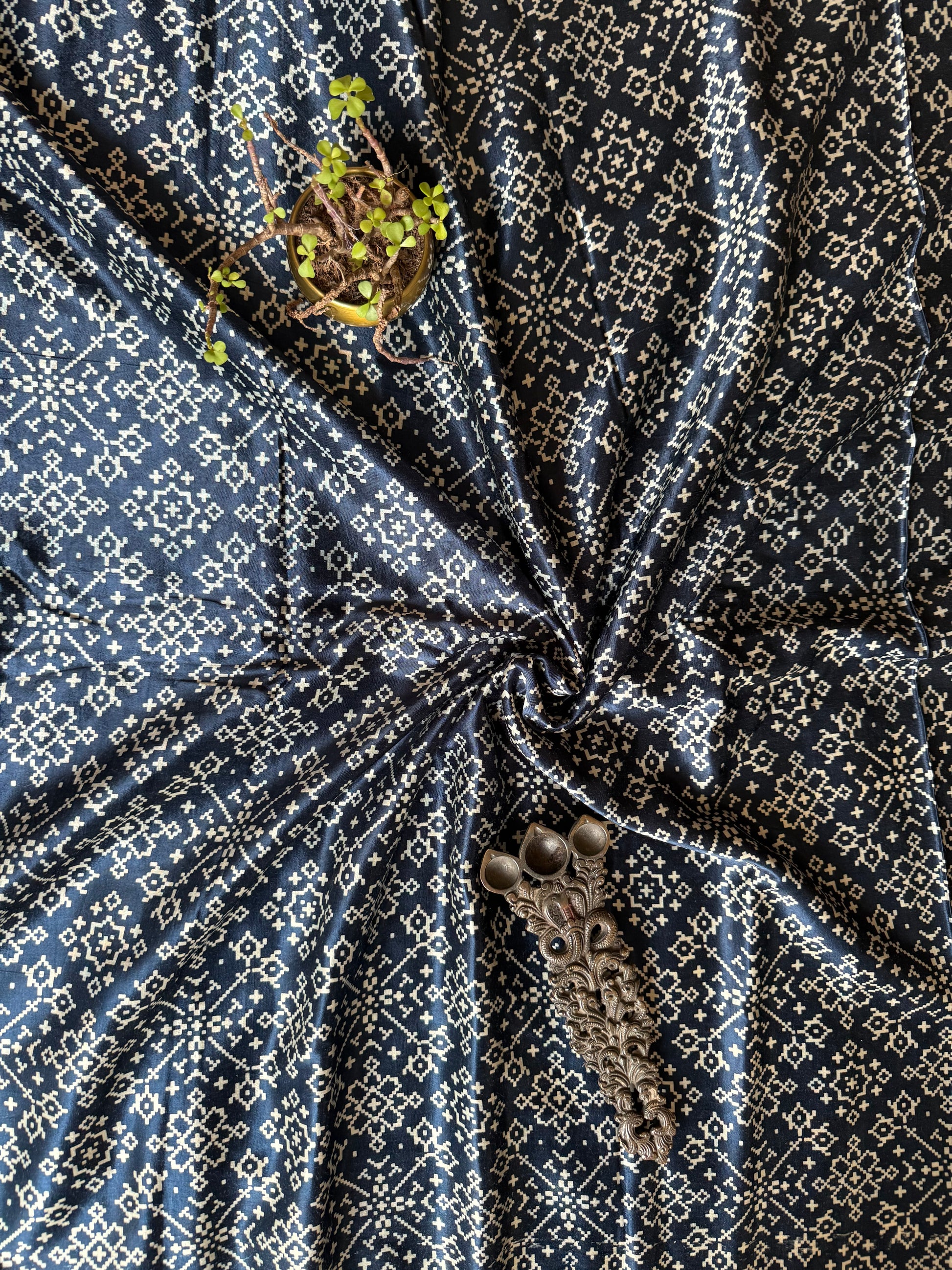| BLUE PATOLA PRINT MASHRU SILK FABRIC
