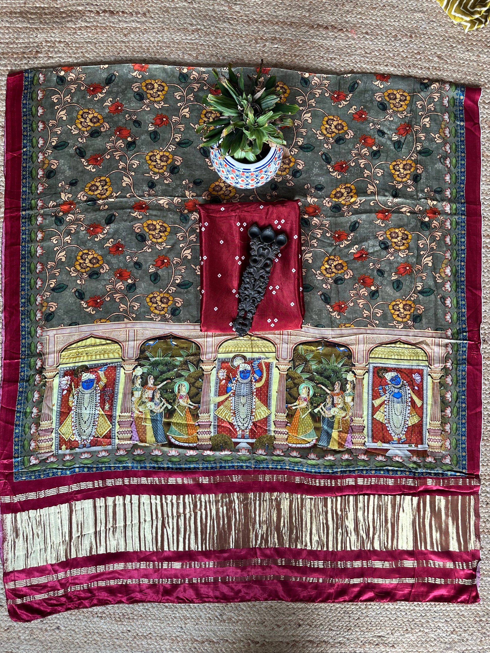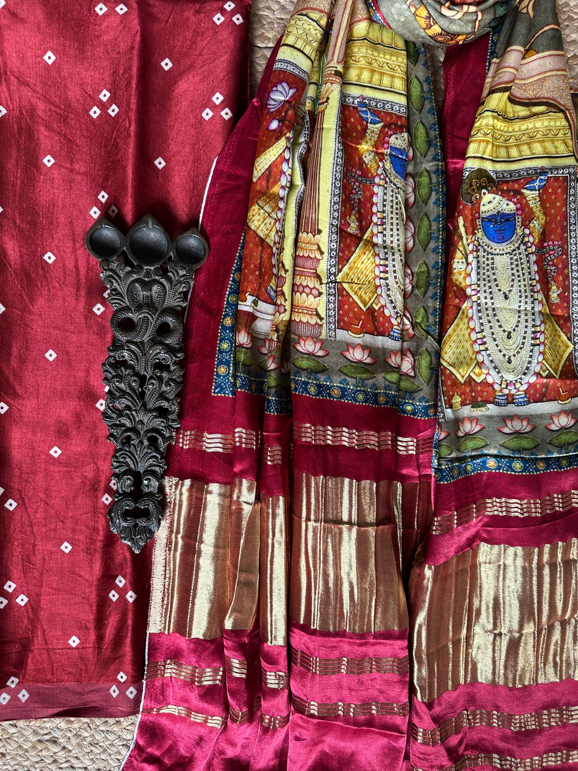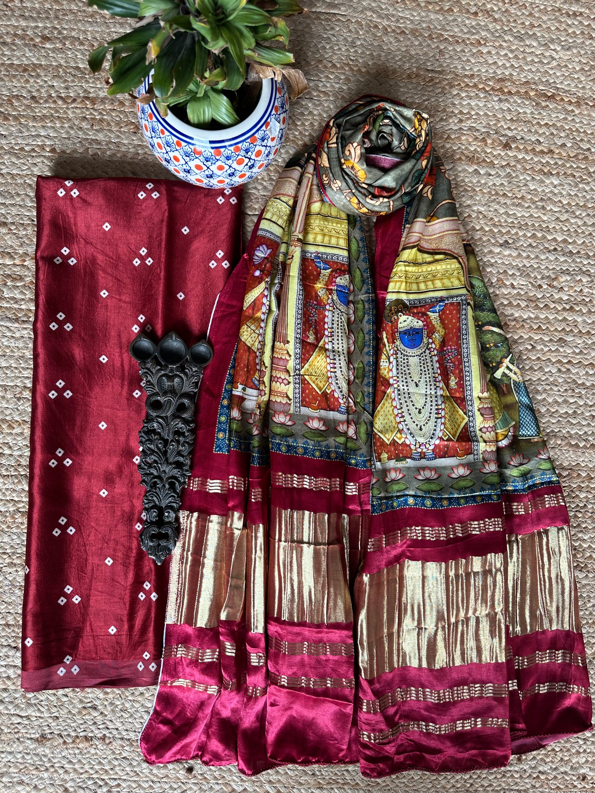 | MAROON MASHRU SILK KURTA WITH PATOLAPRINT MODAL SILK DUPATTA