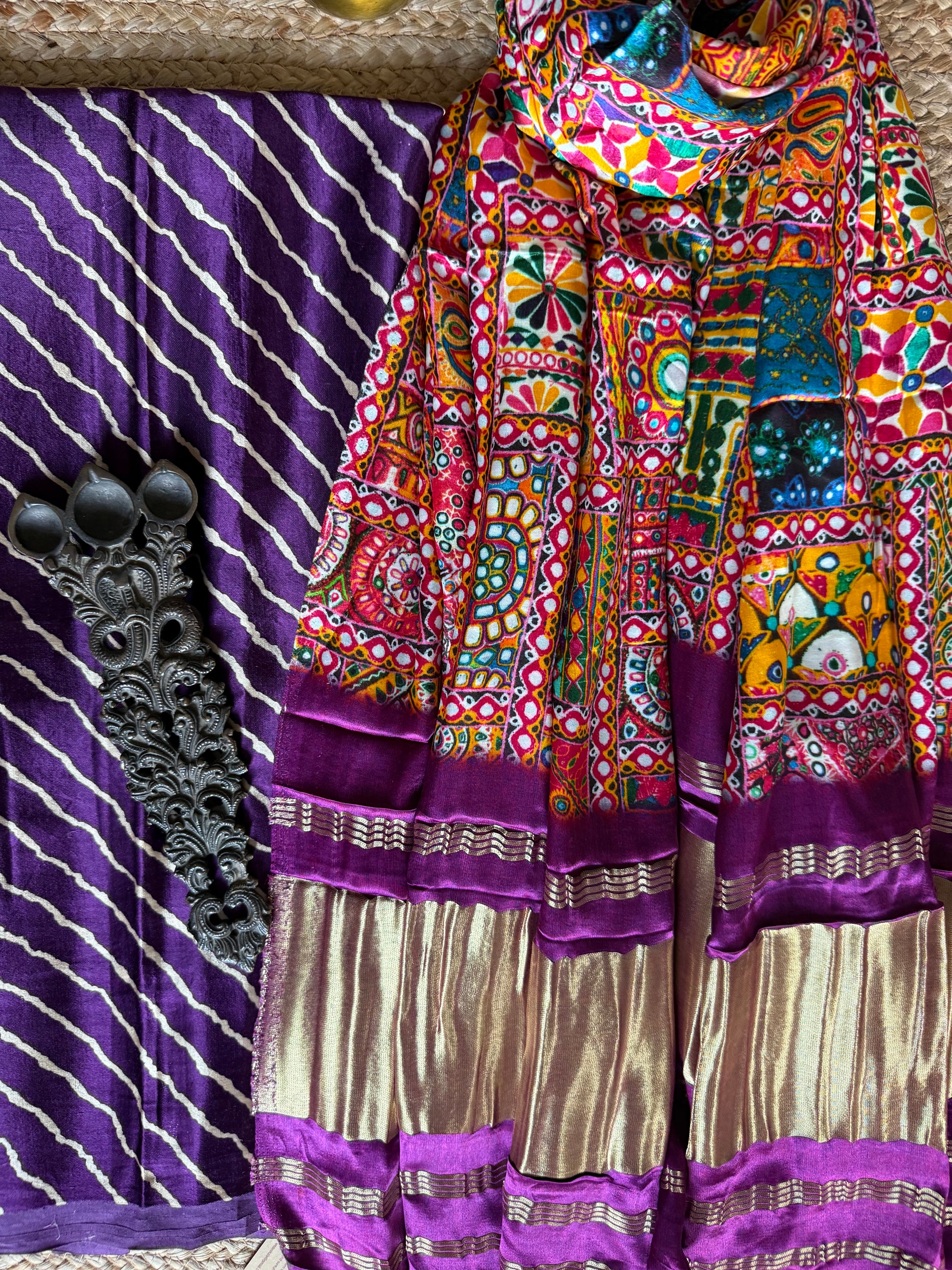 PURPLE LEHERIYA MASHRU SILK KURTA WITH PATOLA HANDCRAFTED MODAL SILK DUPATTA PS-231