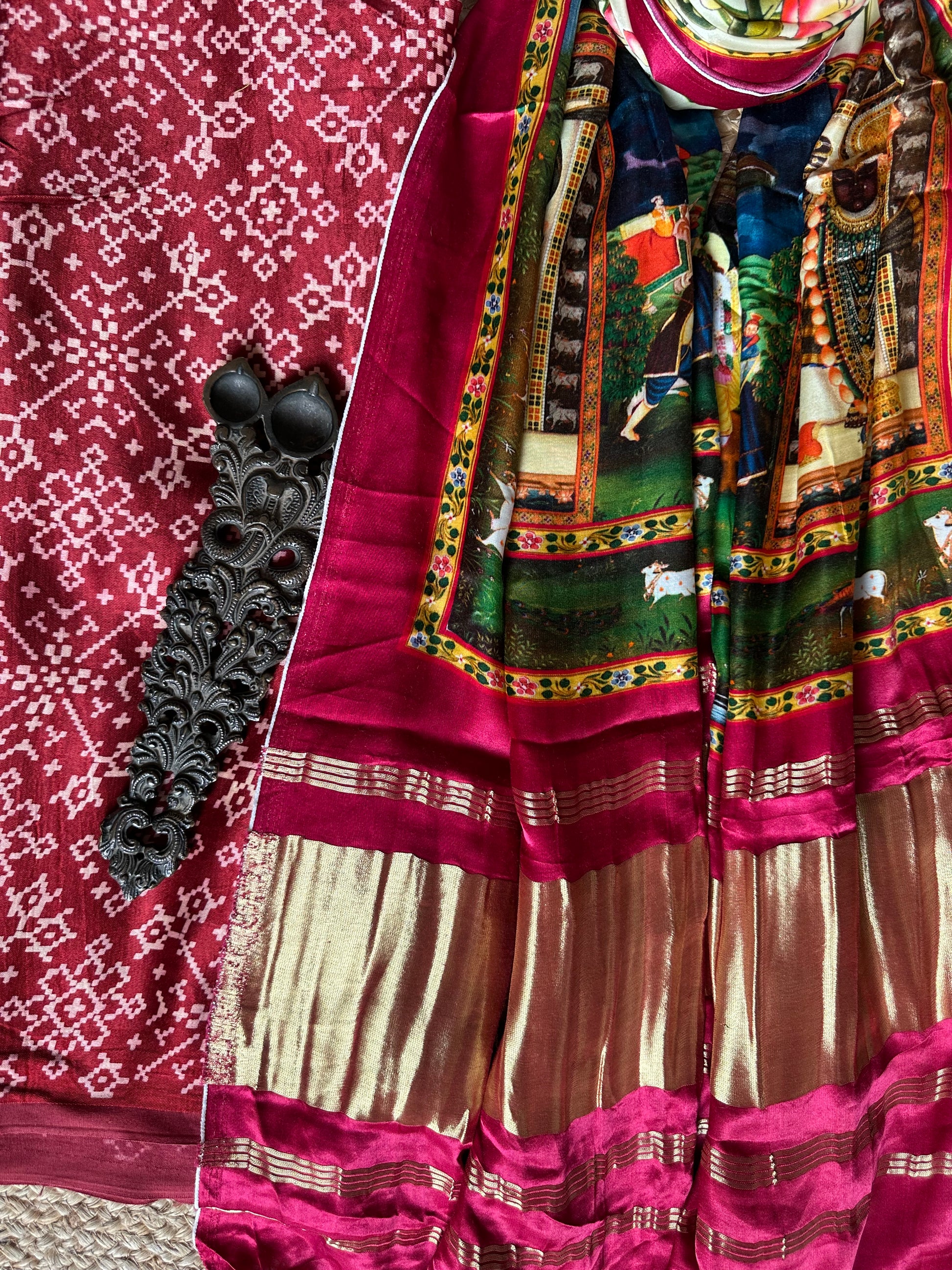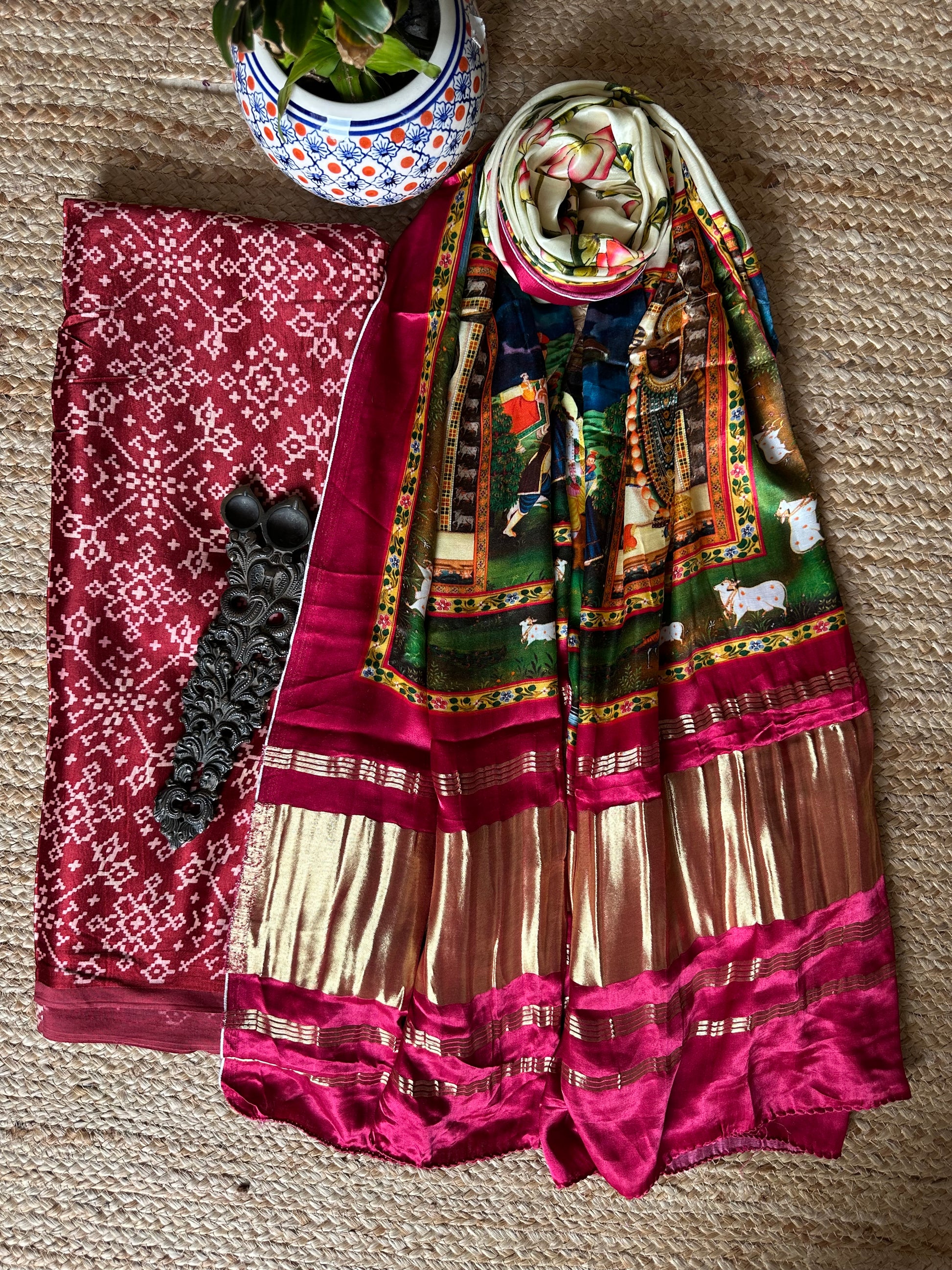 MAROON MASHRU SILK KURTA WITH PATOLAPRINT MODAL SILK DUPATTA