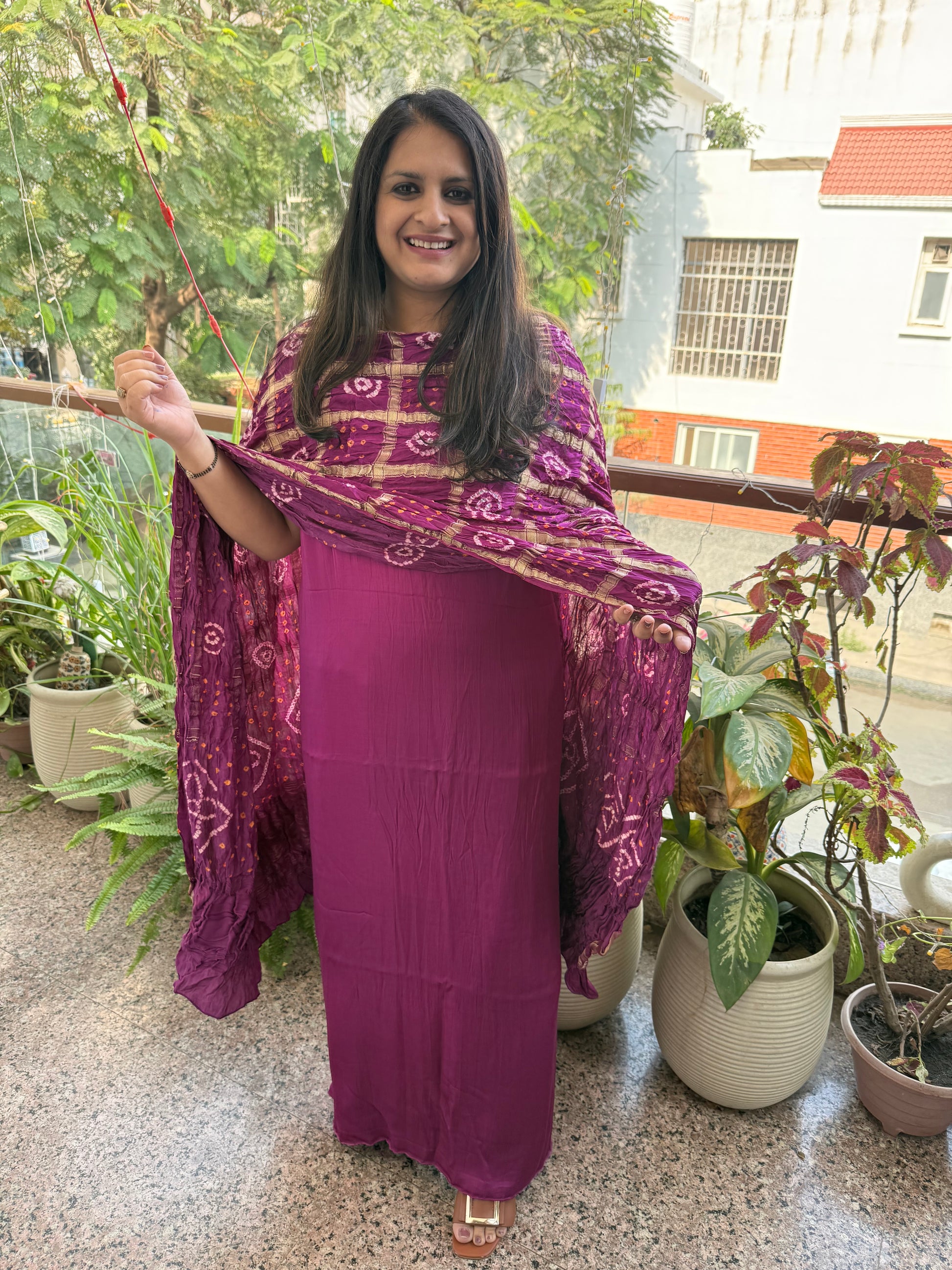 MAGENTA PURPLE MODAL SILK KURTA WITH GHARCHOLA HANDCRAFTED MODAL SILK DUPATTA PS-255