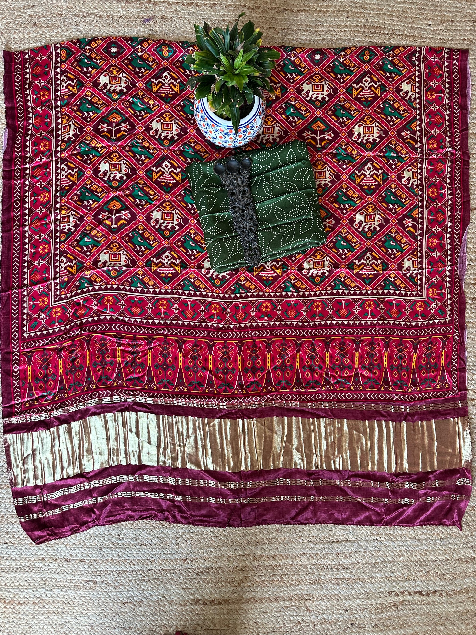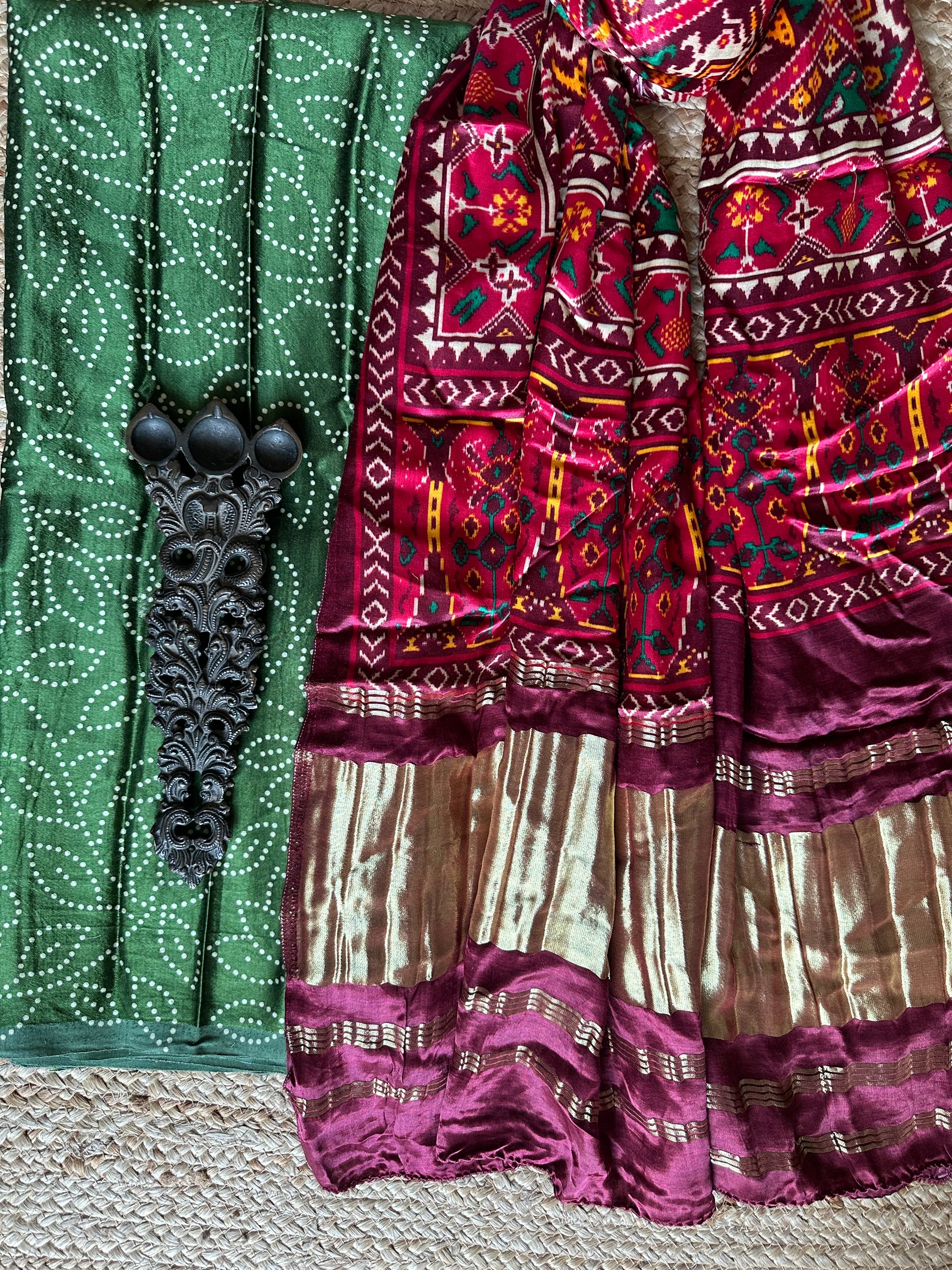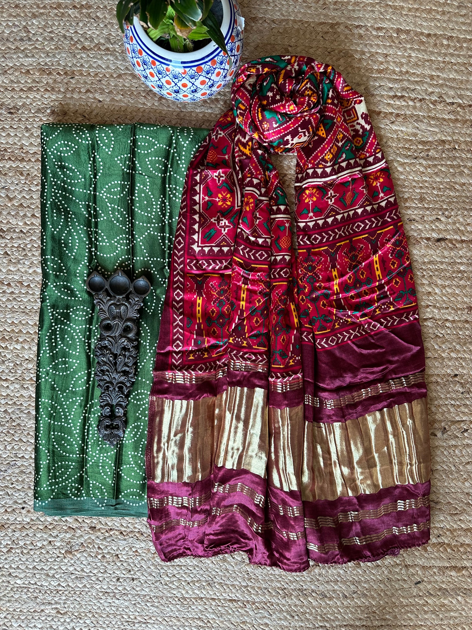 | GREEN MASHRU SILK KURTA WITH PATOLAPRINT MODAL SILK DUPATTA