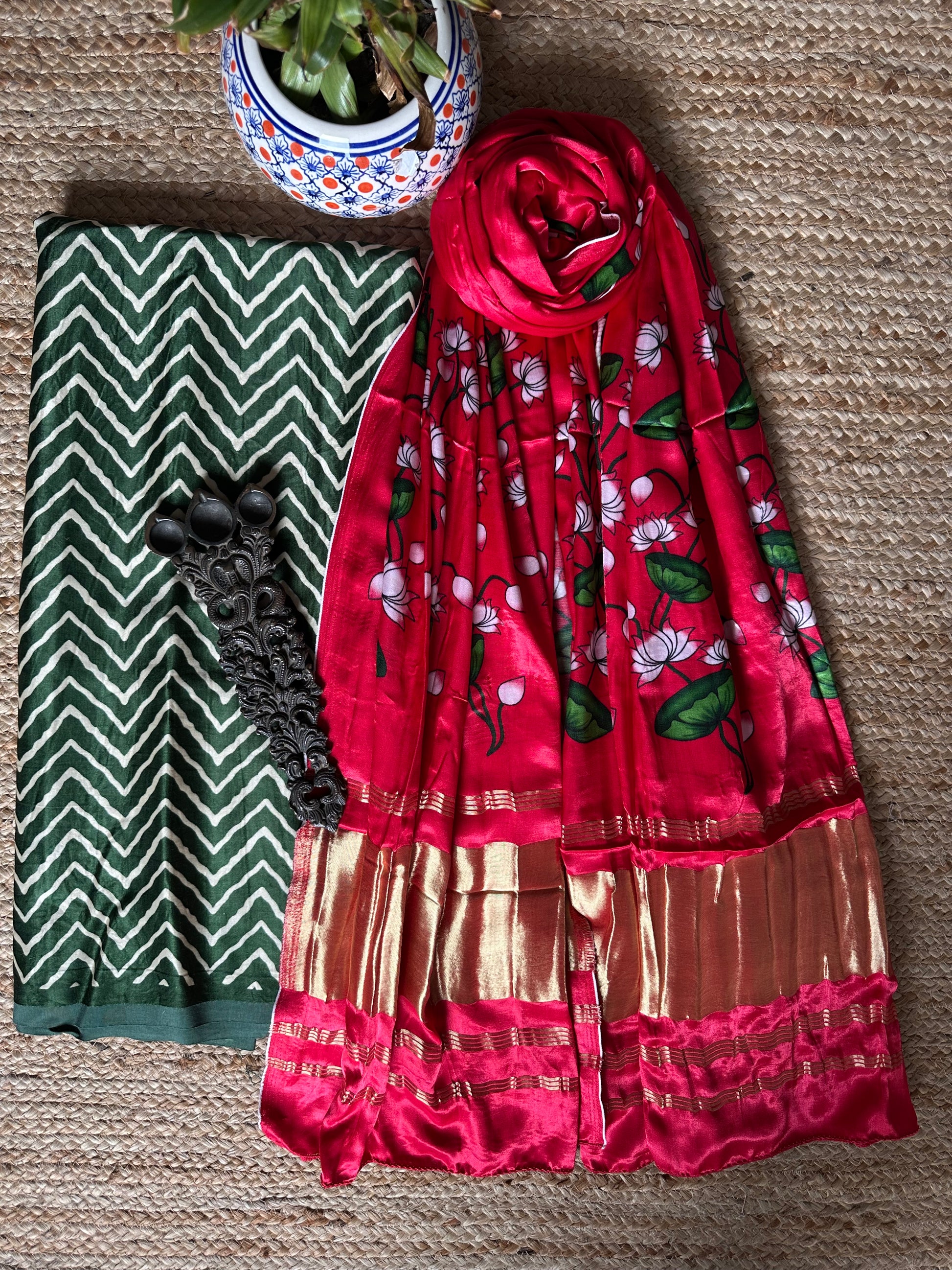 FABRIC: 2.5 MTRS METER DUPATTA : 2.5 MTRS * 35'' A SLIGHT DIFFERENCE IN SHADE COULD BE DUE TO THE CAMERA & LIGHTS. EMBRACE THE IMPERFECTION !! HAPPY HANDLOOM DRY CLEAN ONLY |