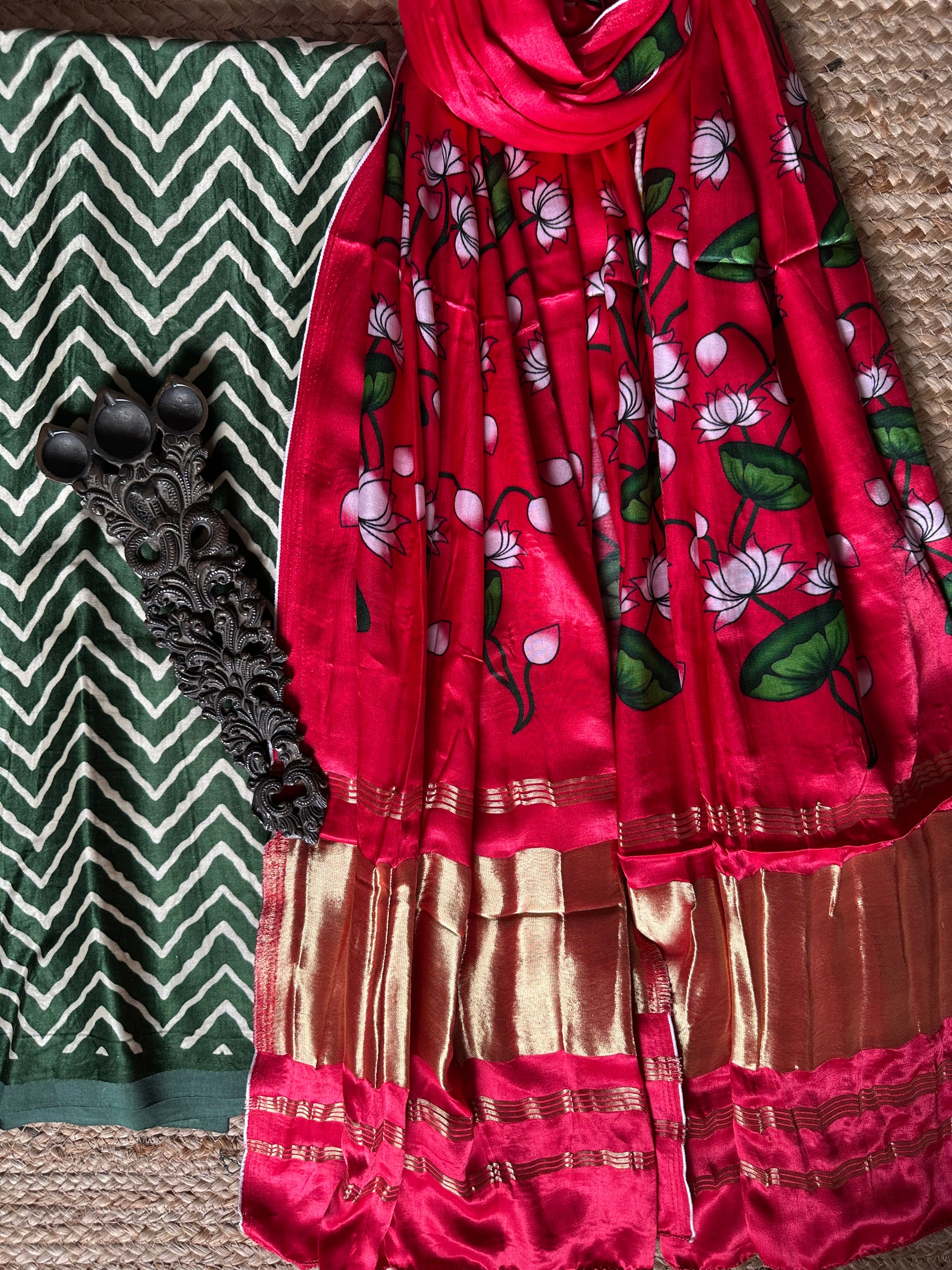 | GREEN MASHRU SILK KURTA WITH PATOLAPRINT MODAL SILK DUPATTA