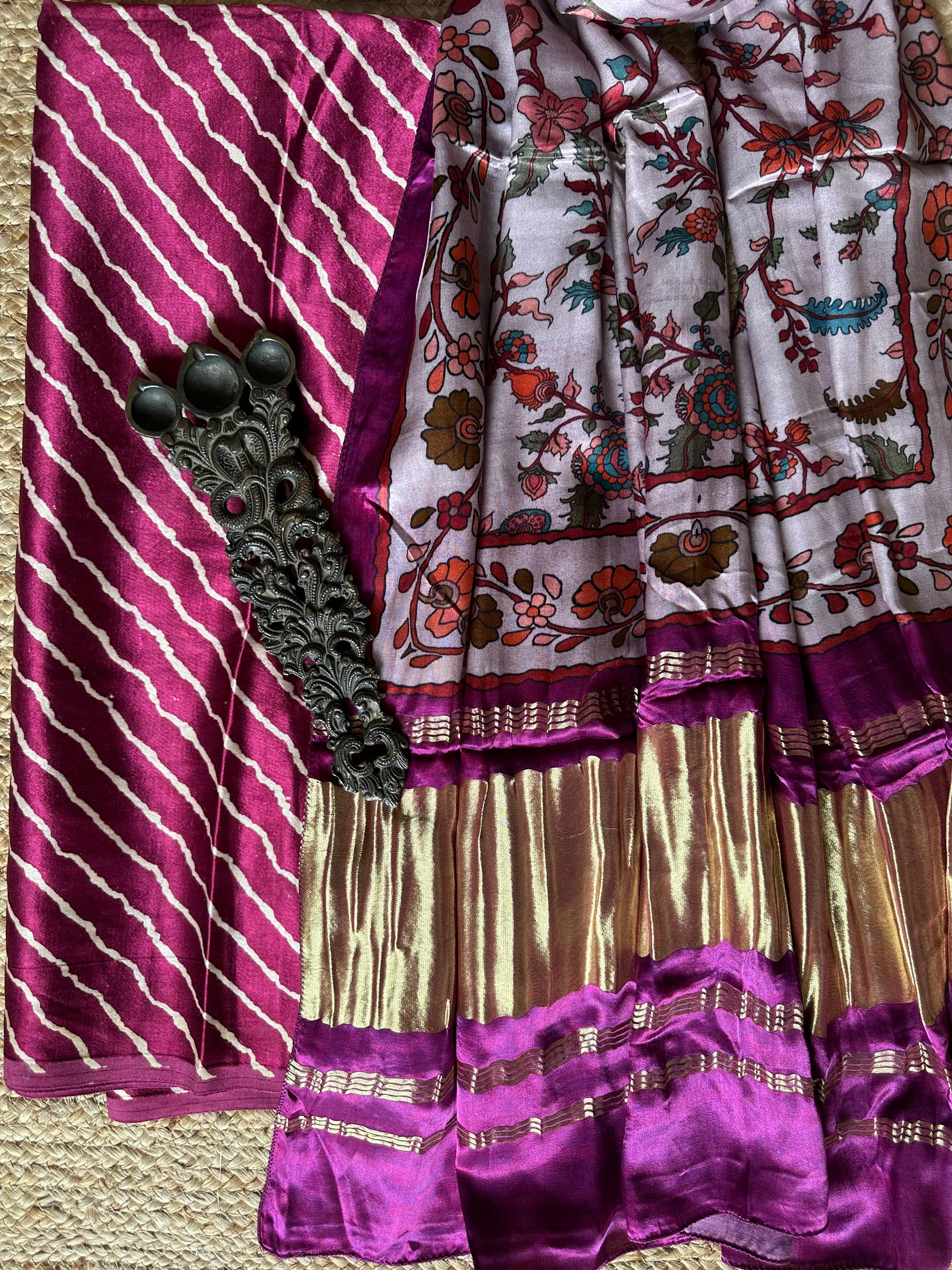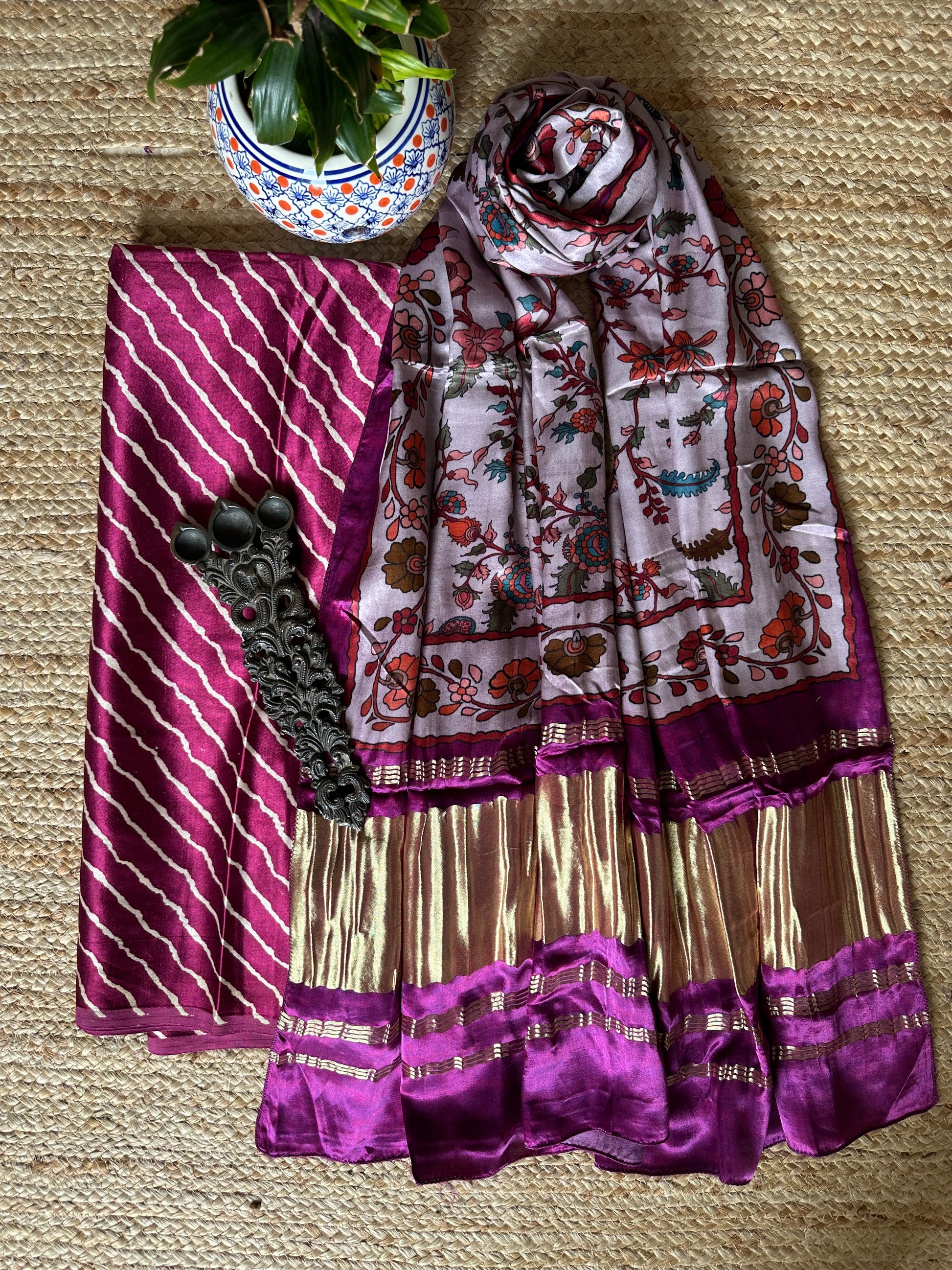 | MAGENTA PURPLE MASHRU SILK KURTA WITH PATOLAPRINT MODAL SILK DUPATTA