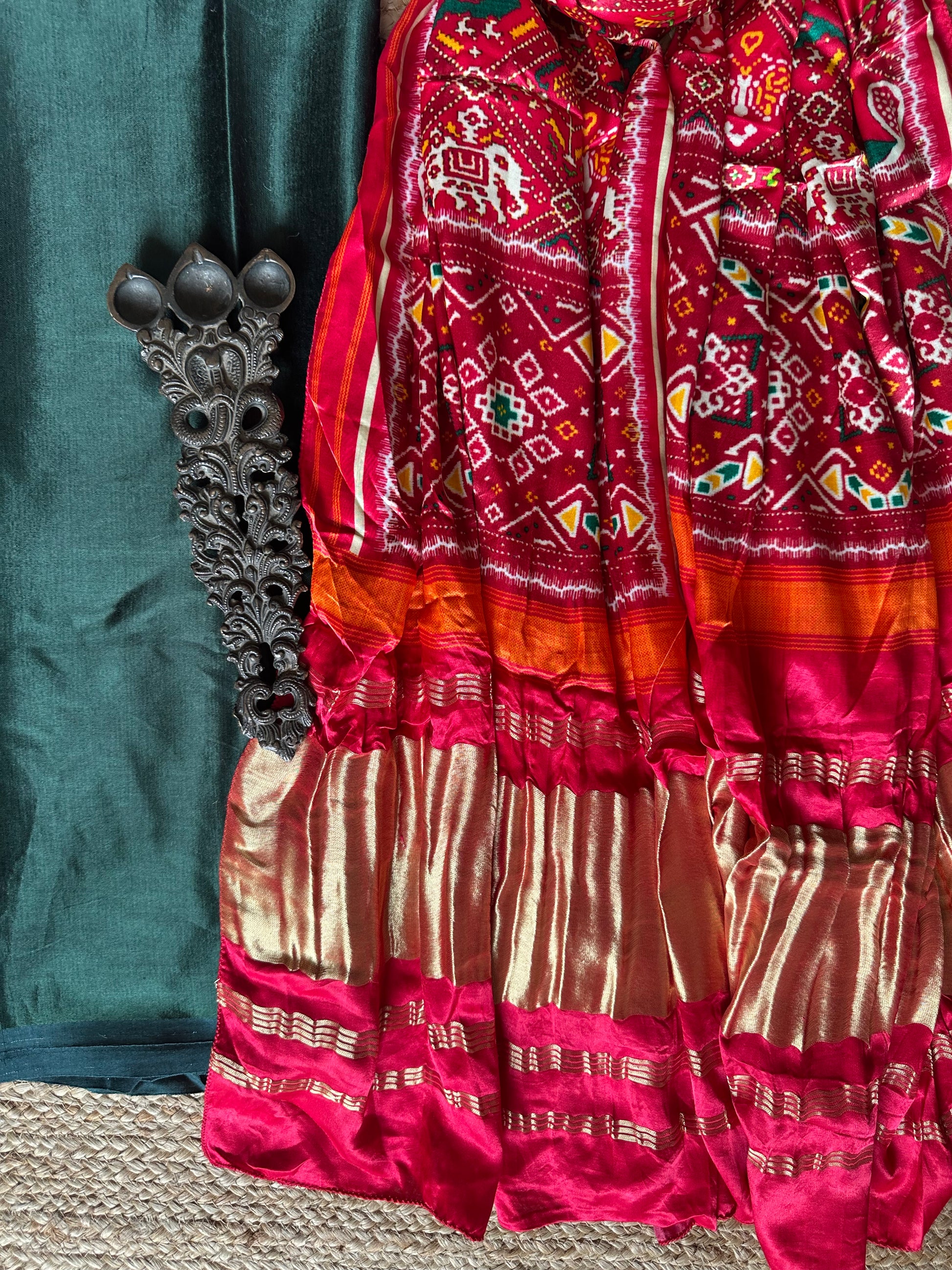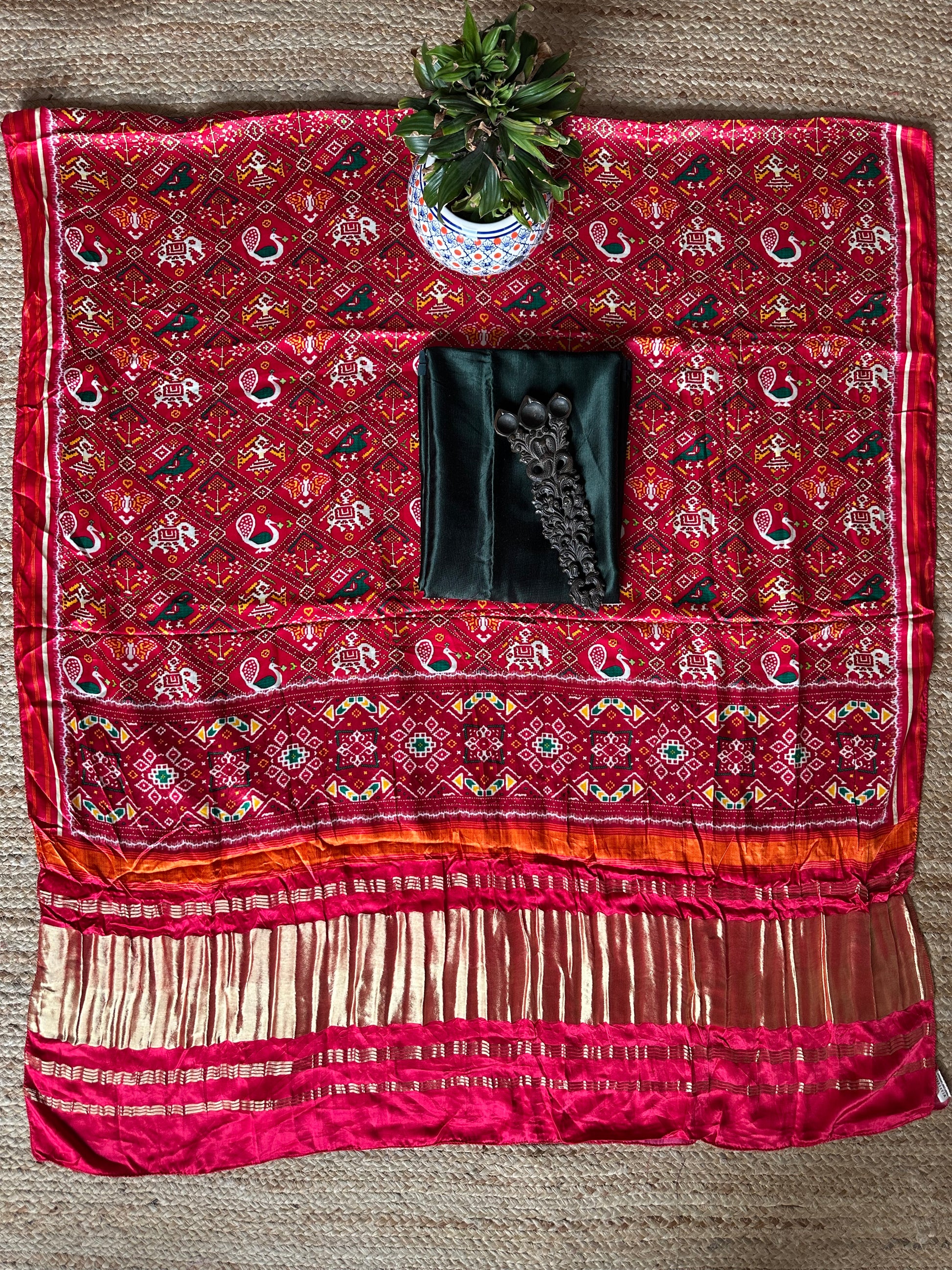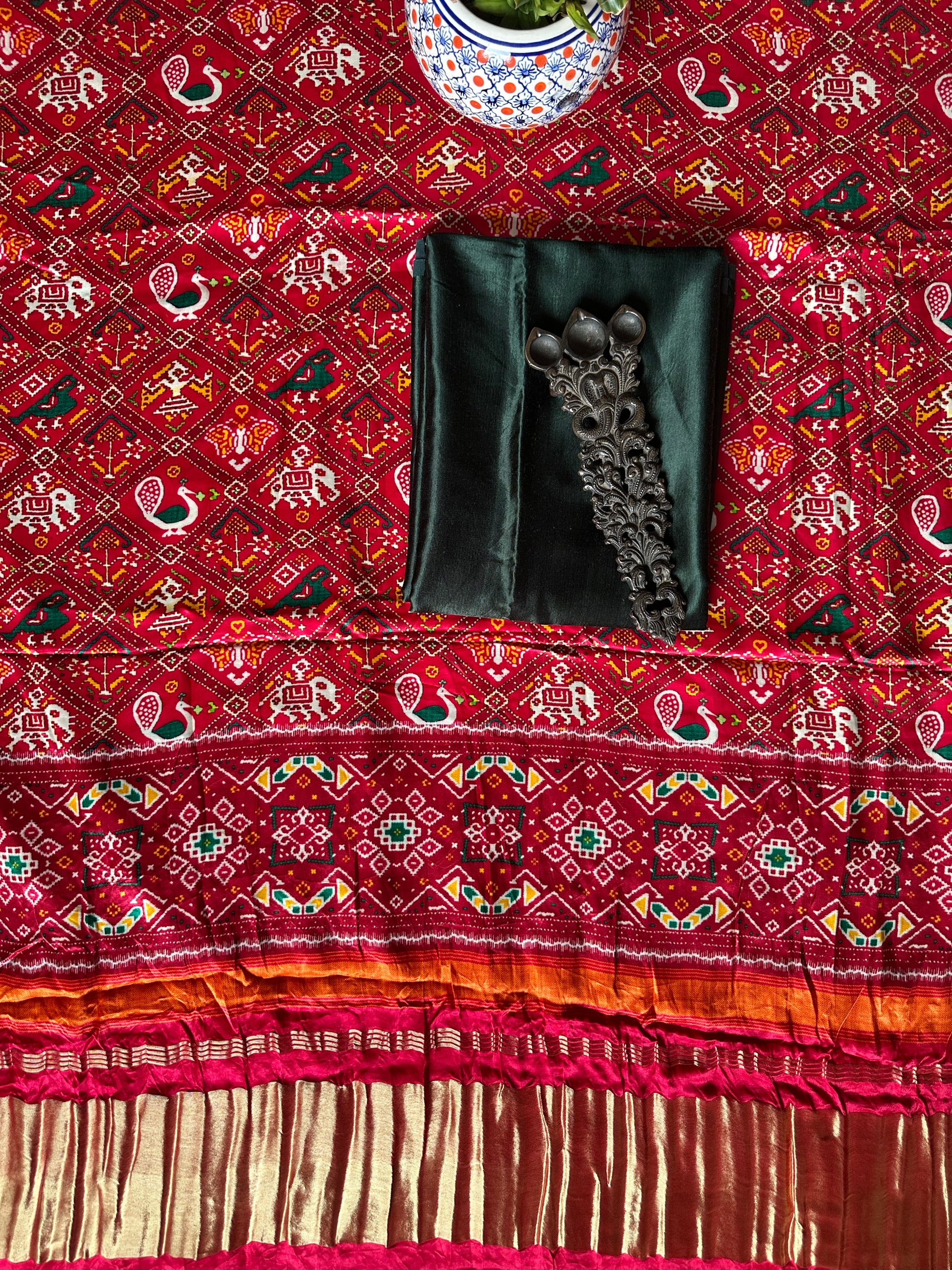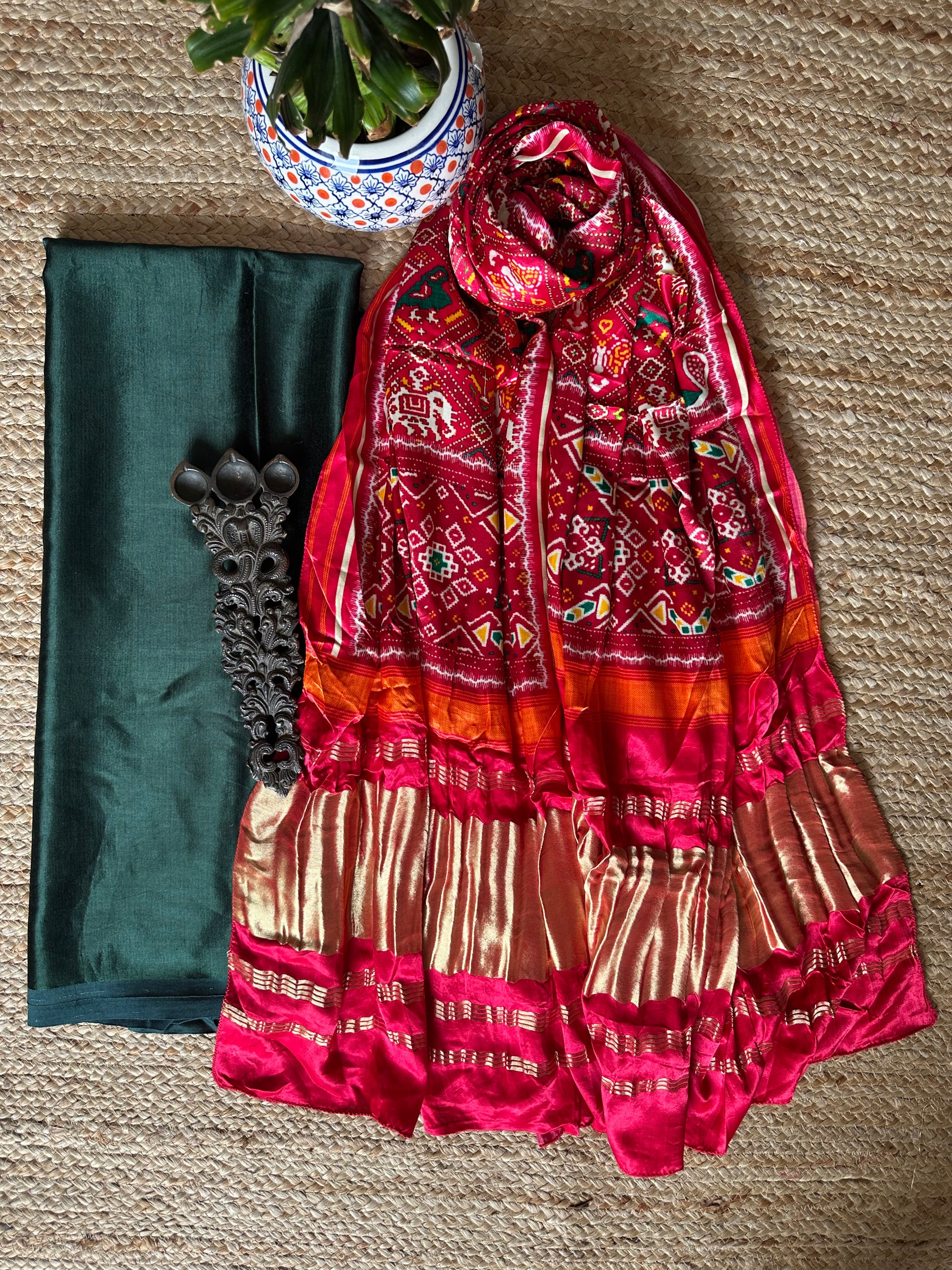 | DARK GREEN ASHRU SILK KURTA WITH PATOLAPRINT MODAL SILK DUPATTA