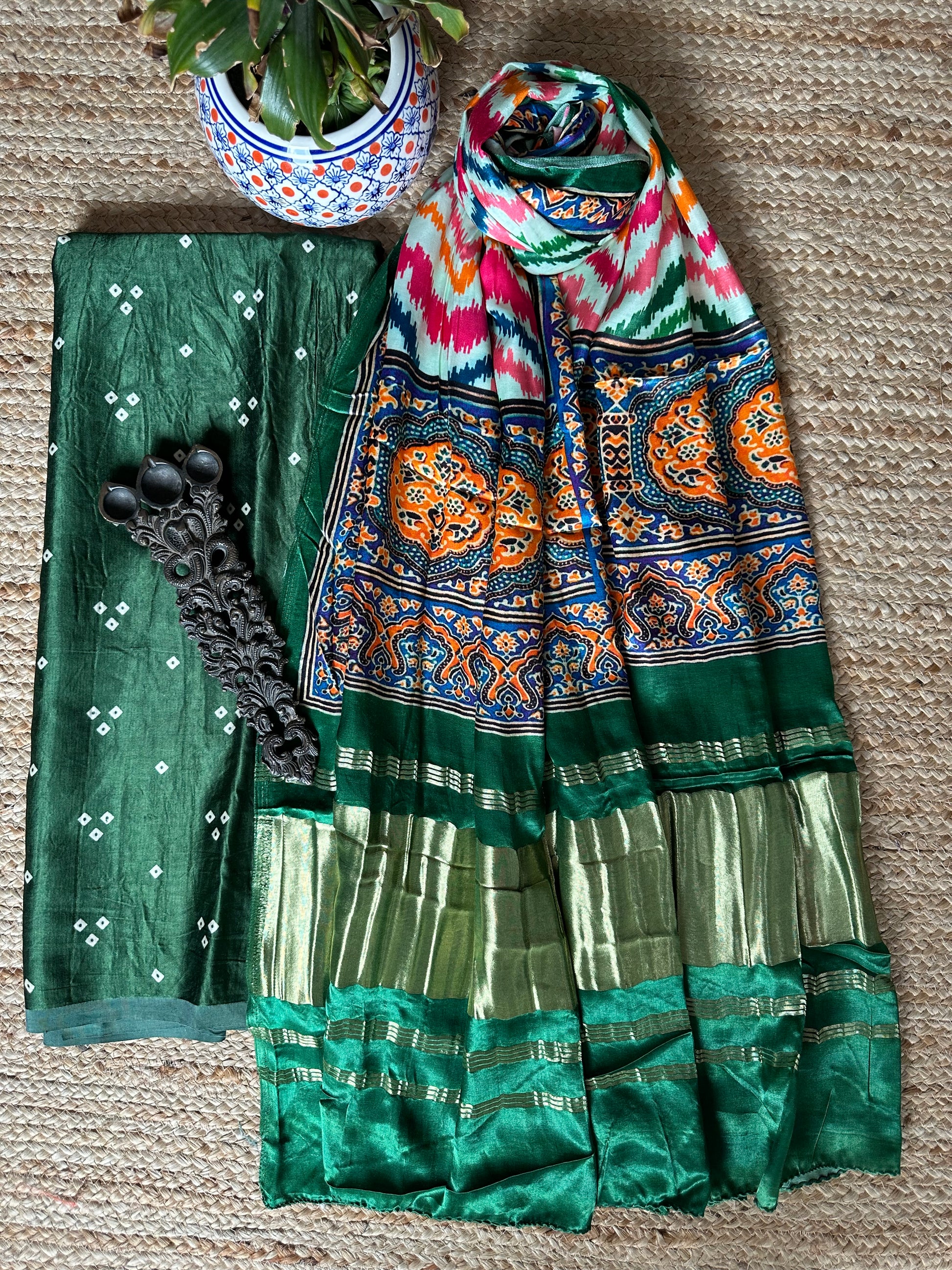GREEN THREE DOTS MASHRU SILK KURTA WITH PATOLA HANDCRAFTED MODAL SILK DUPATTA PS-208