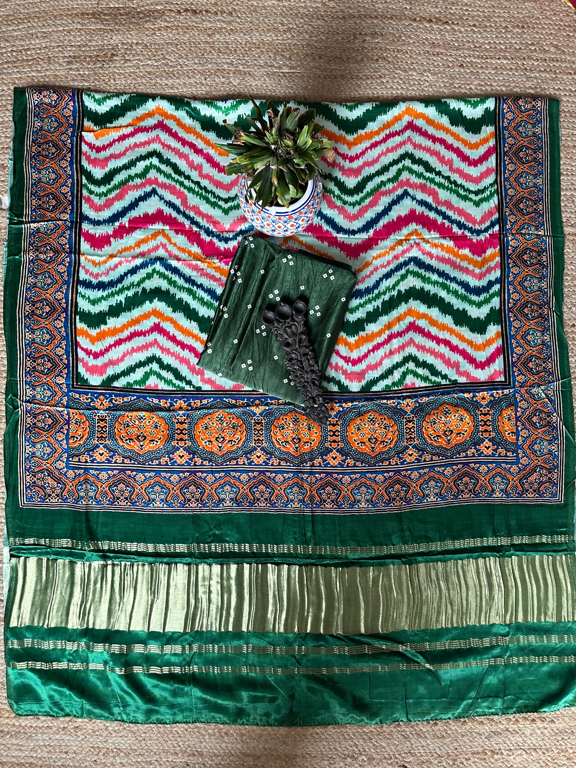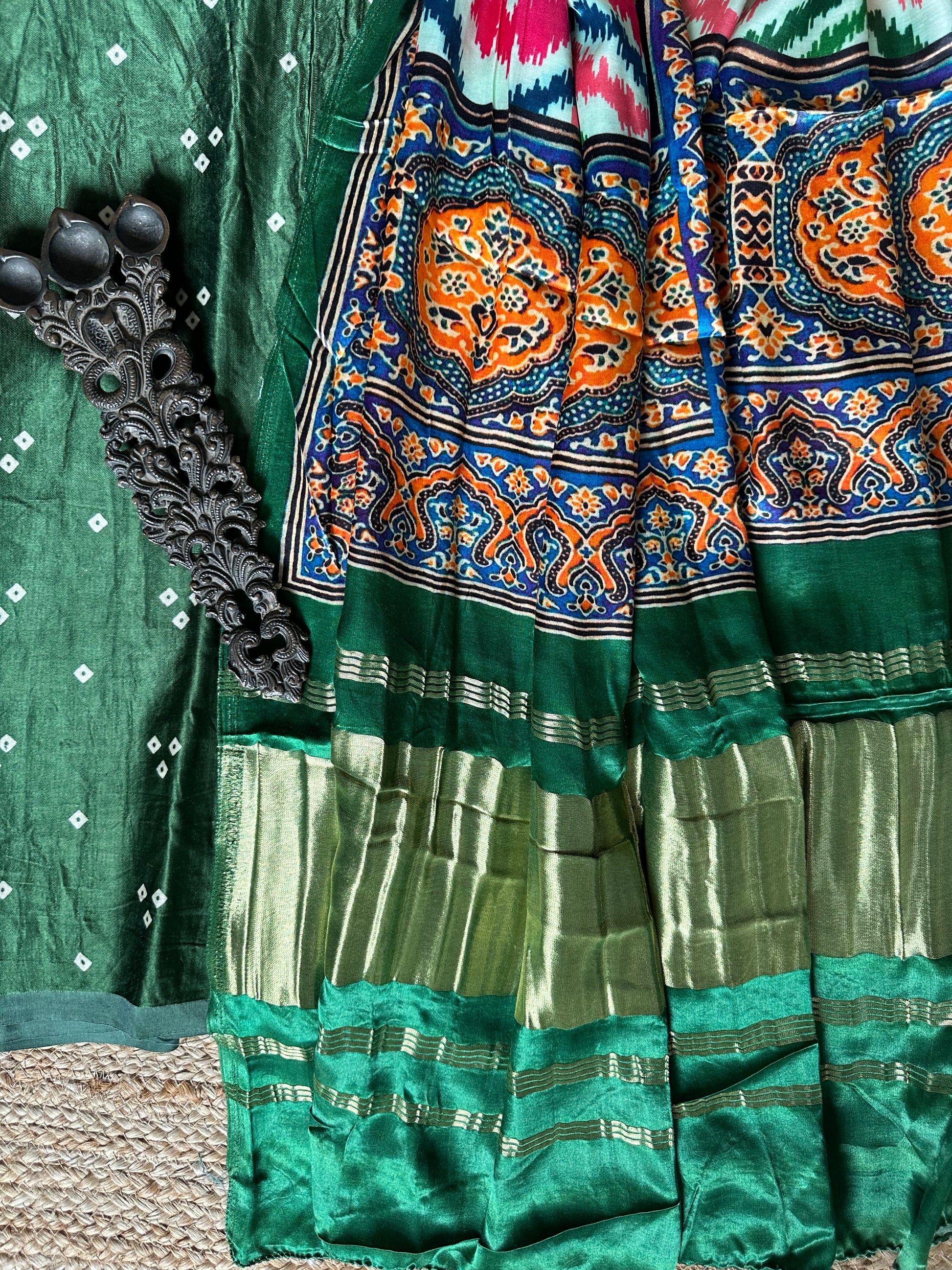 GREEN MASHRU SILK KURTA WITH PATOLAPRINT MODAL SILK DUPATTA