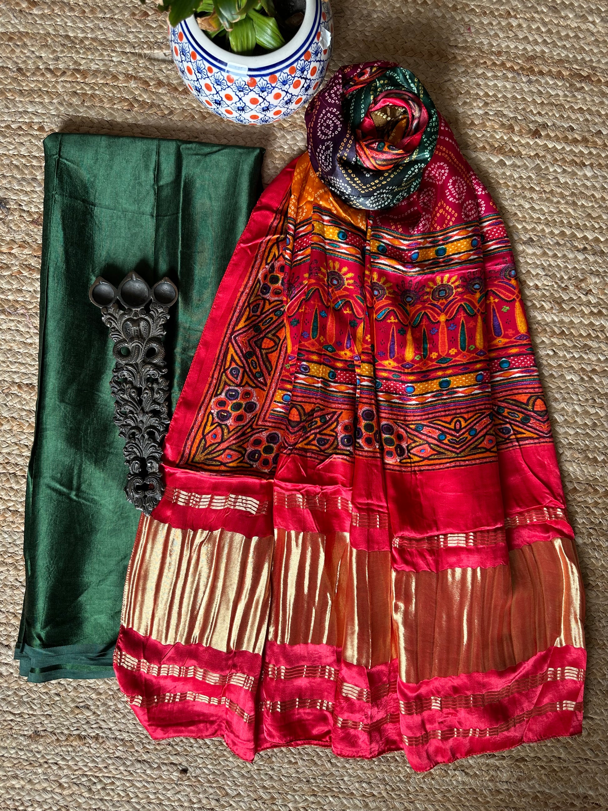 GREEN MASHRU SILK KURTA WITH PATOLAPRINT MODAL SILK DUPATTA