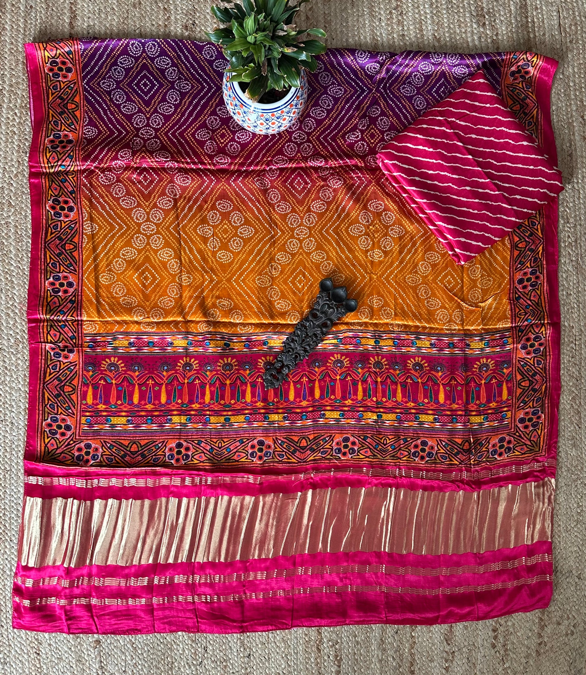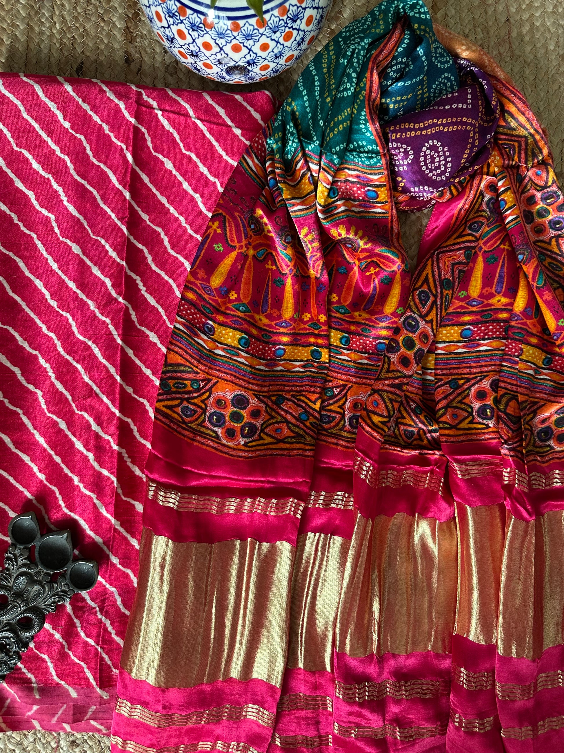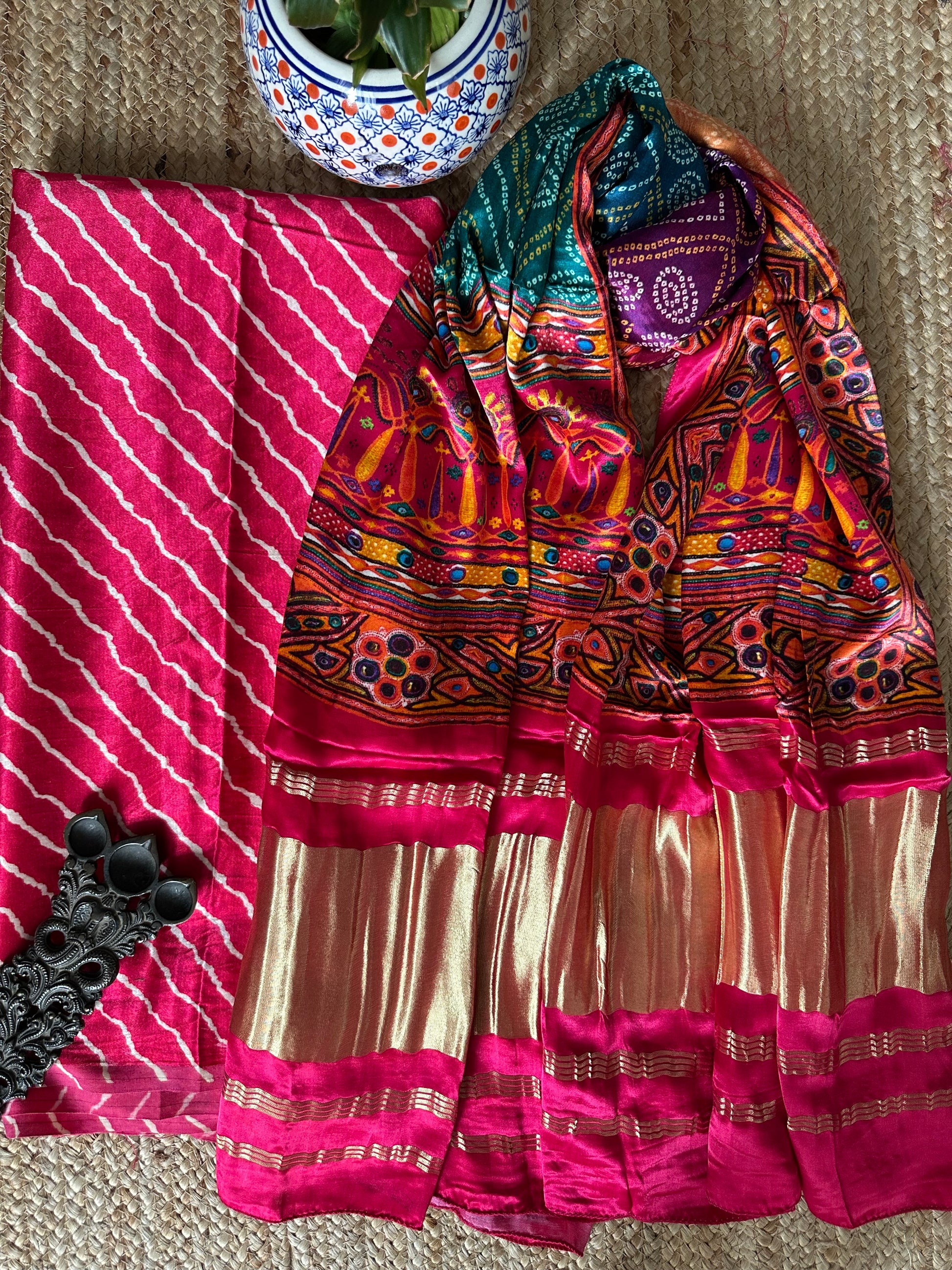 | PINK LEHERIYA MASHRU SILK KURTA WITH PATOLAPRINT MODAL SILK DUPATTA