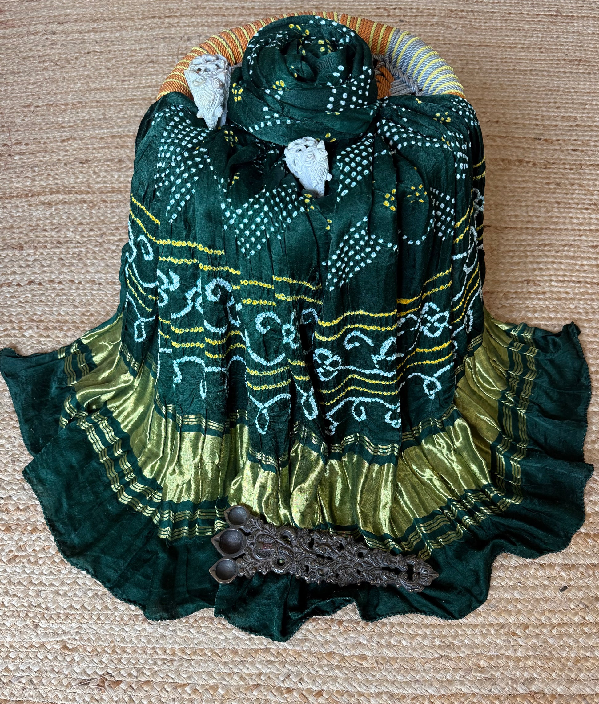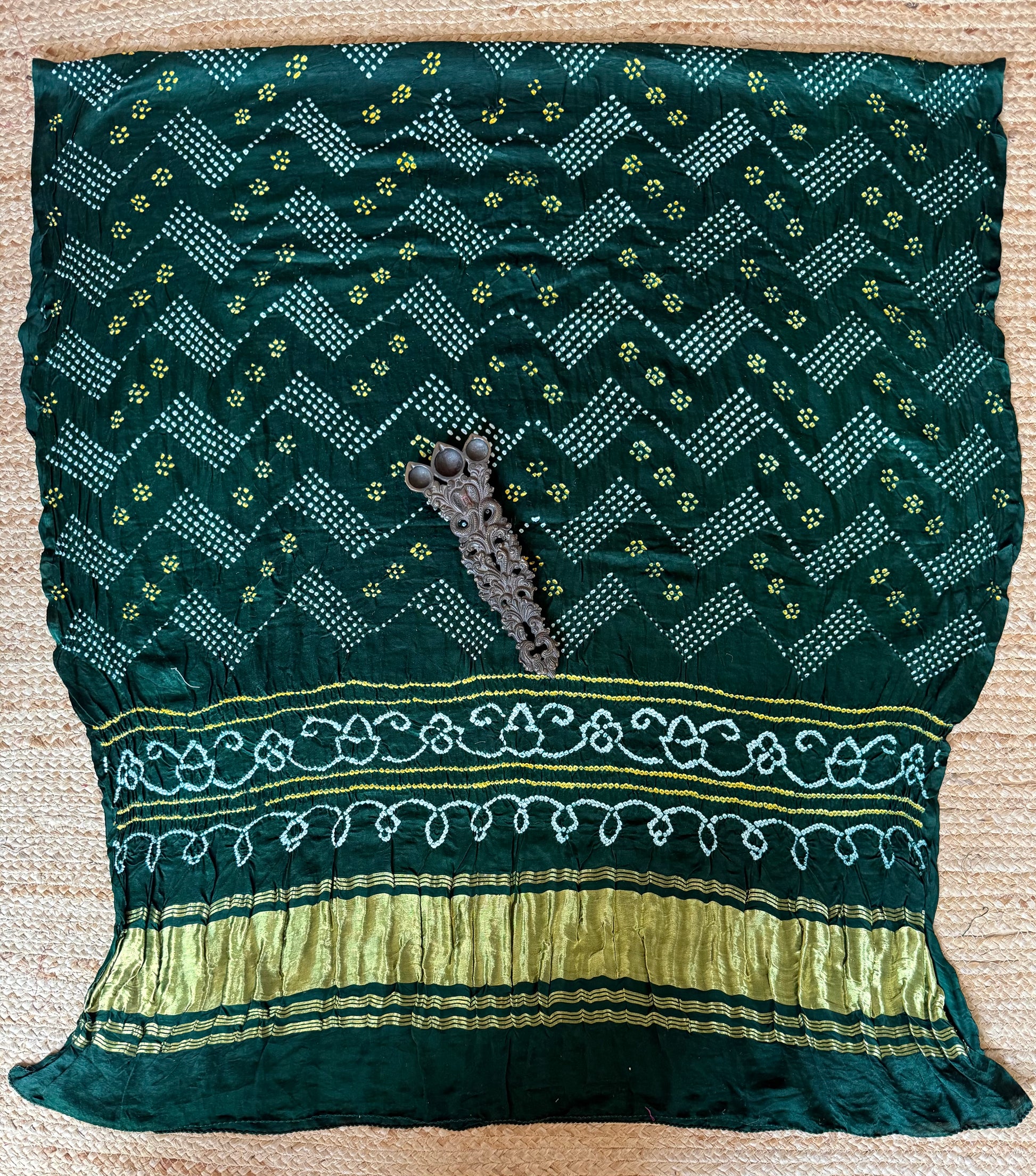 Bottle Green handcrafted chandmukhi bandhani gajji silk handwoven dupatta