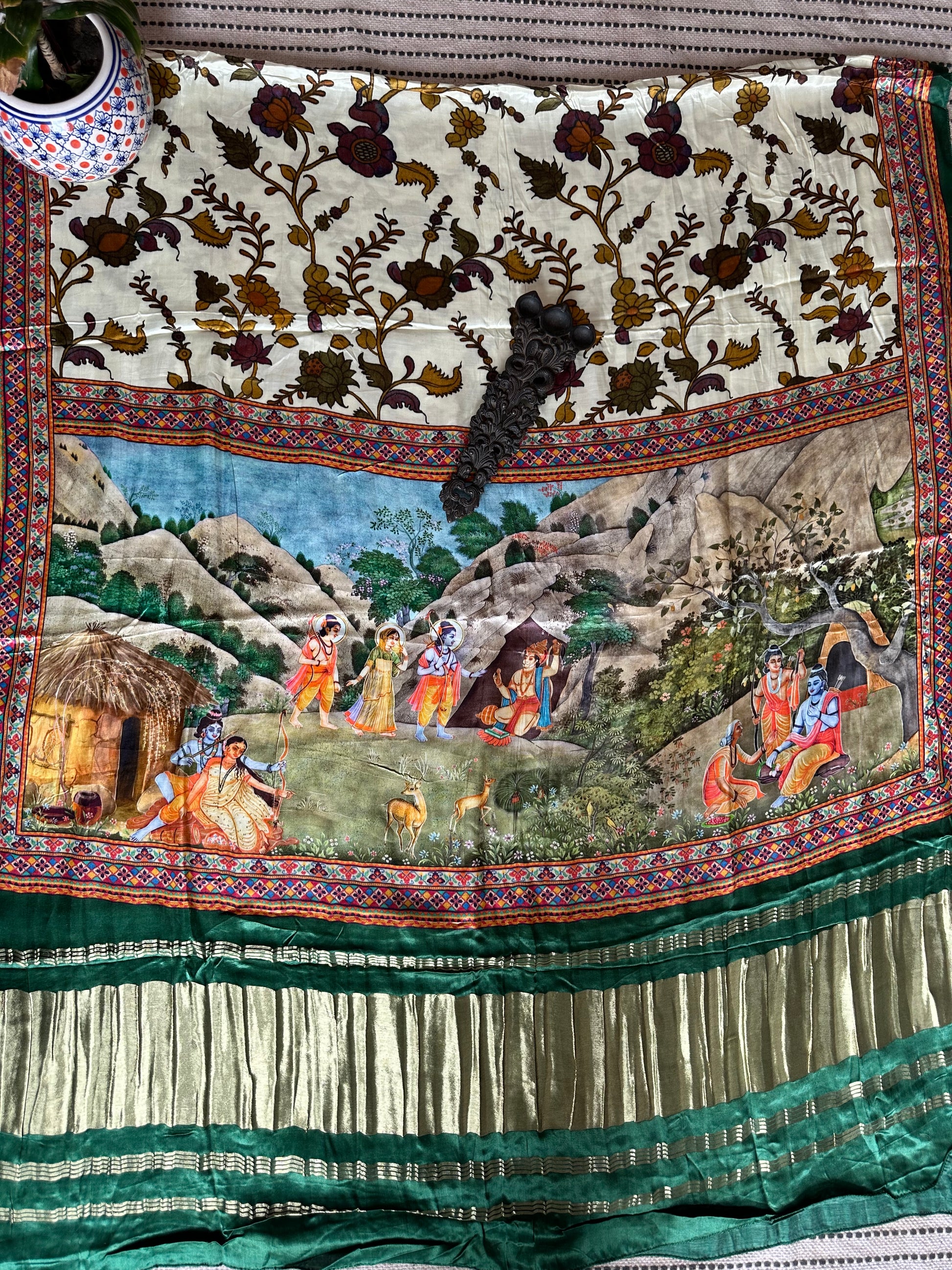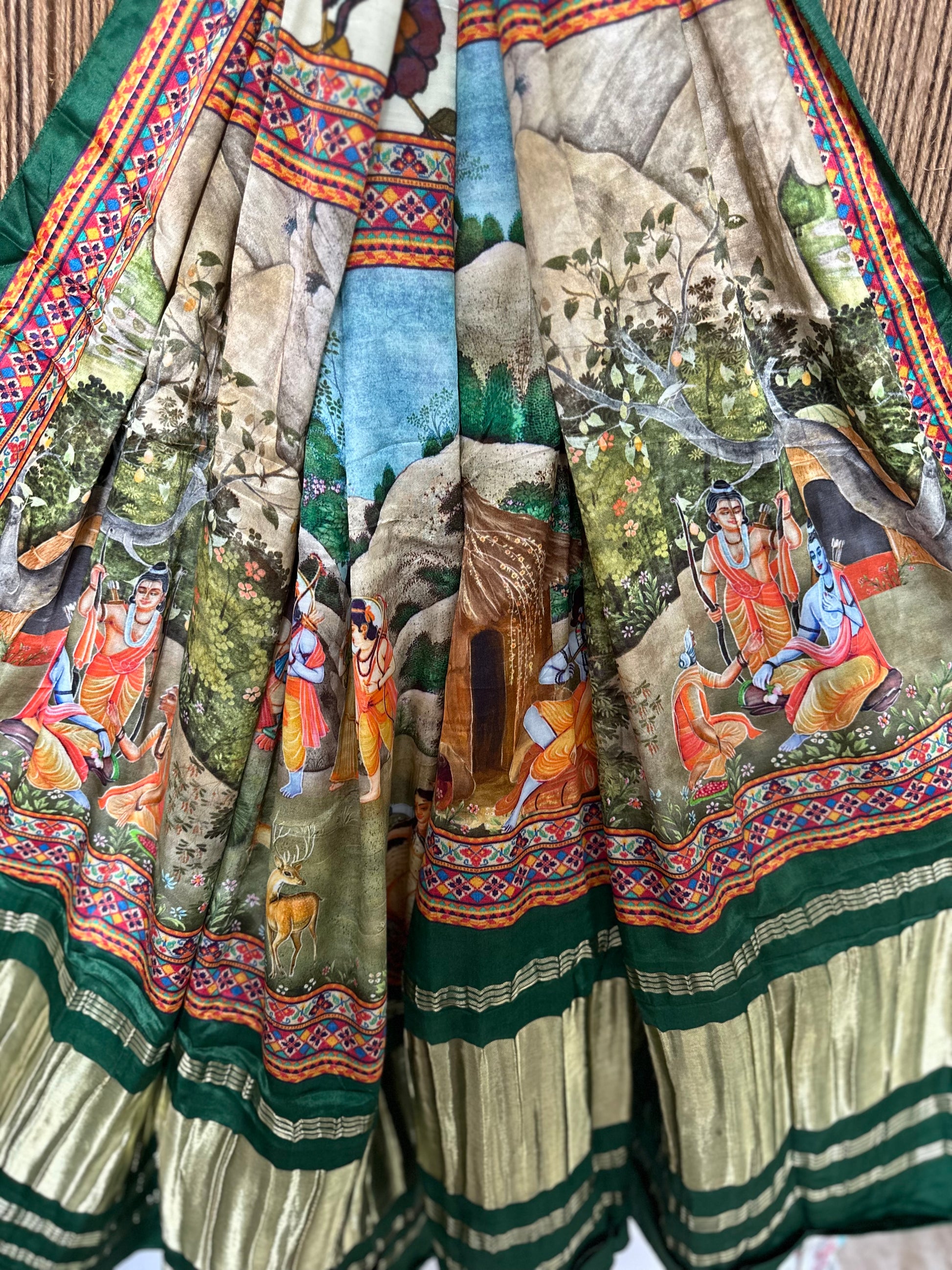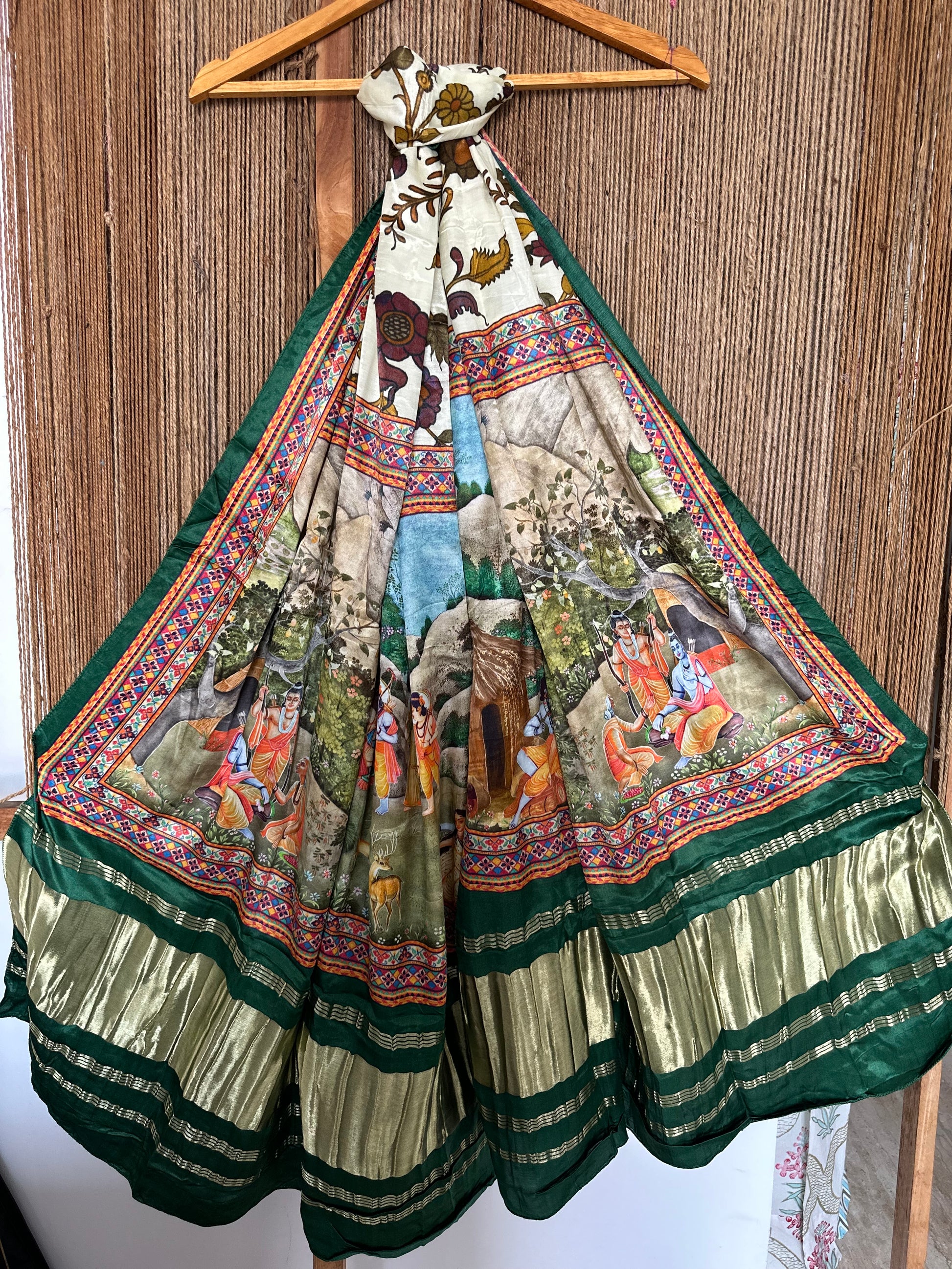 CREAM GREEN PICHWAI PATOLA PRINT MODAL SILK DUPATTA