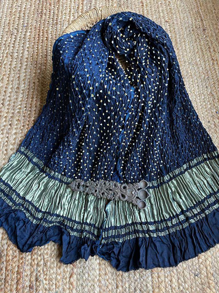 DARK BLUE MODAL SILK BANDHANI DUPATTA WITH ZARI BORDER