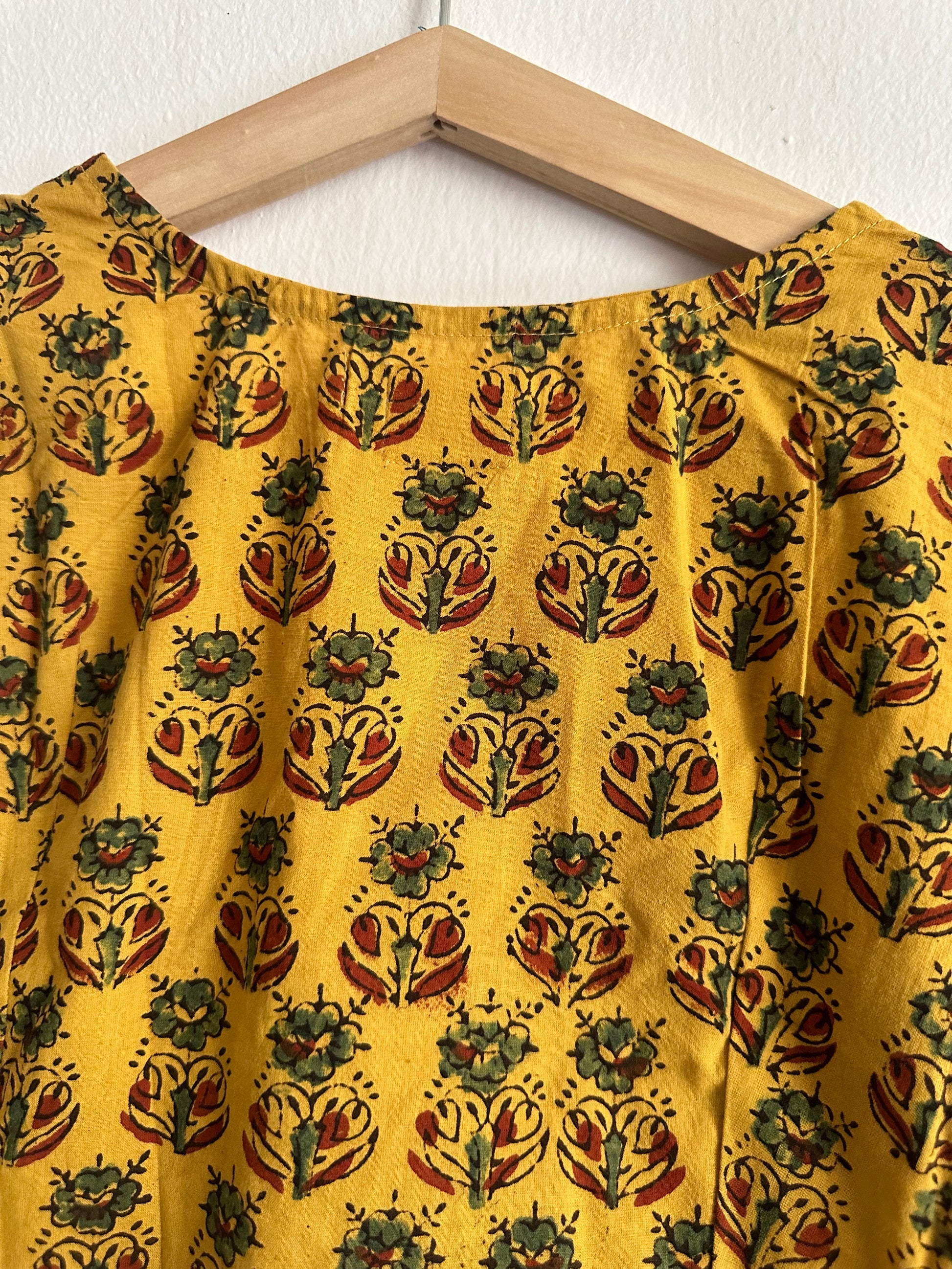 MUSTARD AJRAKH COTTON BLOUSE BLOUSE WITH WOODEN BUTTON