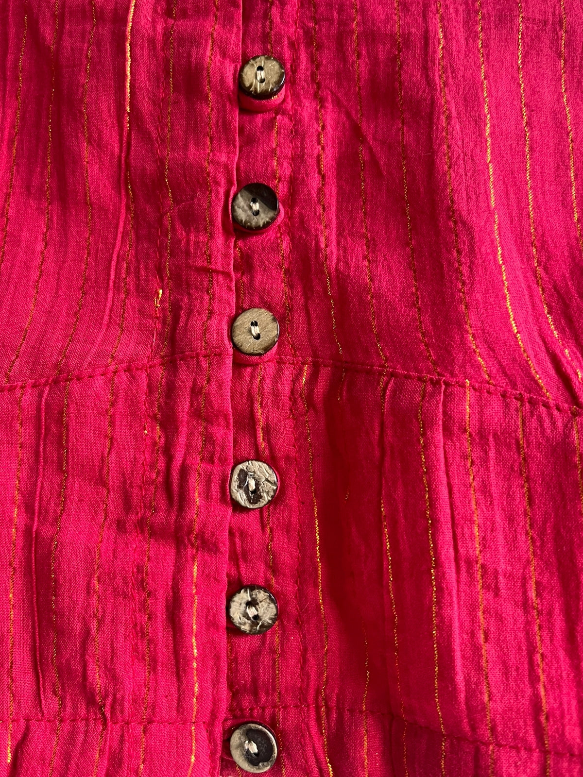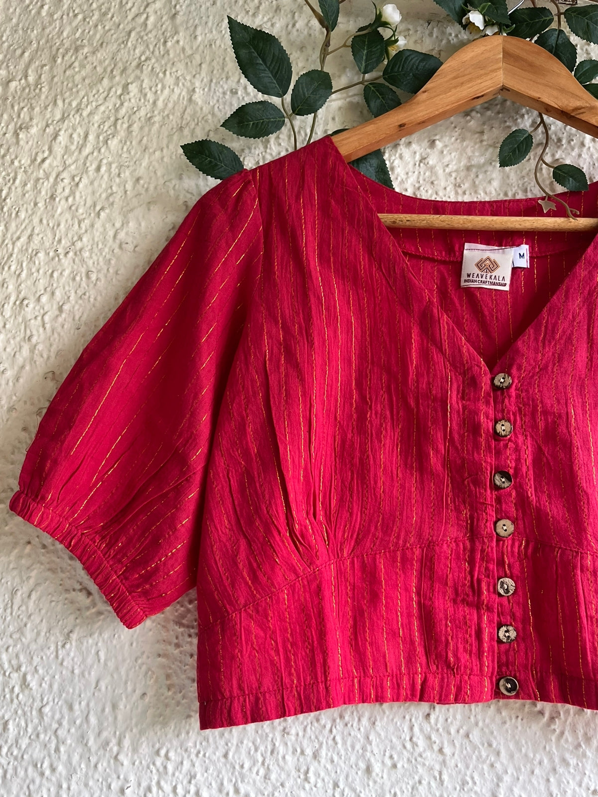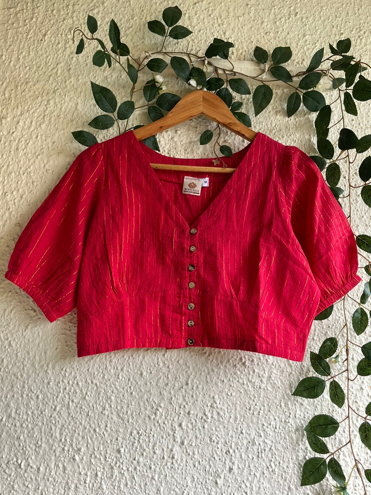RED COTTON BLOUSE ZARI BLOUSE WITH WOODEN BUTTON
