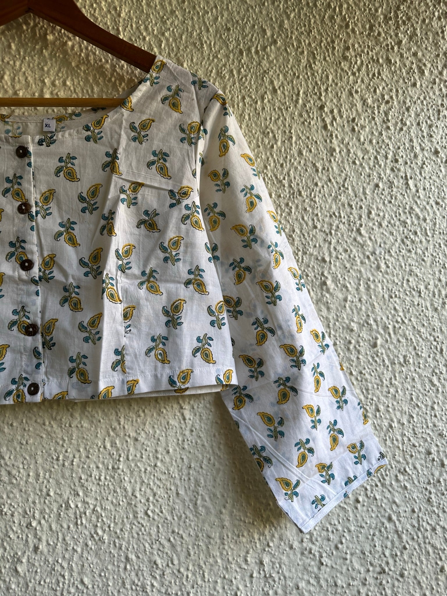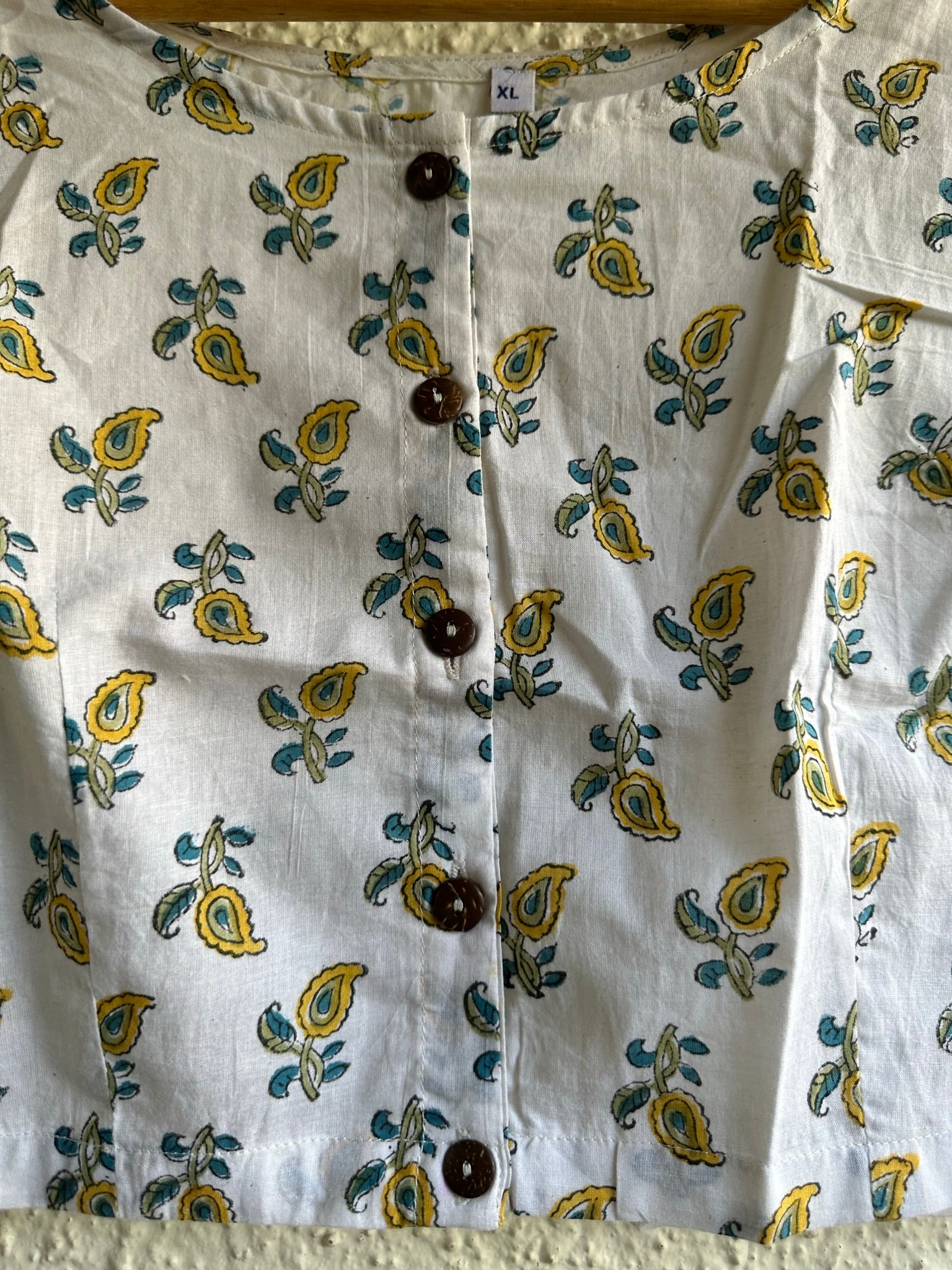 WHITE COTTON BLOUSE WITH WOODEN BUTTON