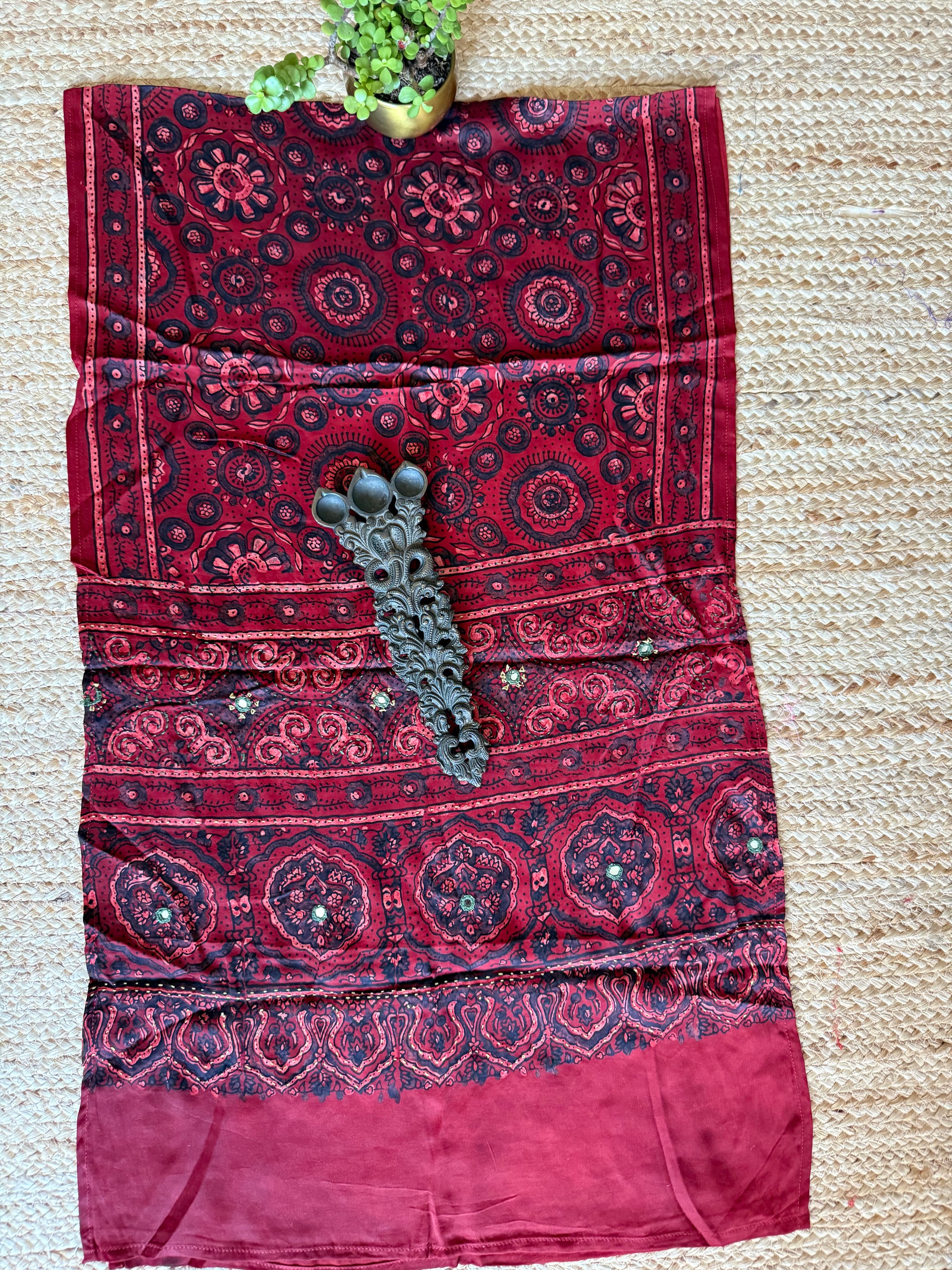 MAROON AJRAKH MODAL SILK STOLE ,THEY ARE HAND EMBROIDERY HANDBLOCK HANDCRAFTED HANDDYED, ACCESSORIZED