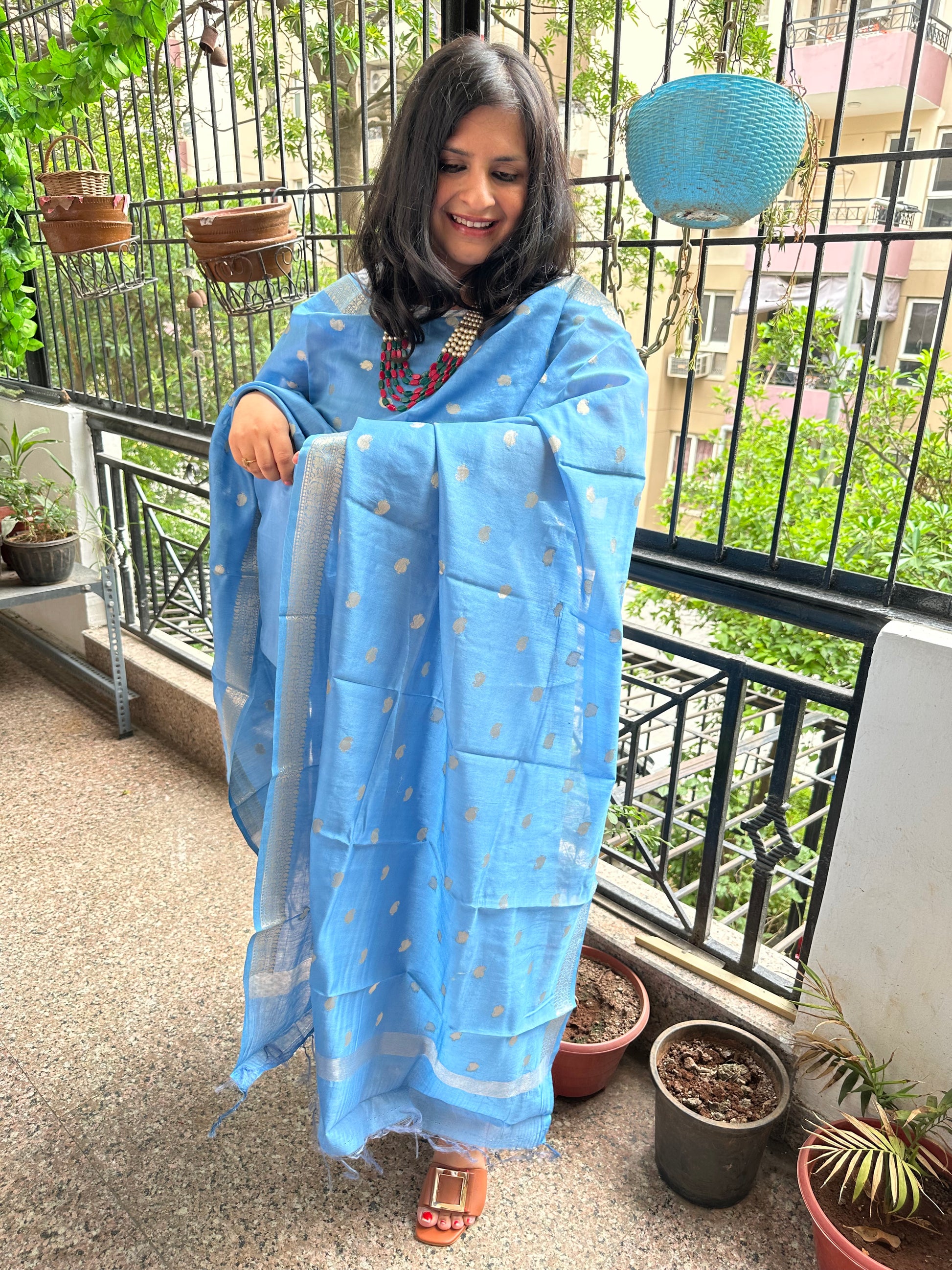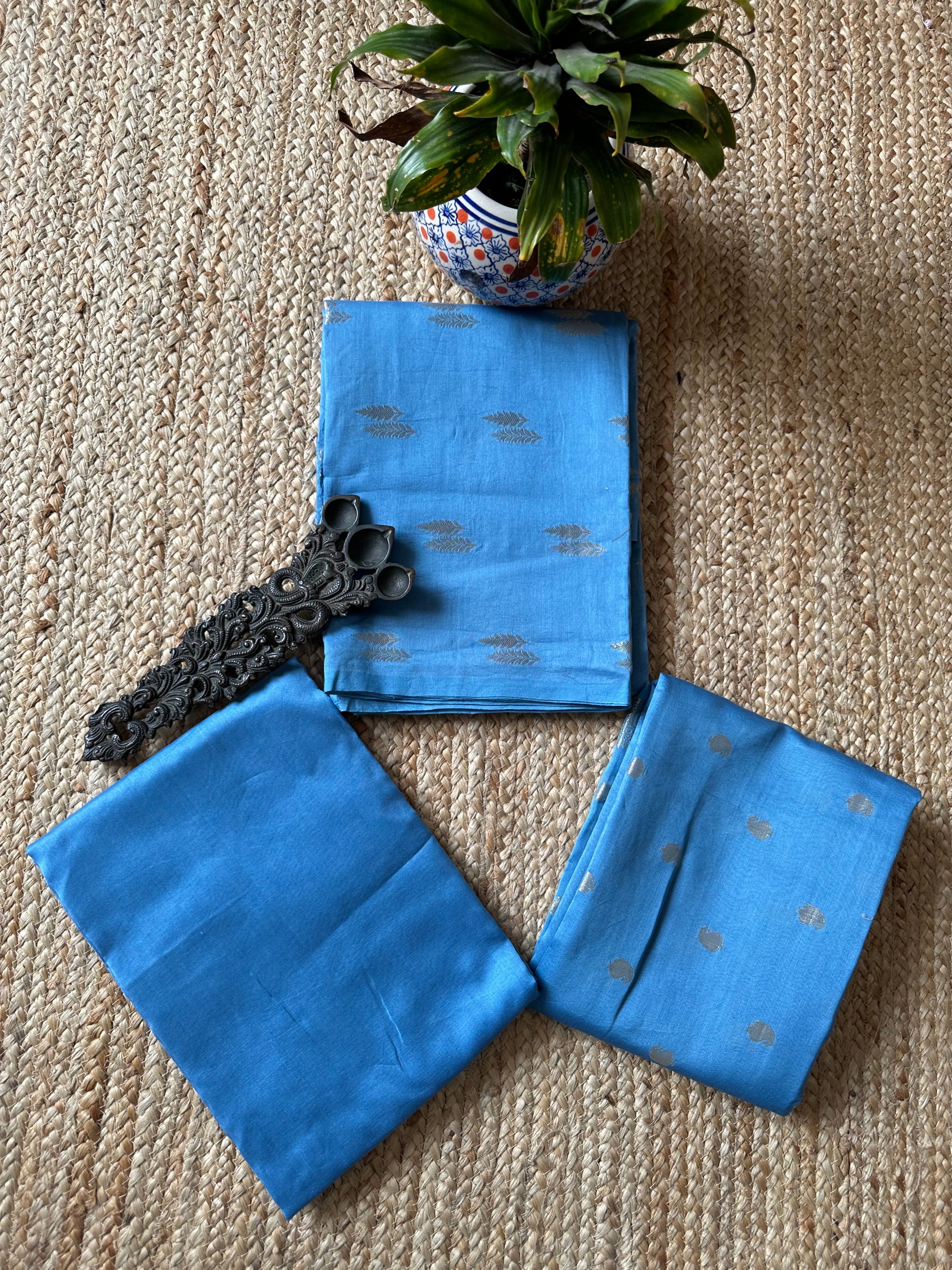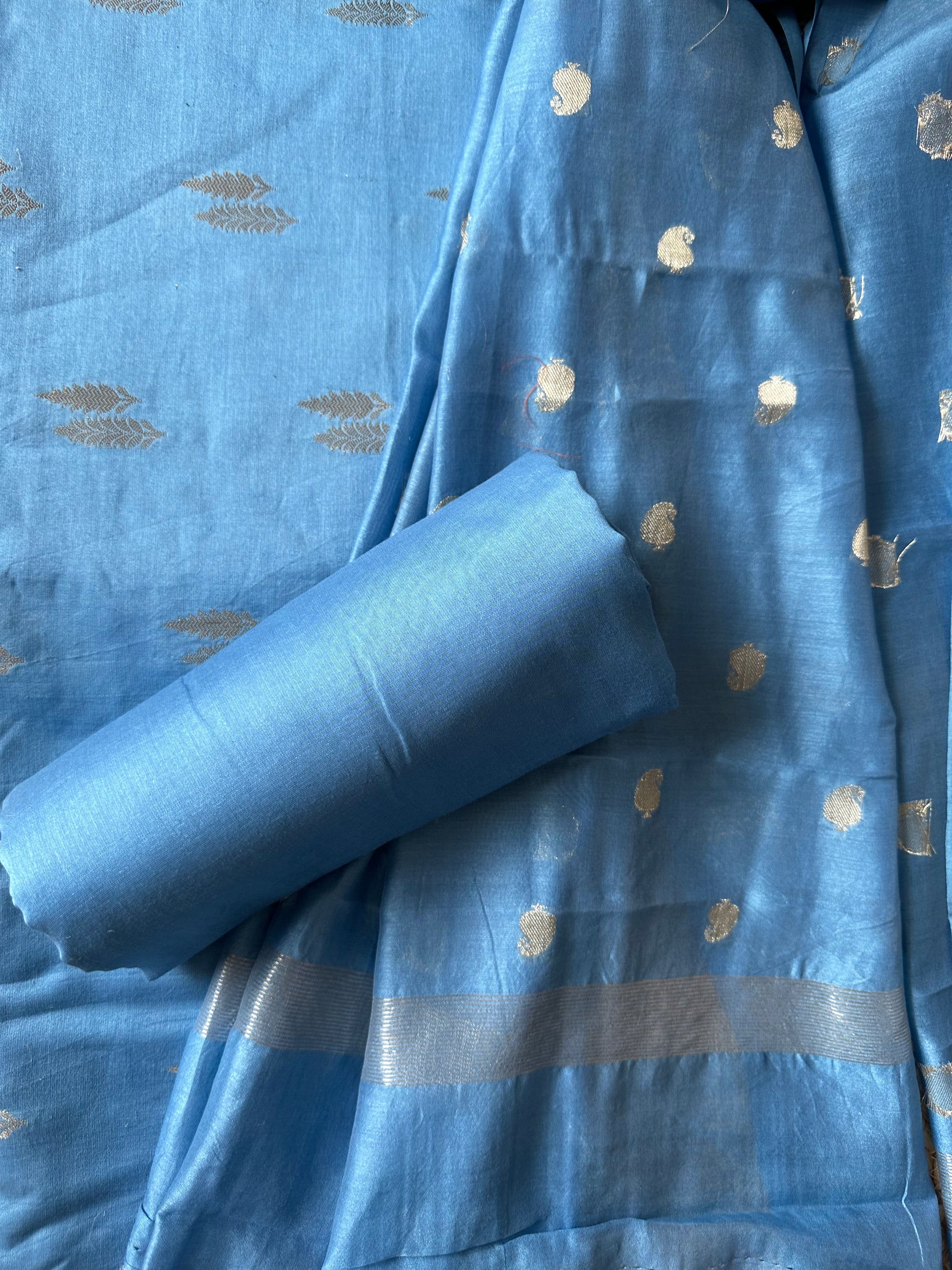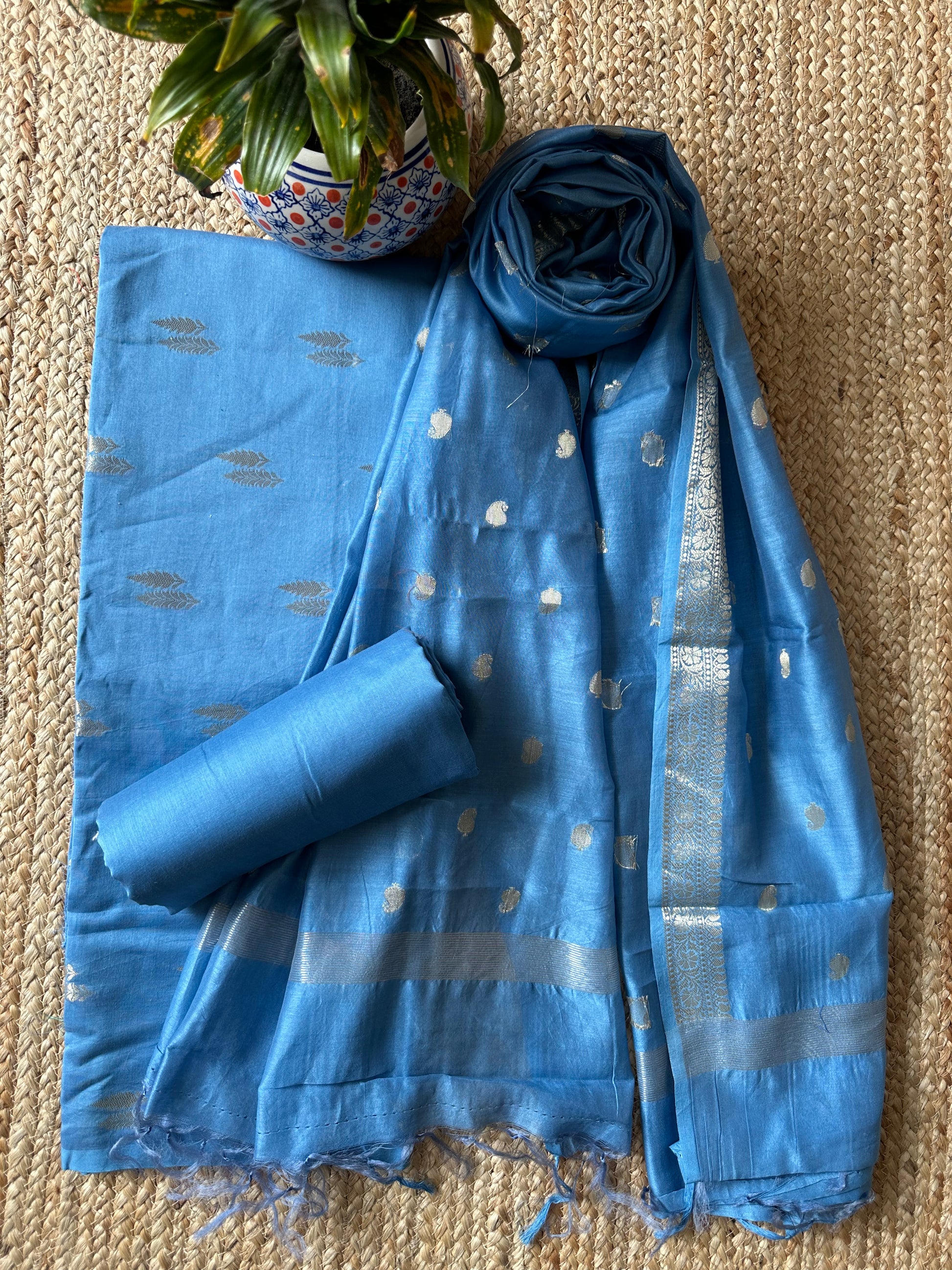 Blue Chanderi handloom Banarsi Booti three piece suit