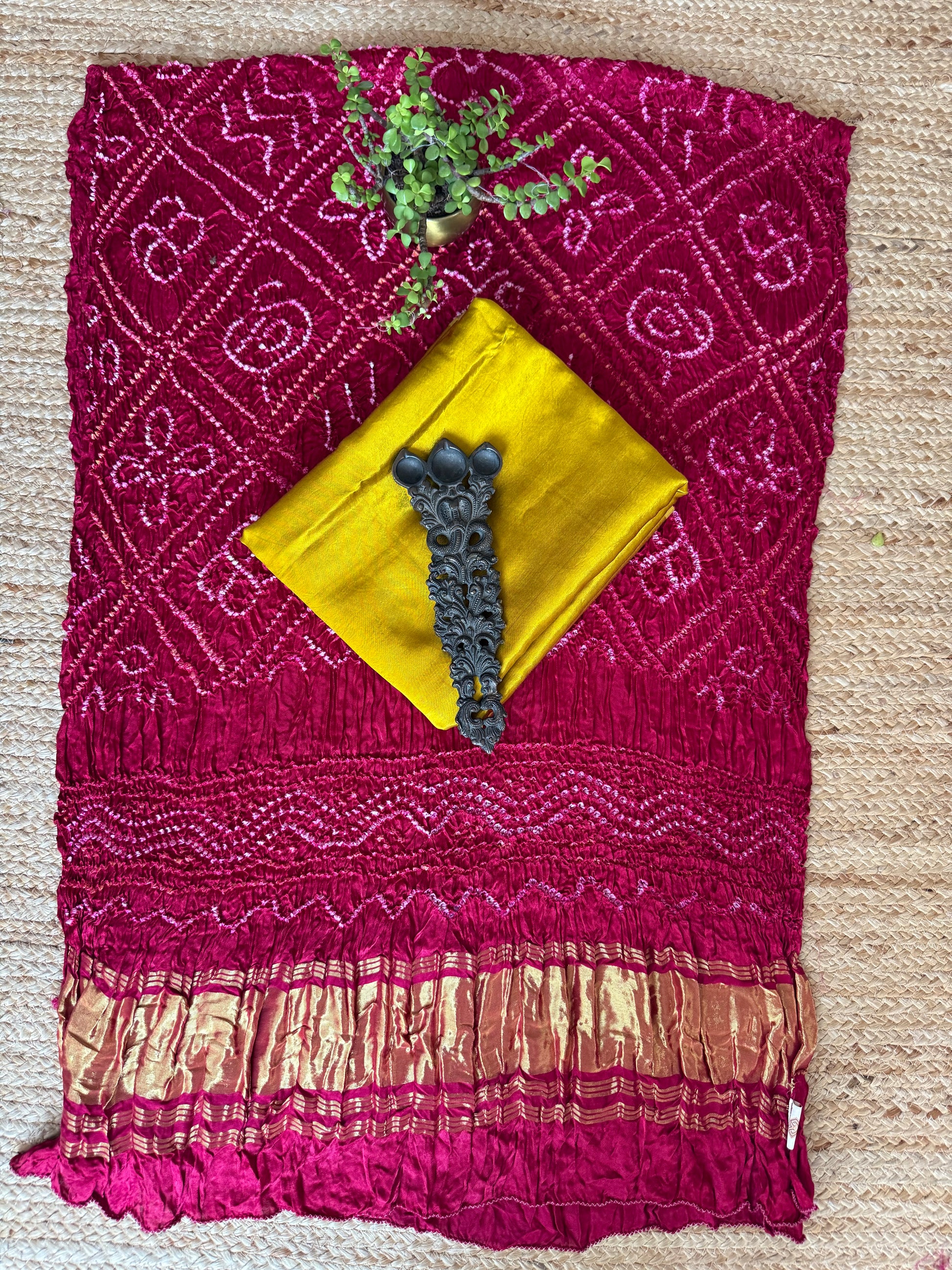 MUSTARD MASHRU SOLID KURTA WITH GHARCHOLA MODAL SILK DUPATTA