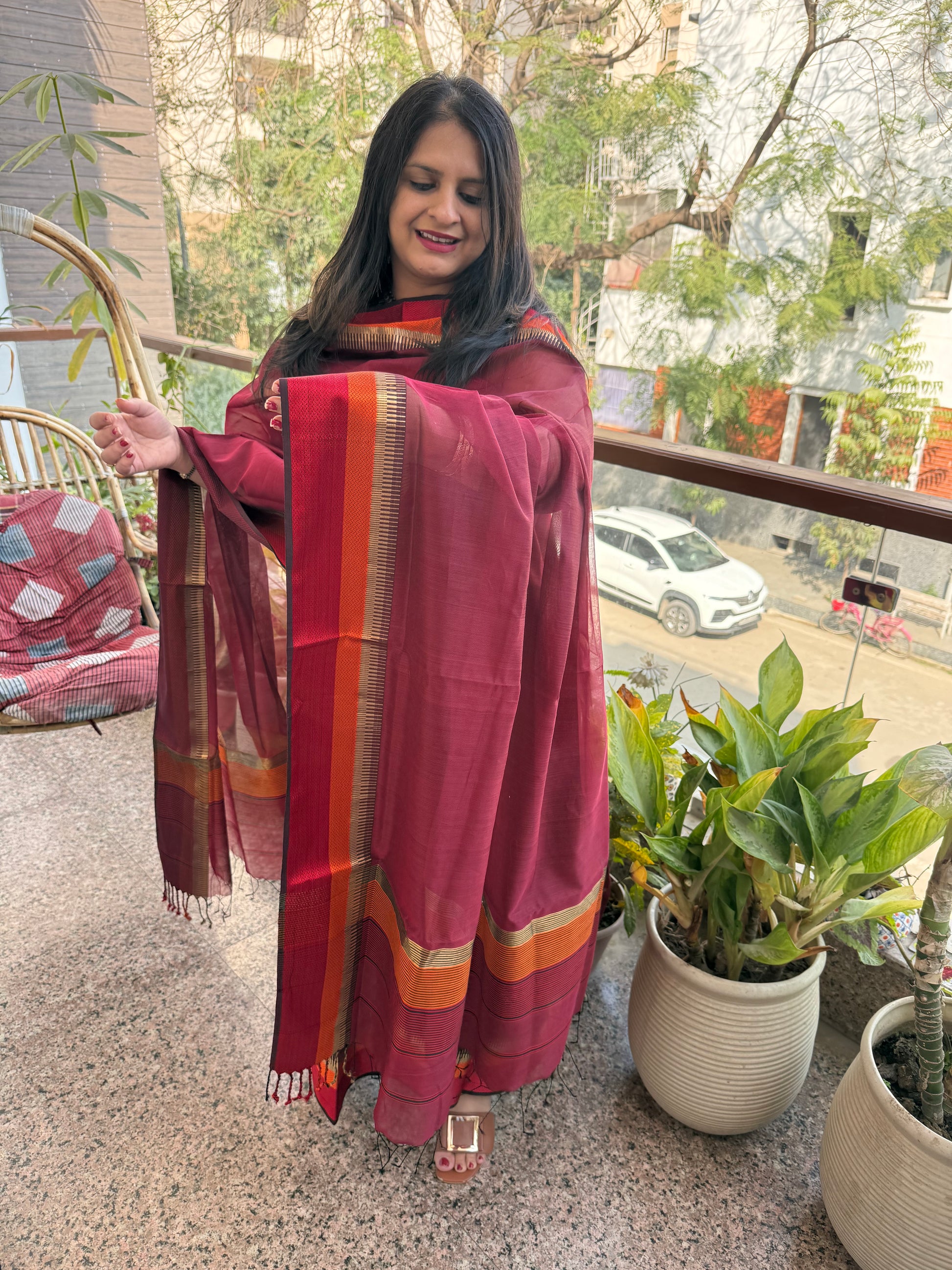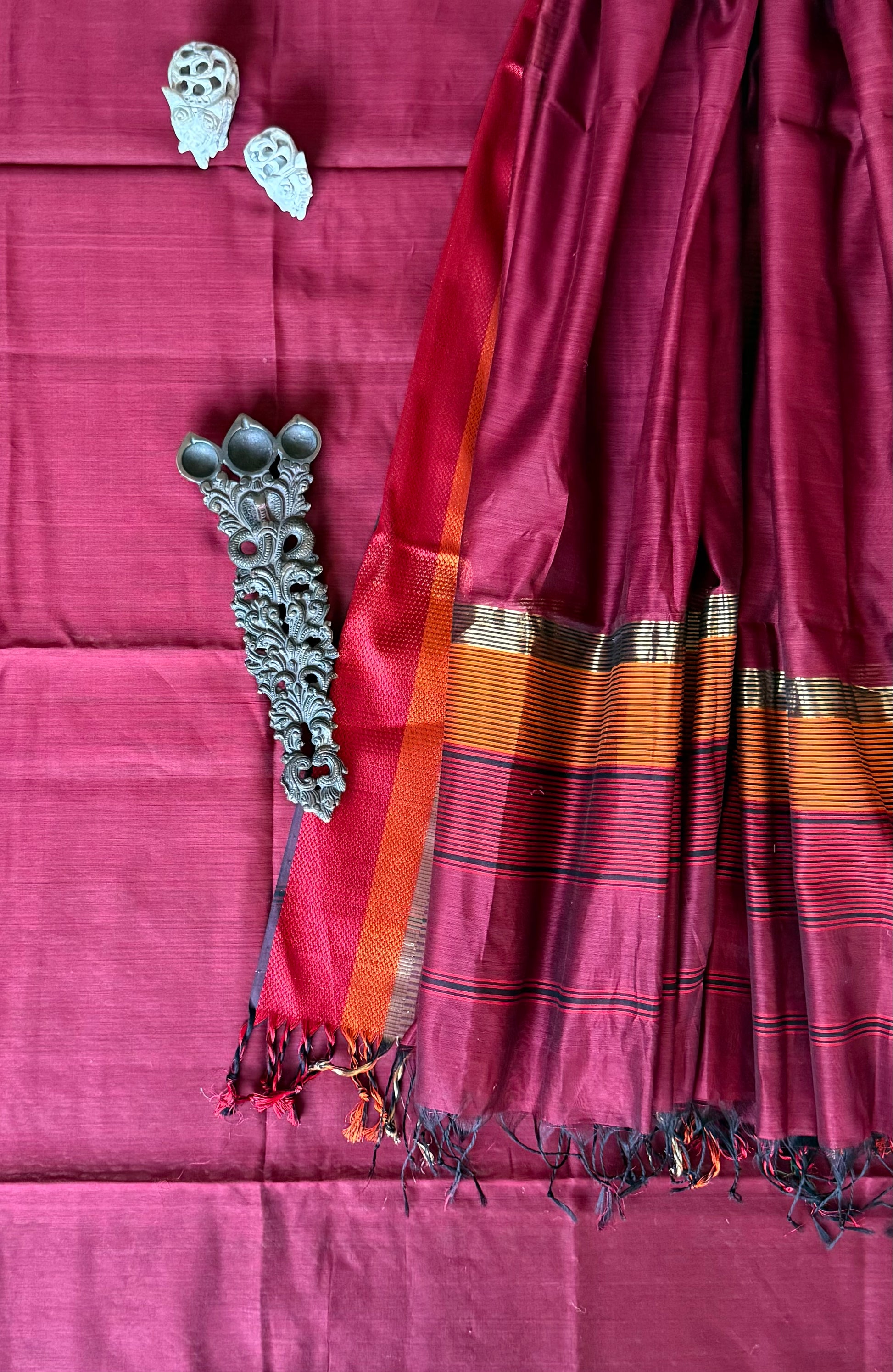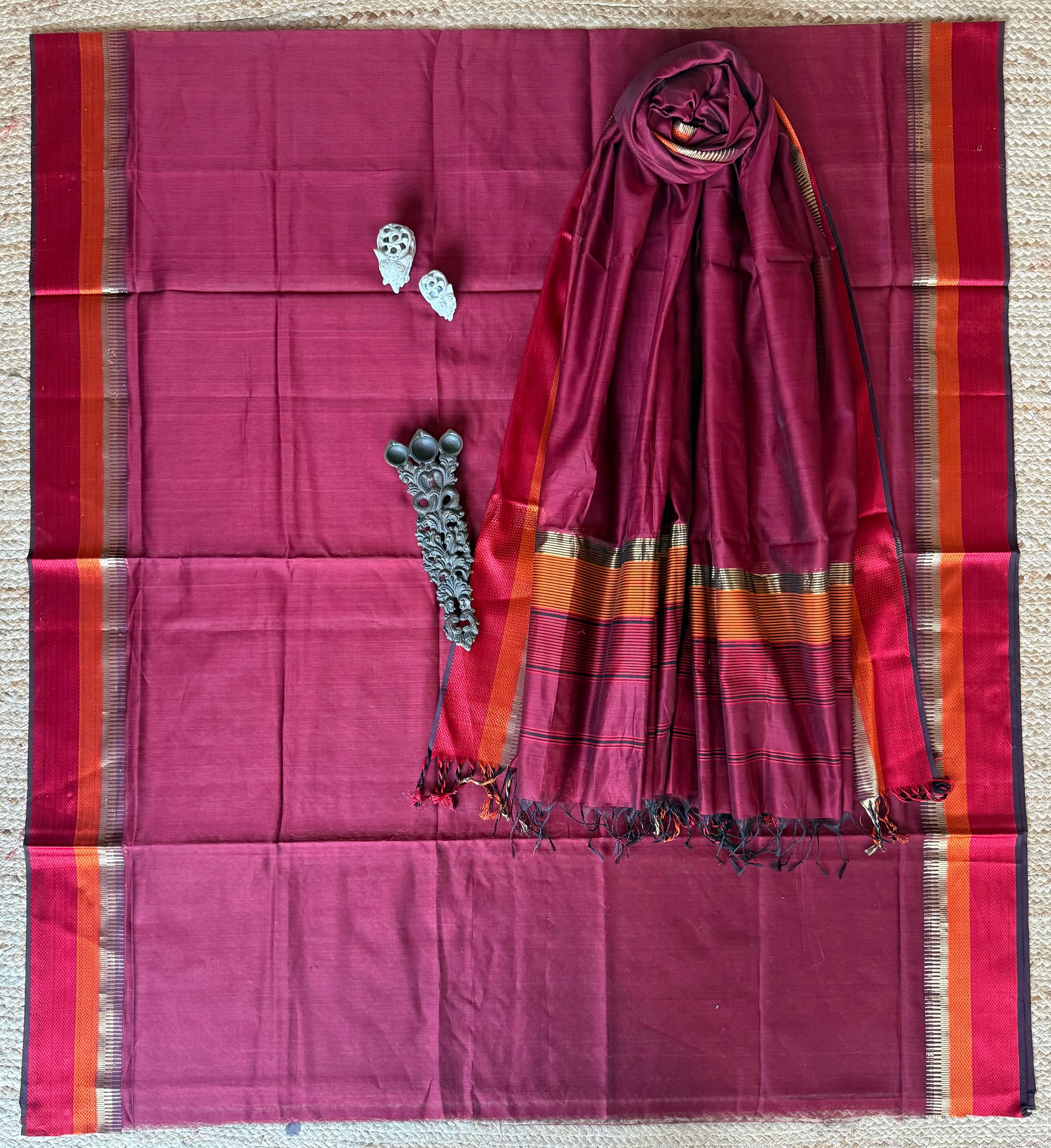 MAROON MAHESHARI BORDER SILK HANDLOOM KURTA SET