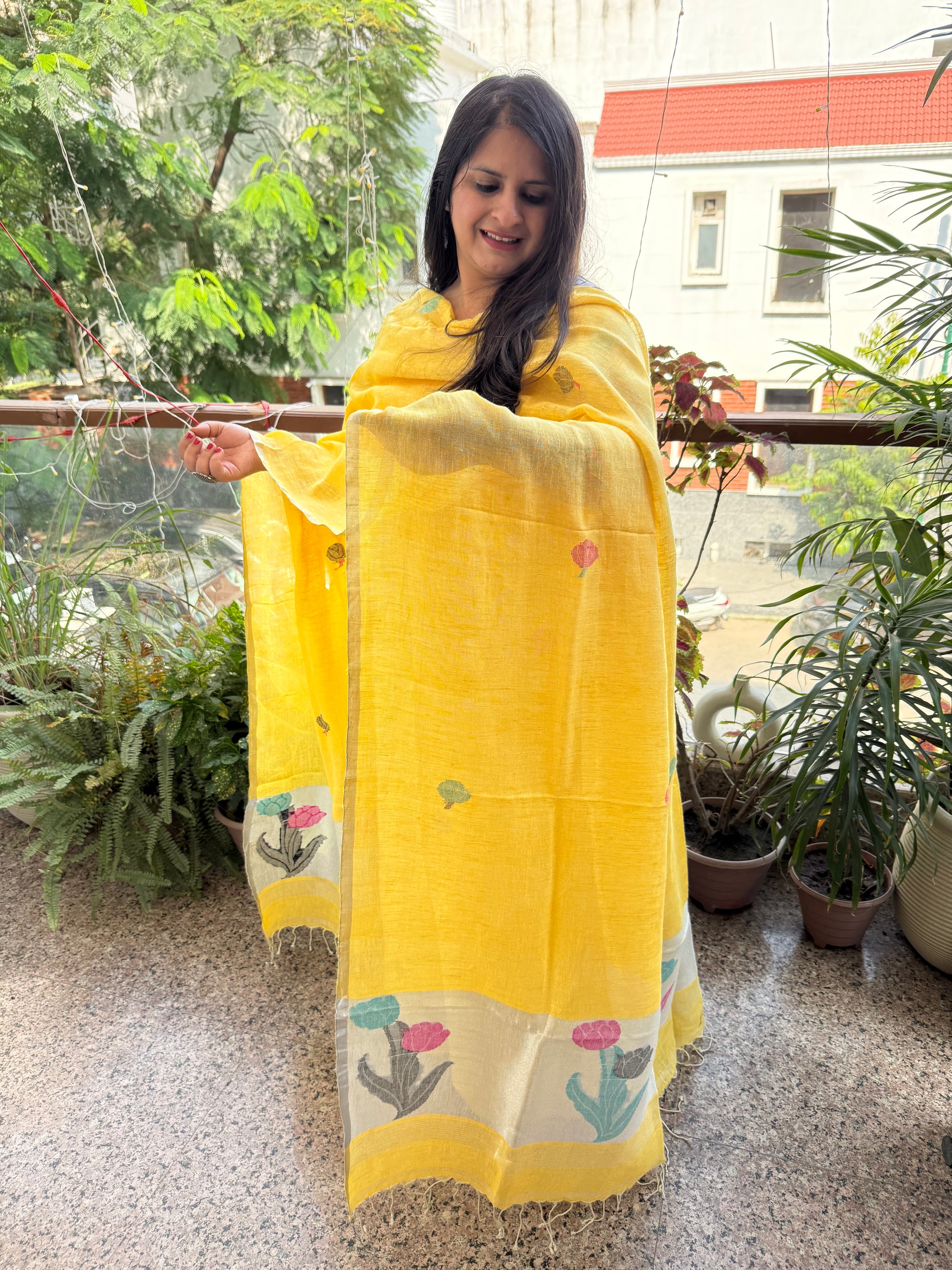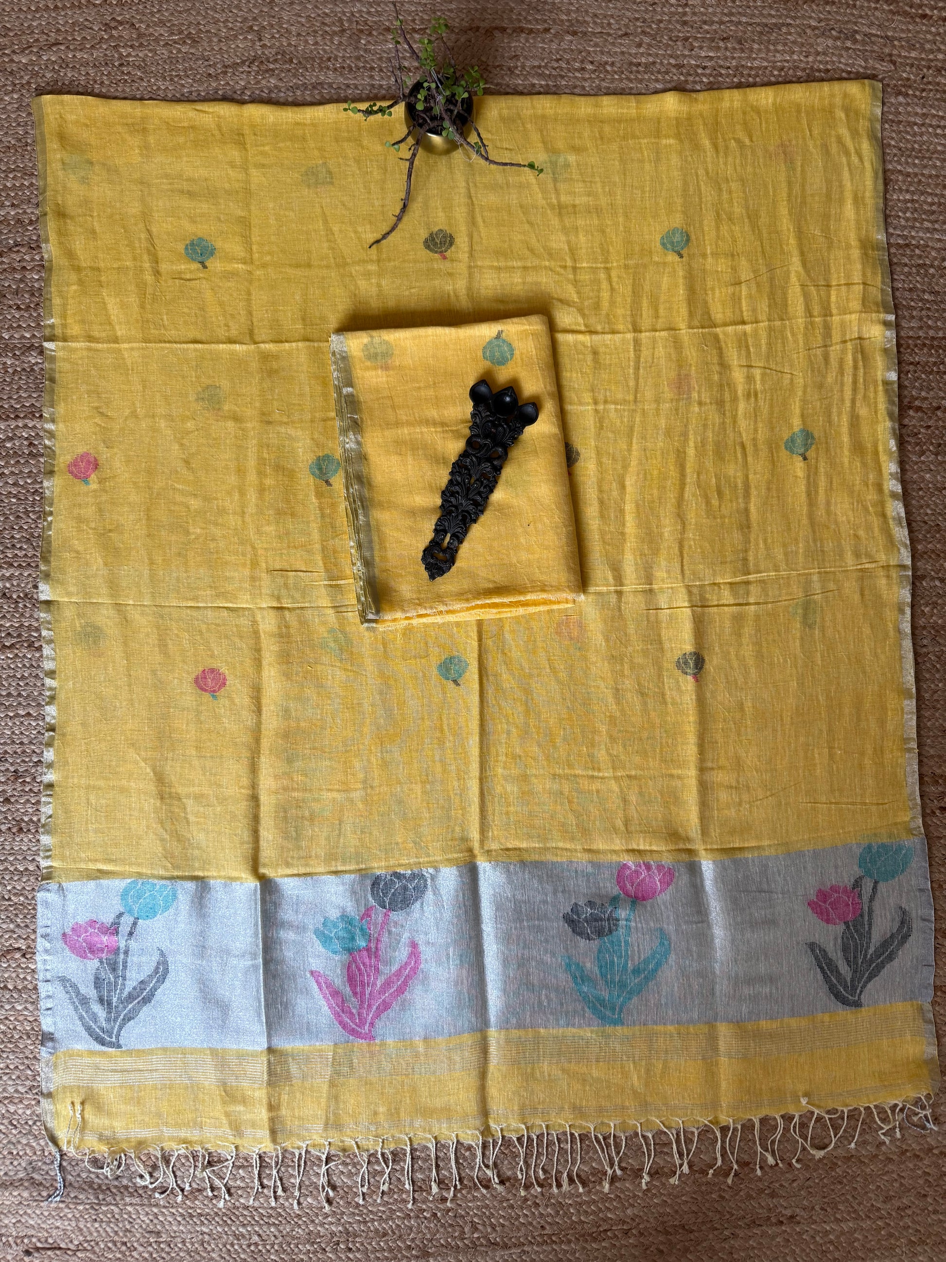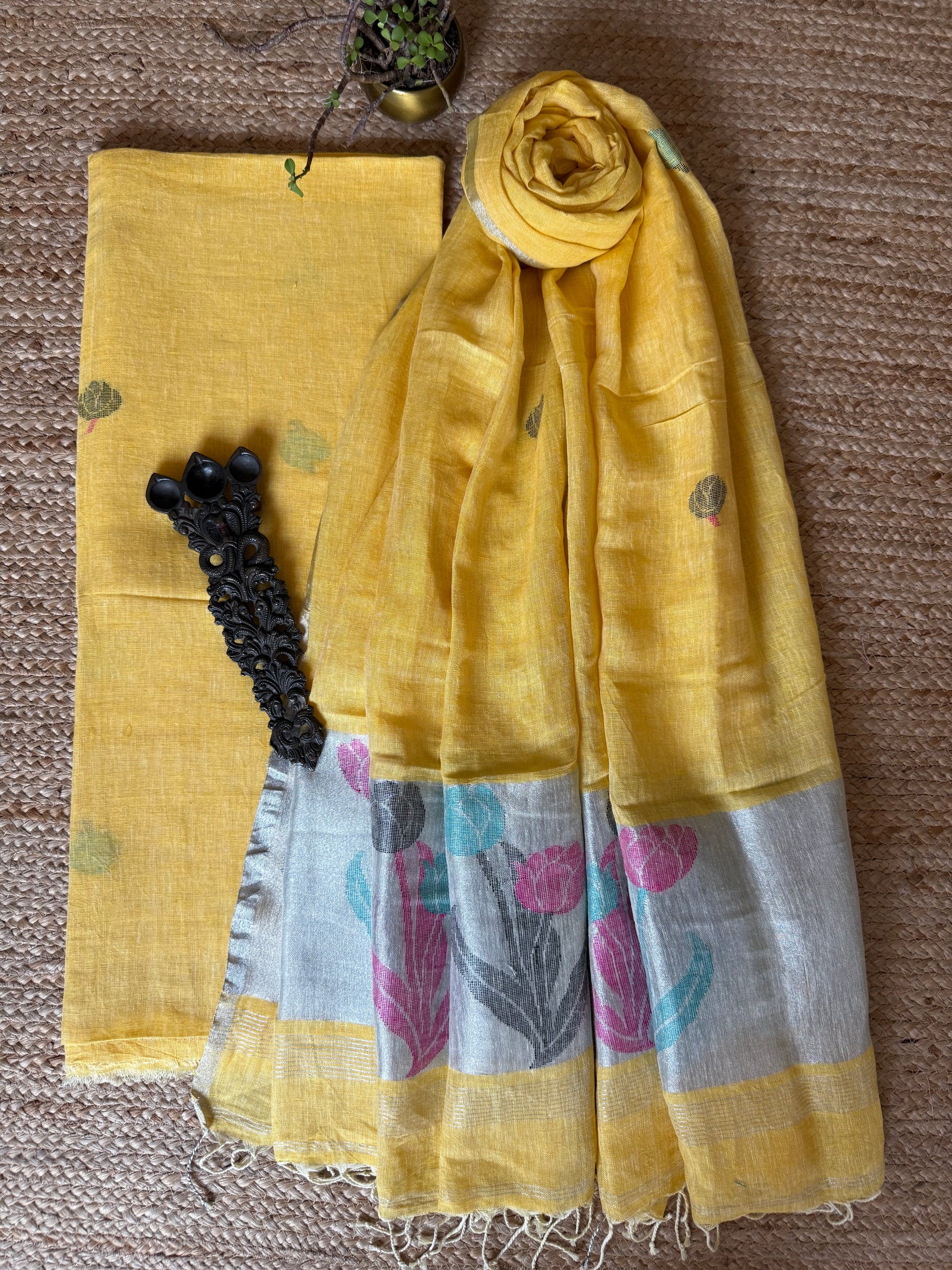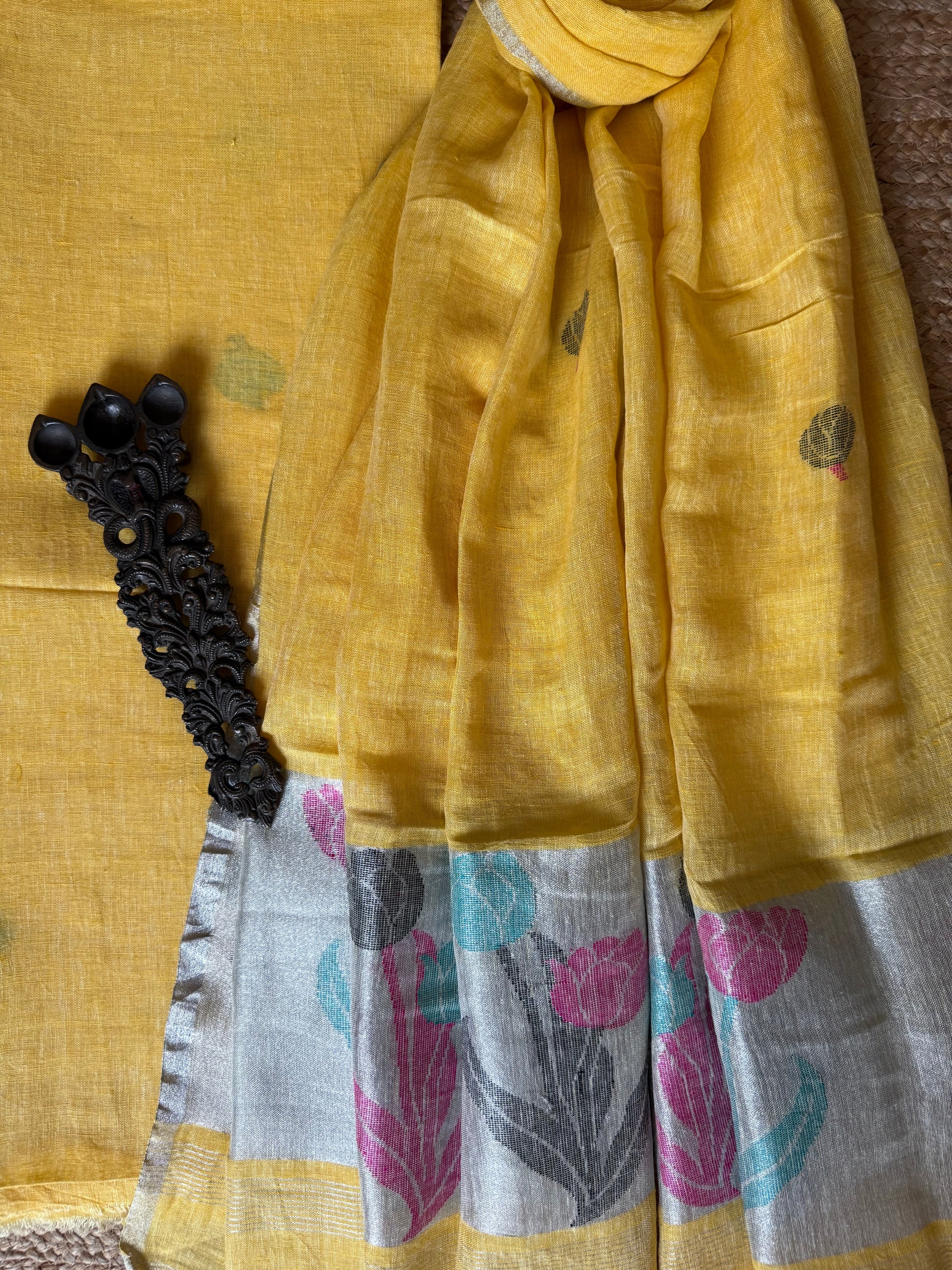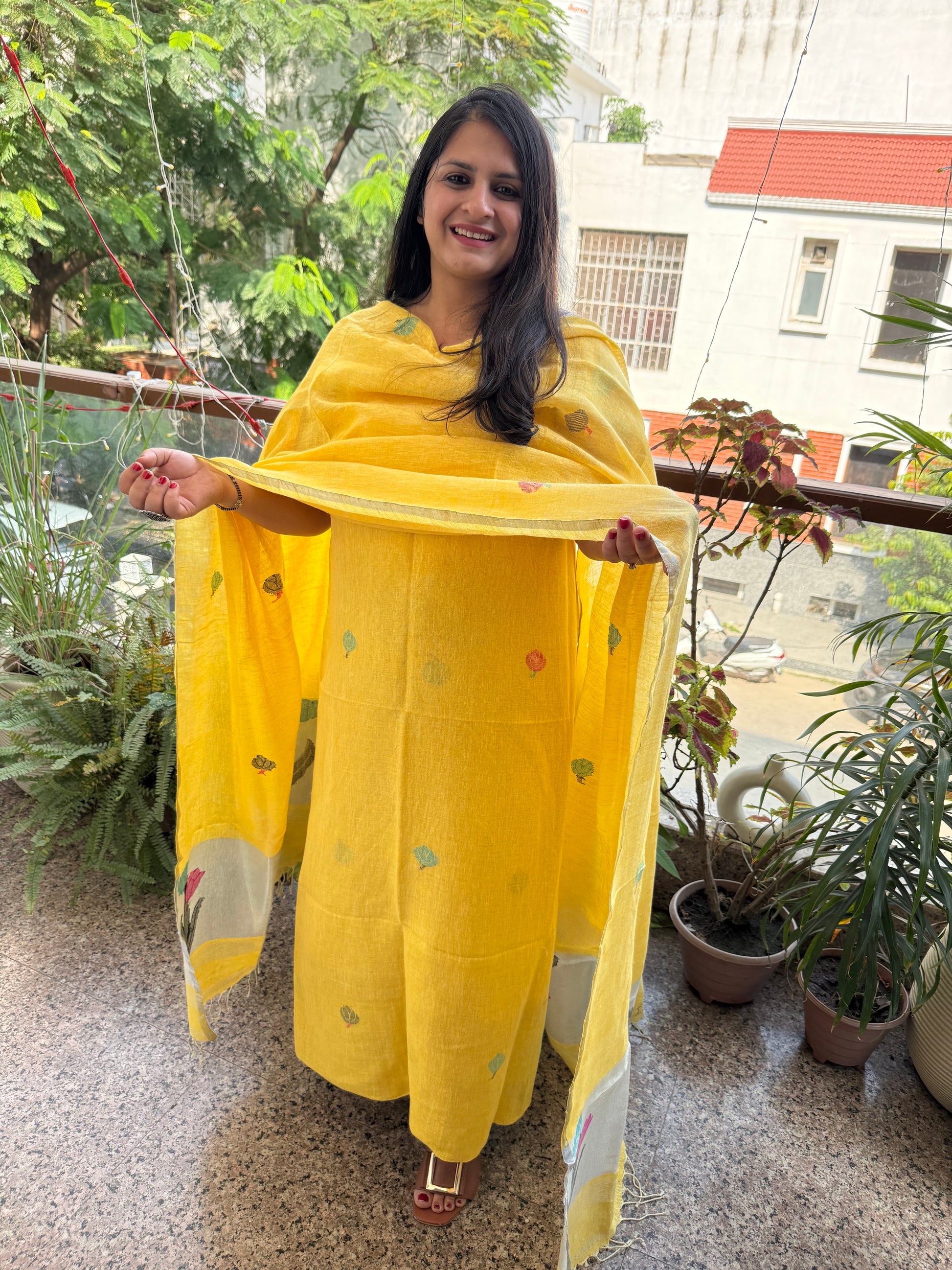 MANGO YELLOW WOVEN LINEN KURTA SET LJS- 203