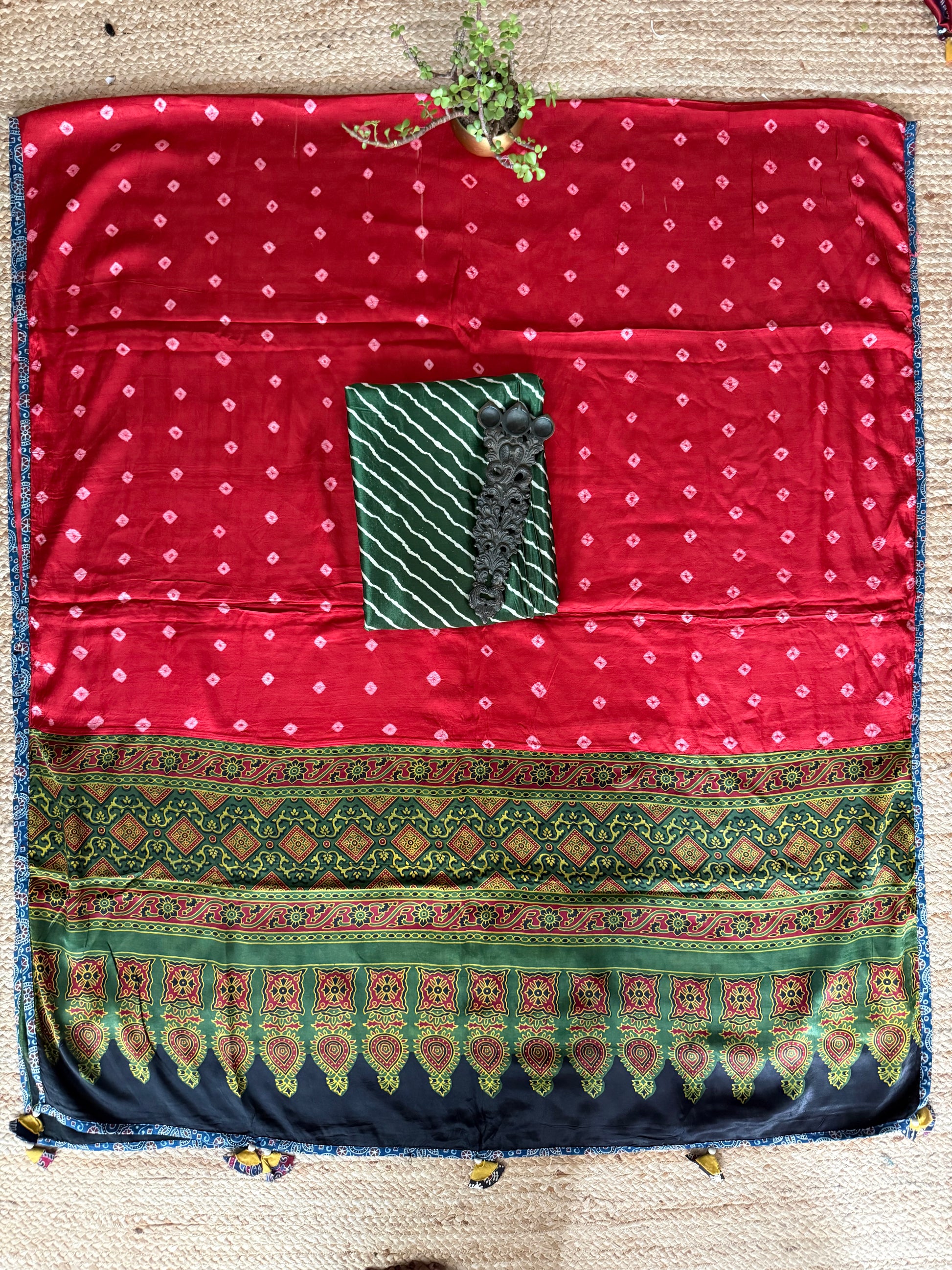 GREEN MASHRU SILK KURTA WITH AJRAKH PATCHWORK HANDCRAFTED MIRROR WORK MODAL SILK DUPATTA