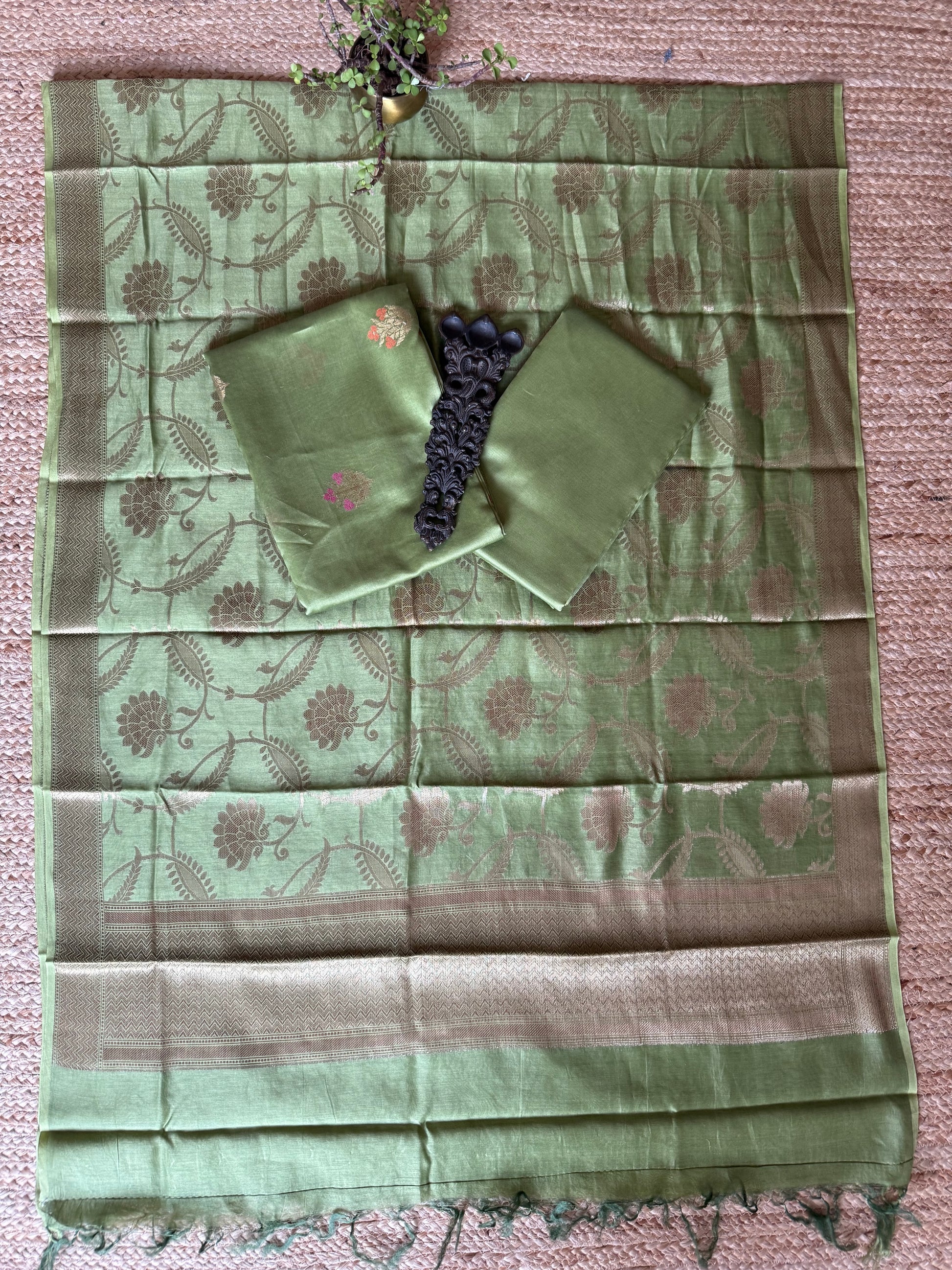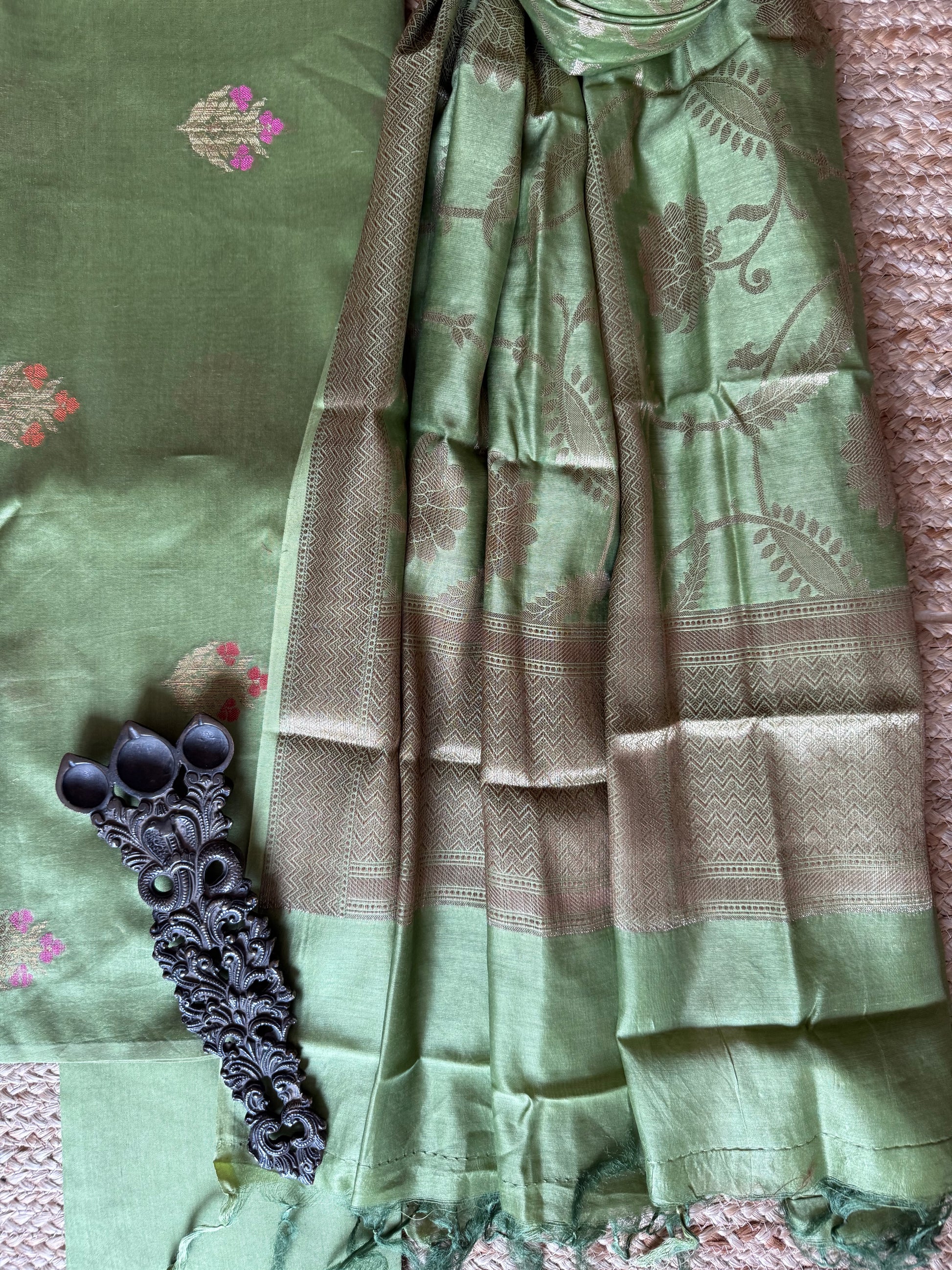 Sea Green Chanderi handloom Banarsi Booti three piece suit