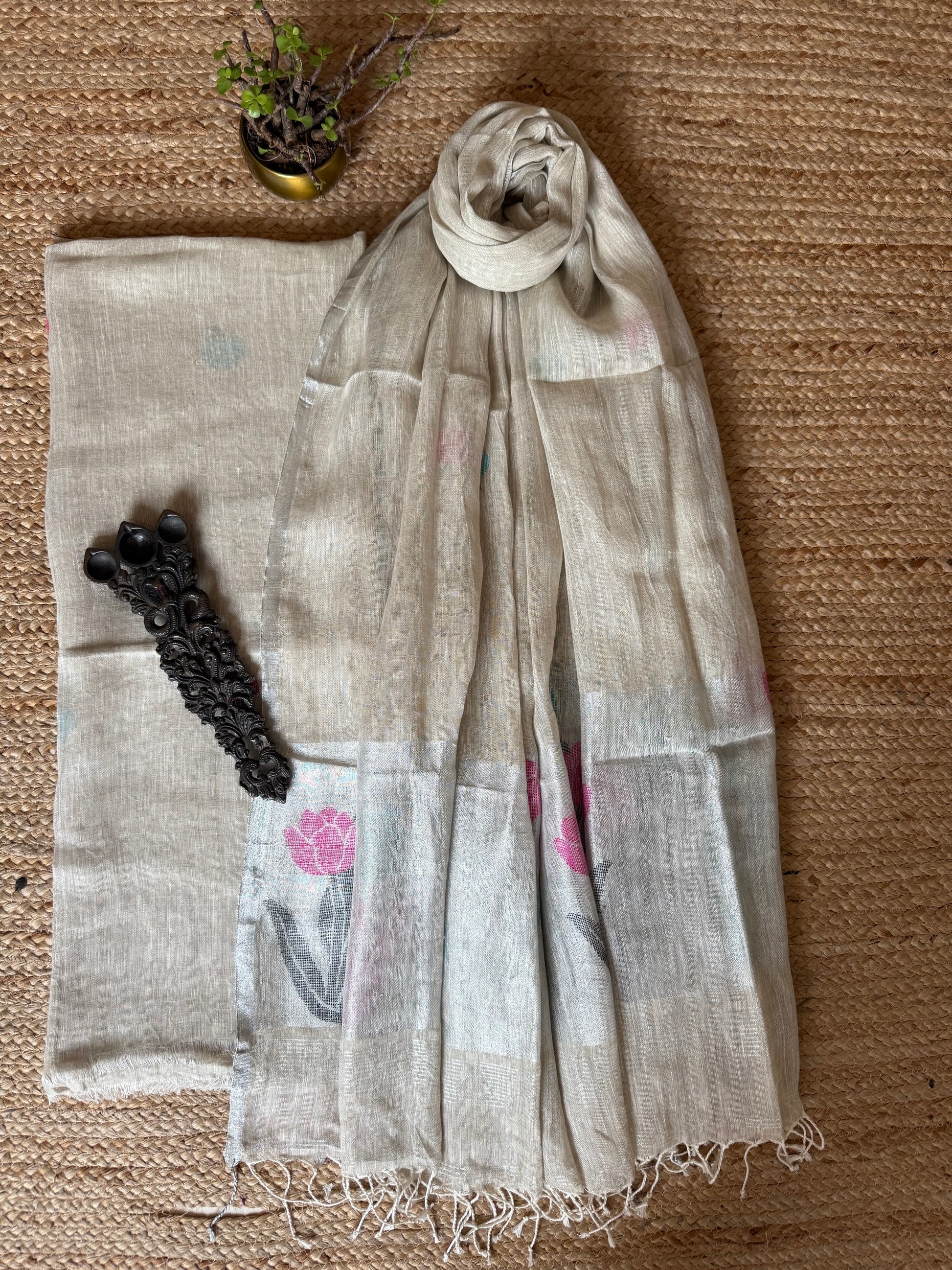 PEARL WHITE WOVEN LINEN KURTA SET LJS- 205