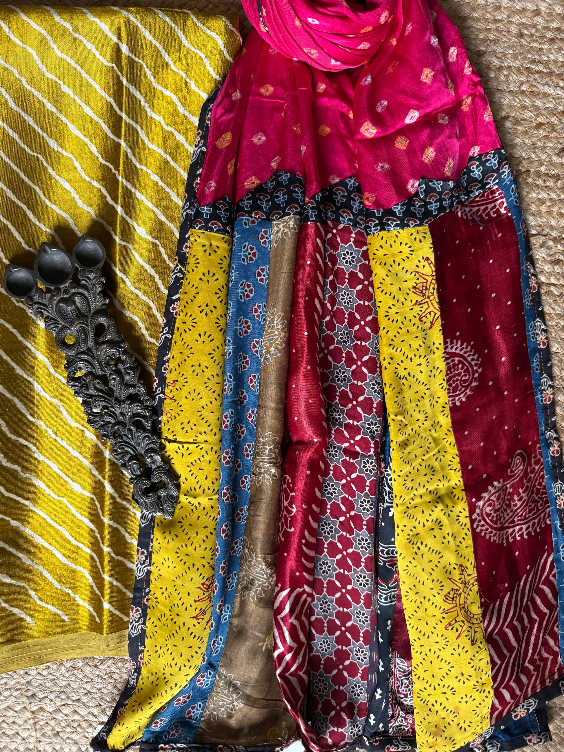 MUSTARD MASHRU SILK KURTA WITH AJRAKH PATCHWORK HANDCRAFTED MIRROR WORK MODAL SILK DUPATTA