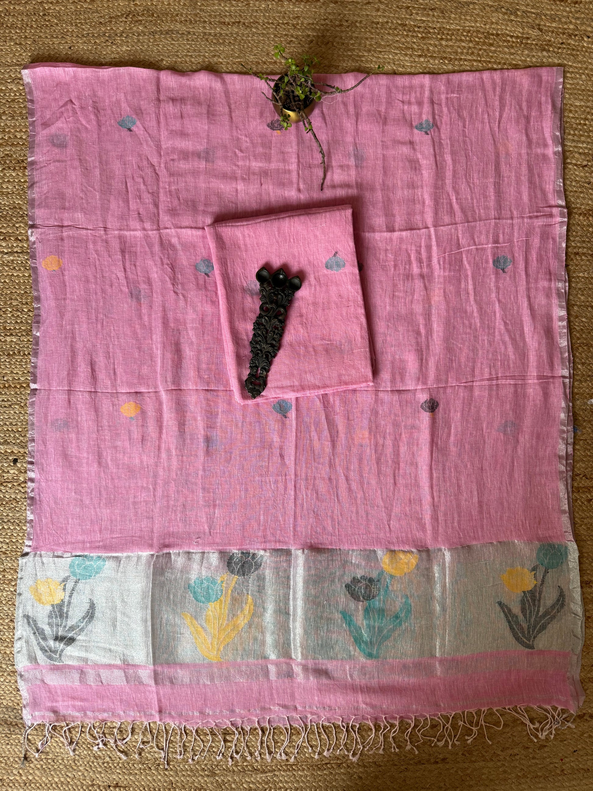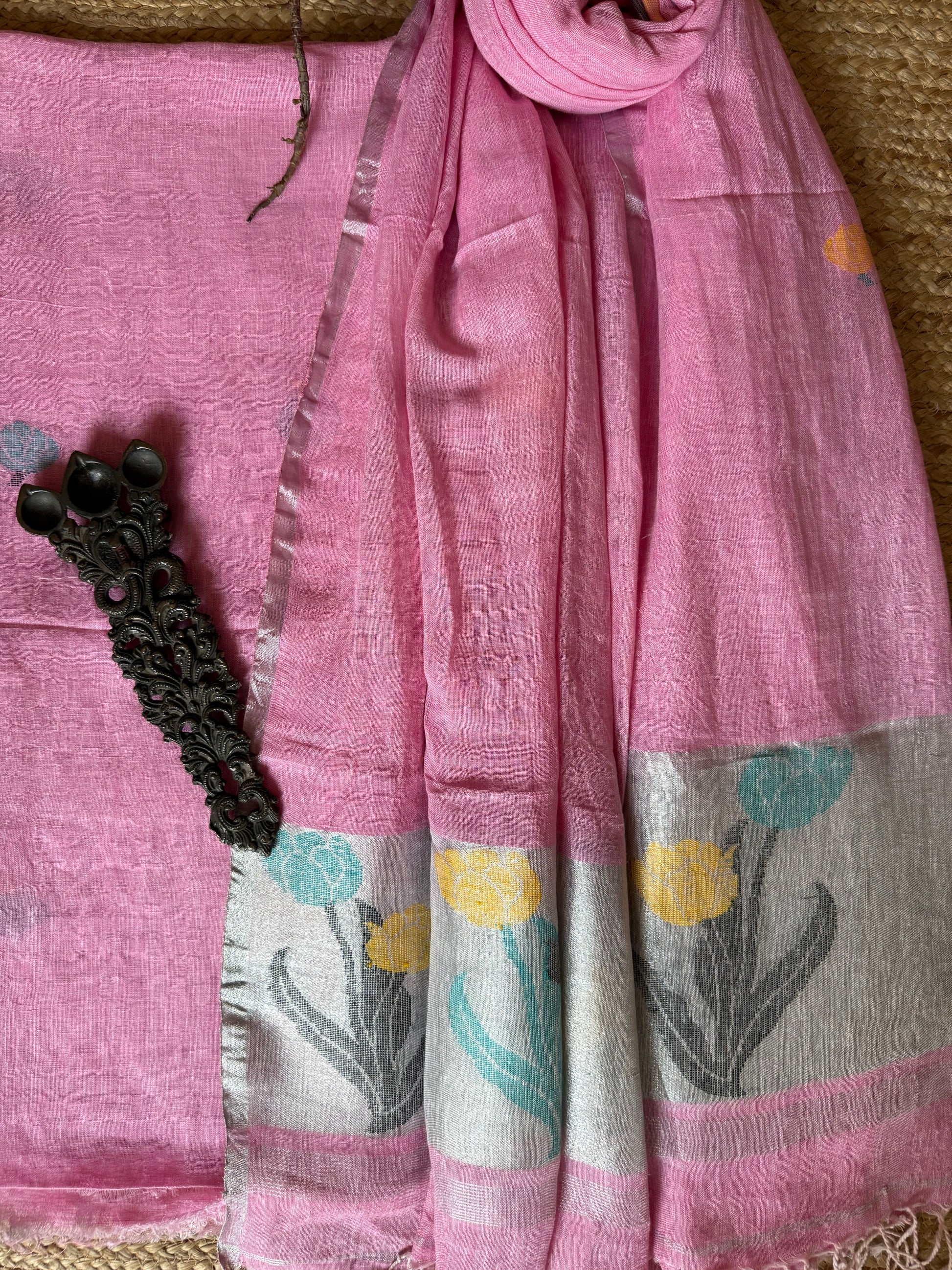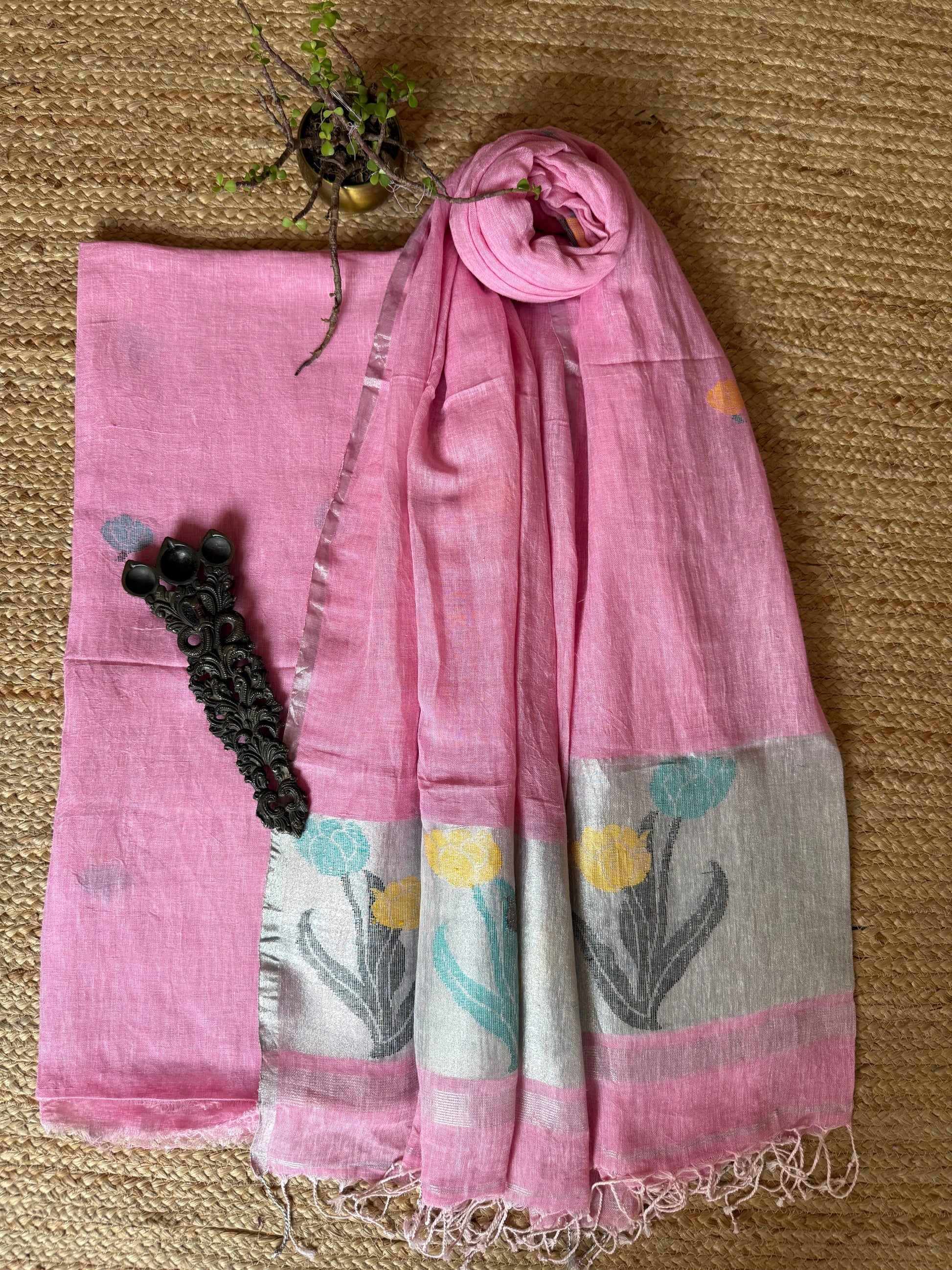 FLAMINGO PINK WOVEN LINEN KURTA SET LJS- 202