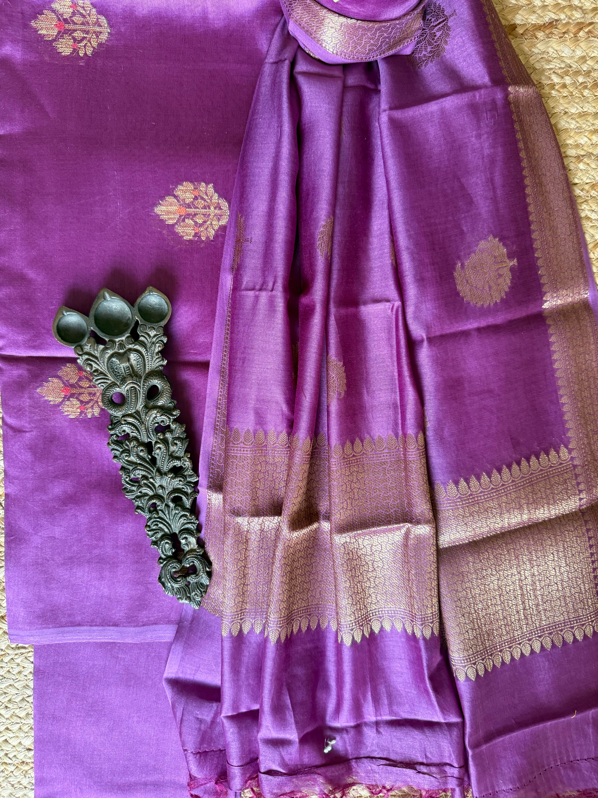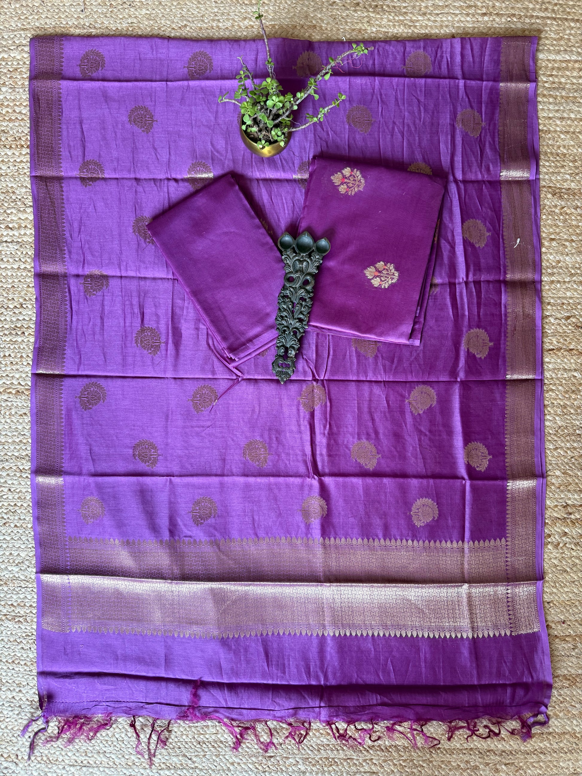 Iris purple Chanderi handloom Banarsi Booti three piece suit