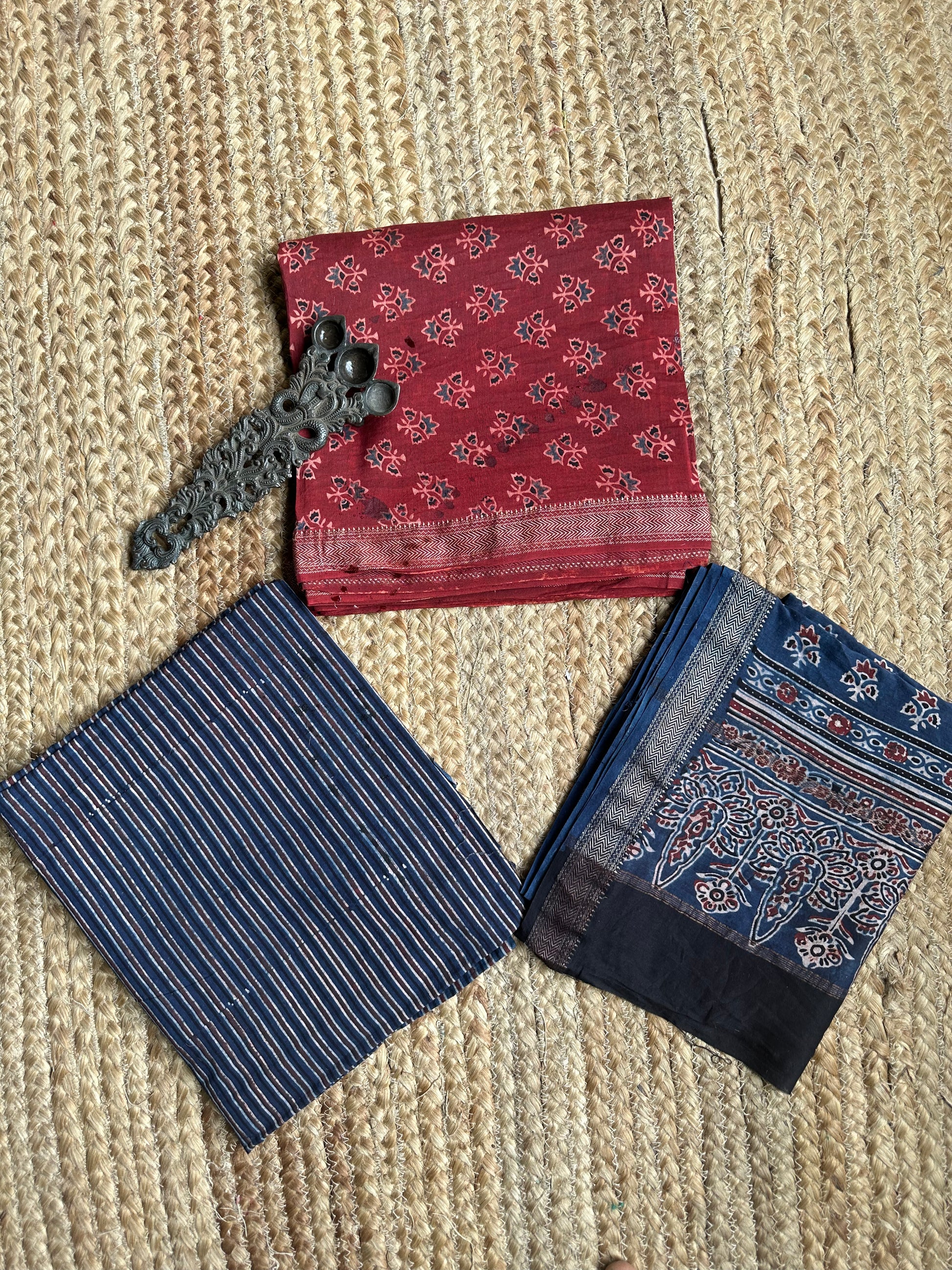 MAROON AJRAKH MAHESHWARI SILK HANDBLOCK THREE PIECE SET SUIT